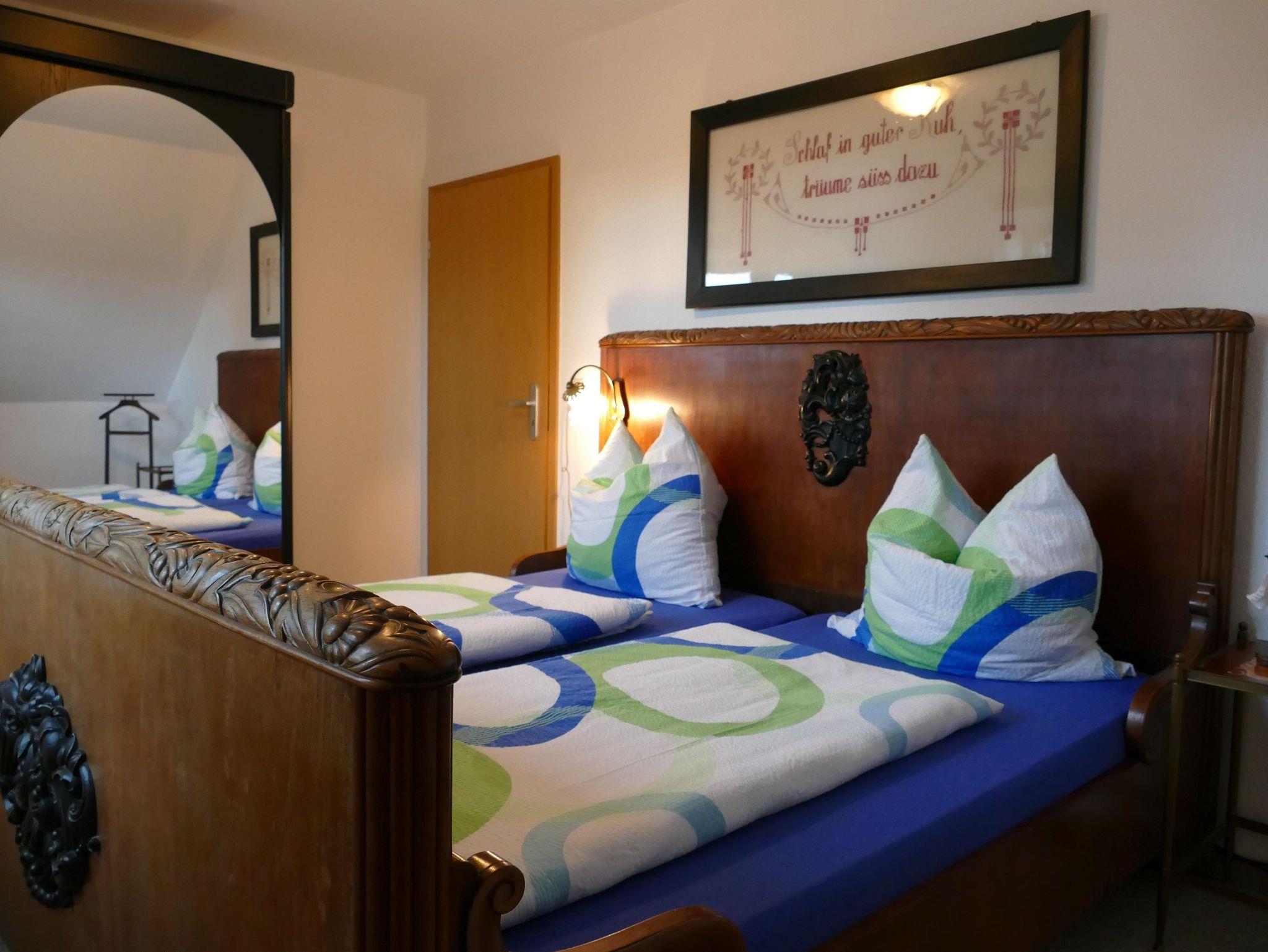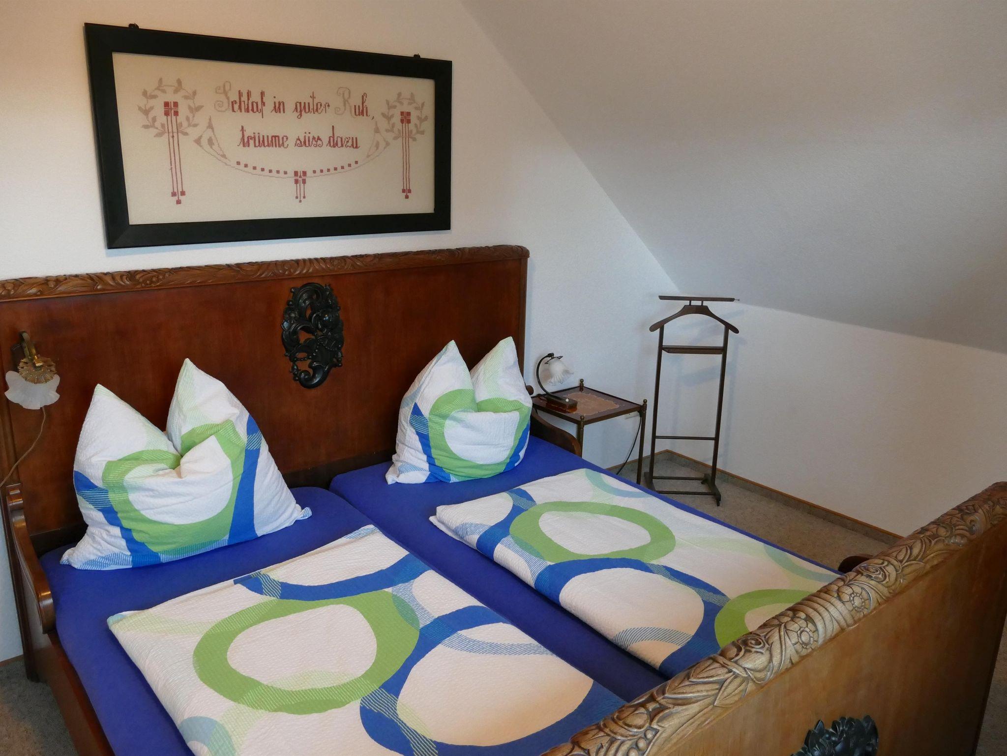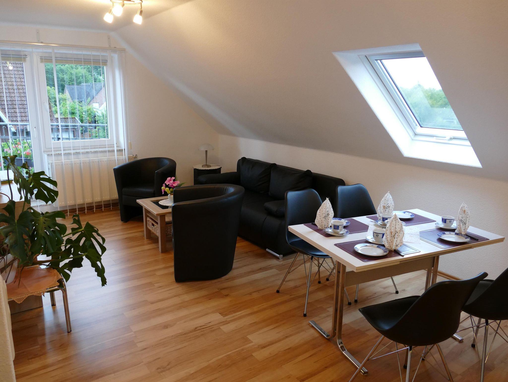 Die 50 m² große Ferienwohnung für zwei bis vier Personen (zwei Erwachsene und zwei Kinder) verfügt über eine gute Ausstattung. Komplett eingerichtete Küche (offen zum Wohn-/Schlafzimmer) mit Geschirr, Töpfen, Pfannen, Kaffeemaschine, Toaster, Wasserkocher, 4-Platten E-Herd mit Backofen, Kühlschrank. Gemütliches Wohn-/Schlafzimmer mit Sitzecke und SAT-TV. Sep. Schlafzimmer, Bad mit Dusche/WC, Balkon. Bettwäsche, Handtücher, Endreinigung und Nebenkosten inklusive.