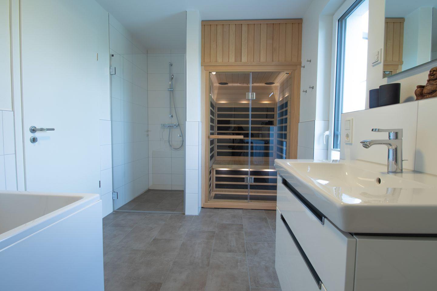 Im großzügigen Badezimmer findest du alles, was du zum Abschalten brauchst: Eine Whirlpool-Badewanne, eine geräumige Dusche und eine Infrarotsauna sorgen für pure Entspannung. Zusätzlich steht dir ein separates Gäste-WC zur Verfügung – besonders praktisch bei voller Belegung.