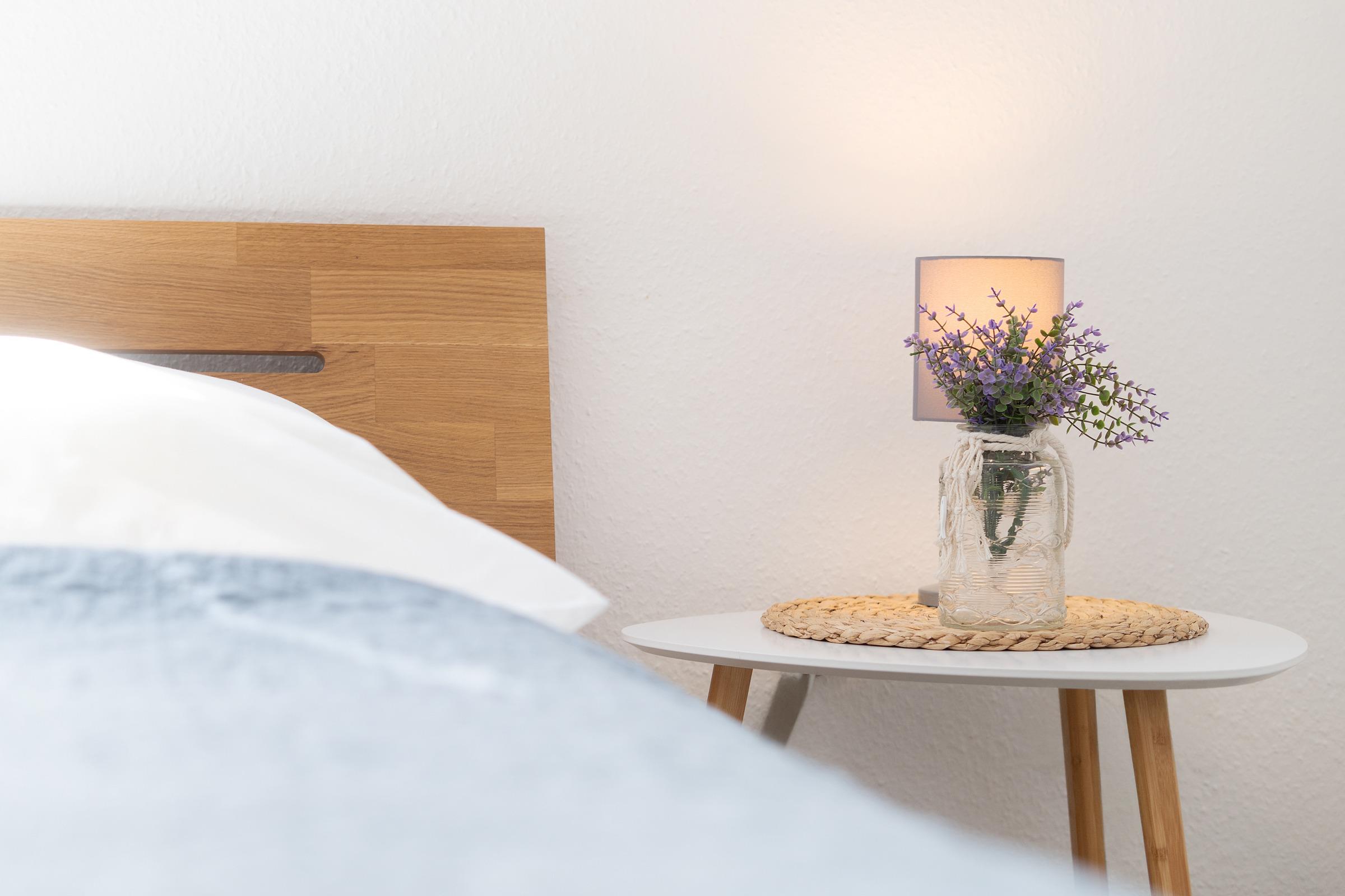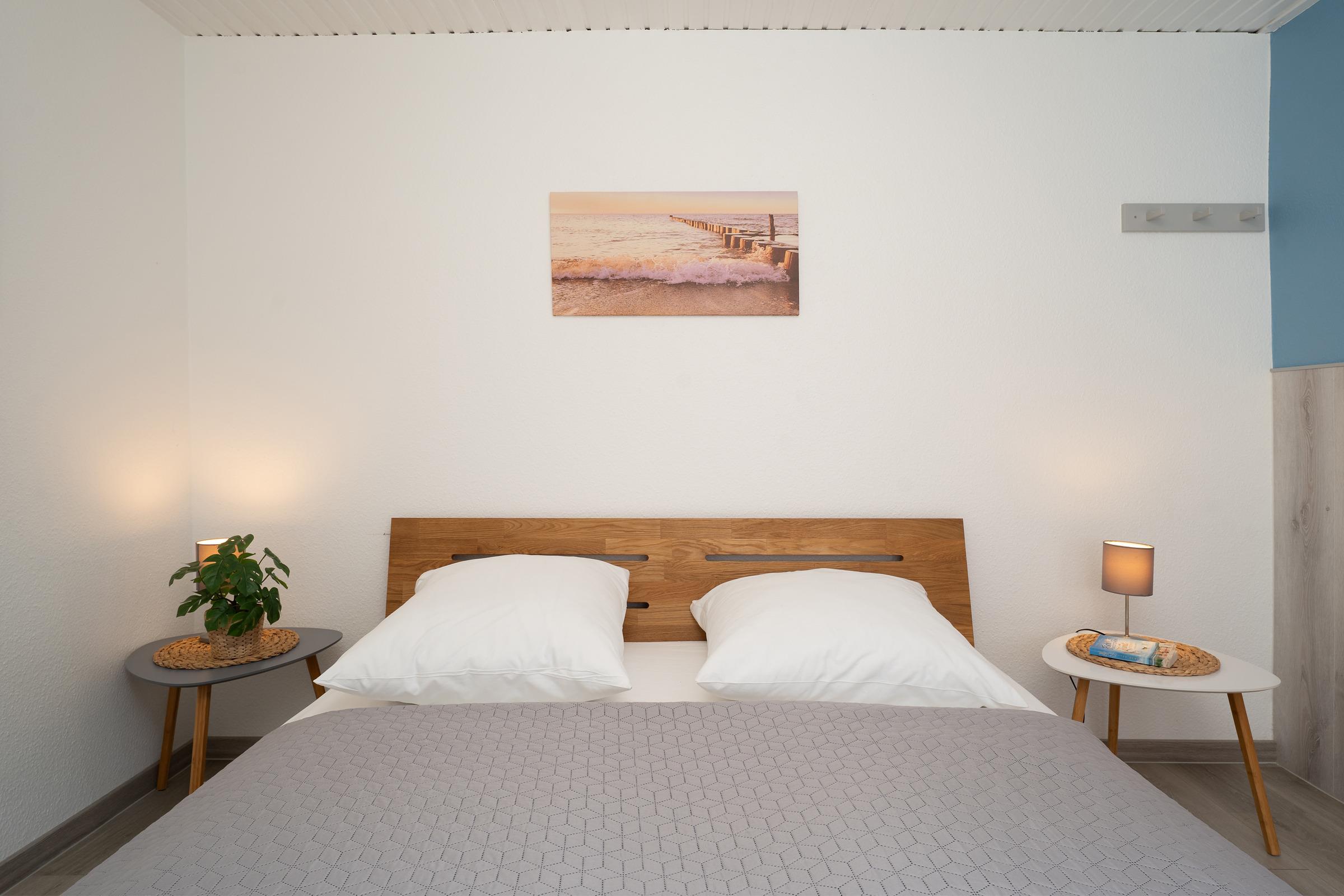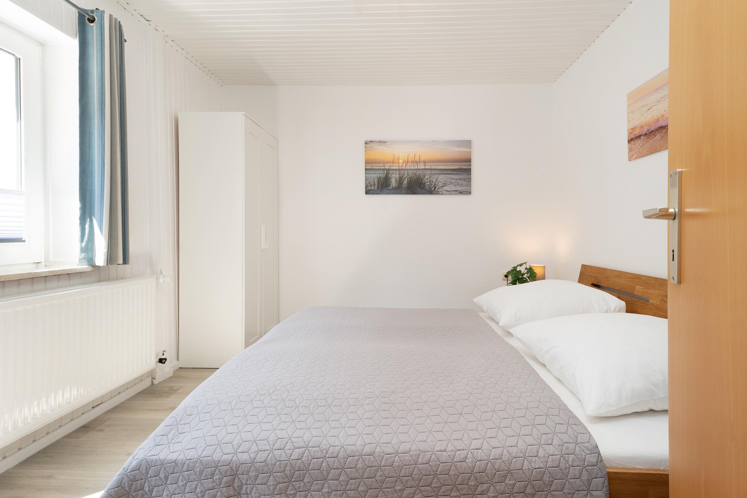 Schlafzimmer (EG): 1 Doppelbett (2x 90x200 cm), Kleiderschrank, Verdunkelung: Plissees und Vorhänge, Platz für ein Babybett