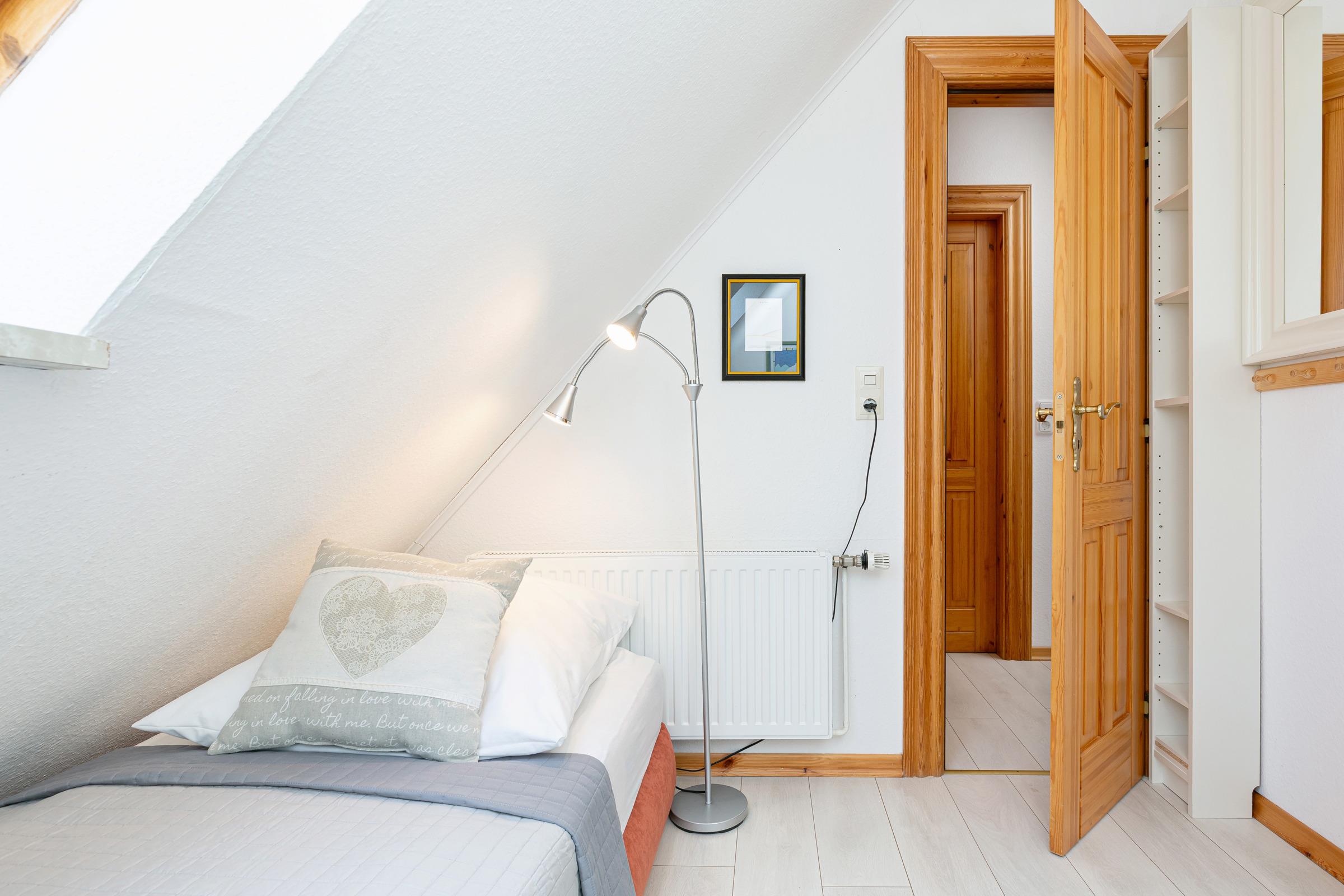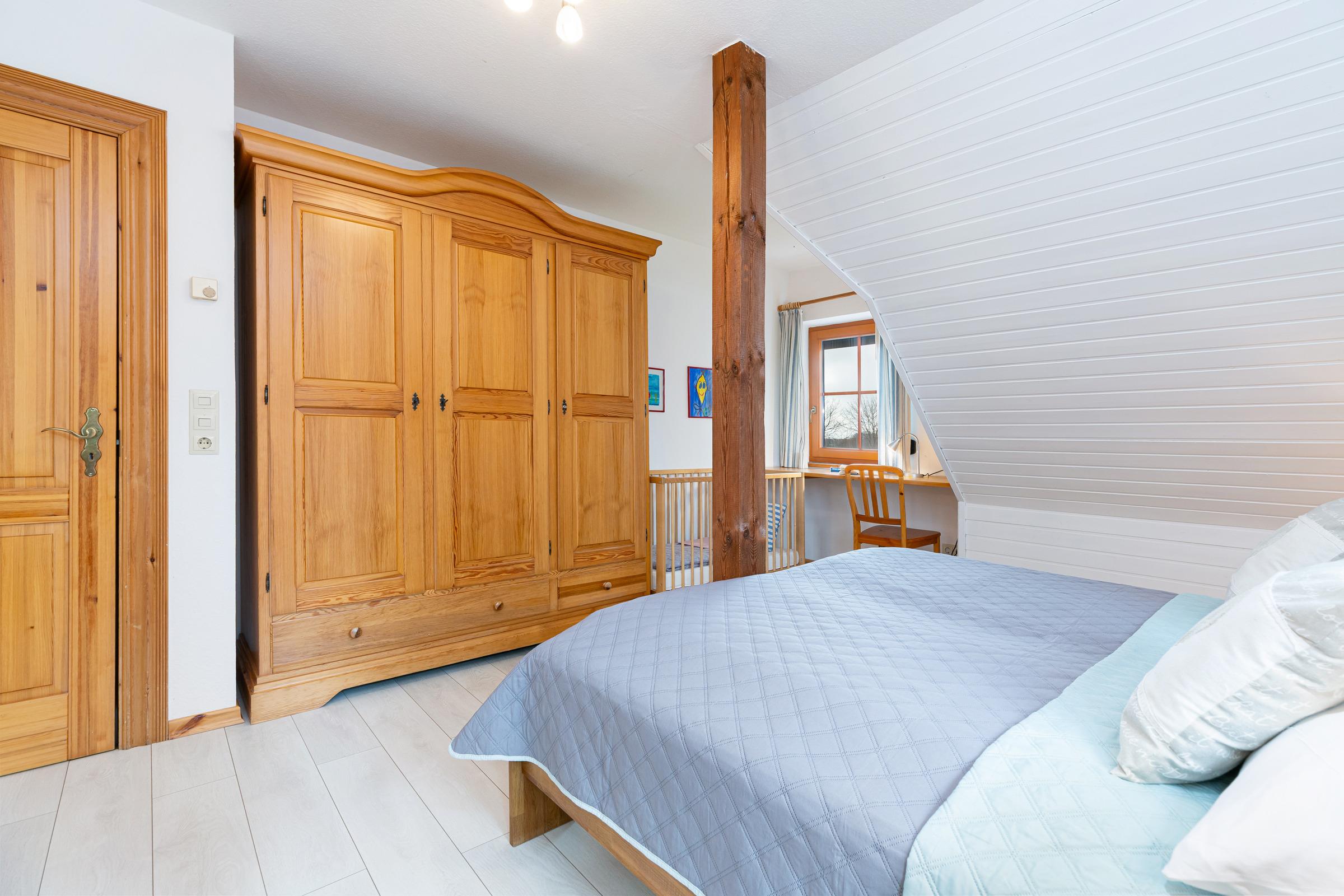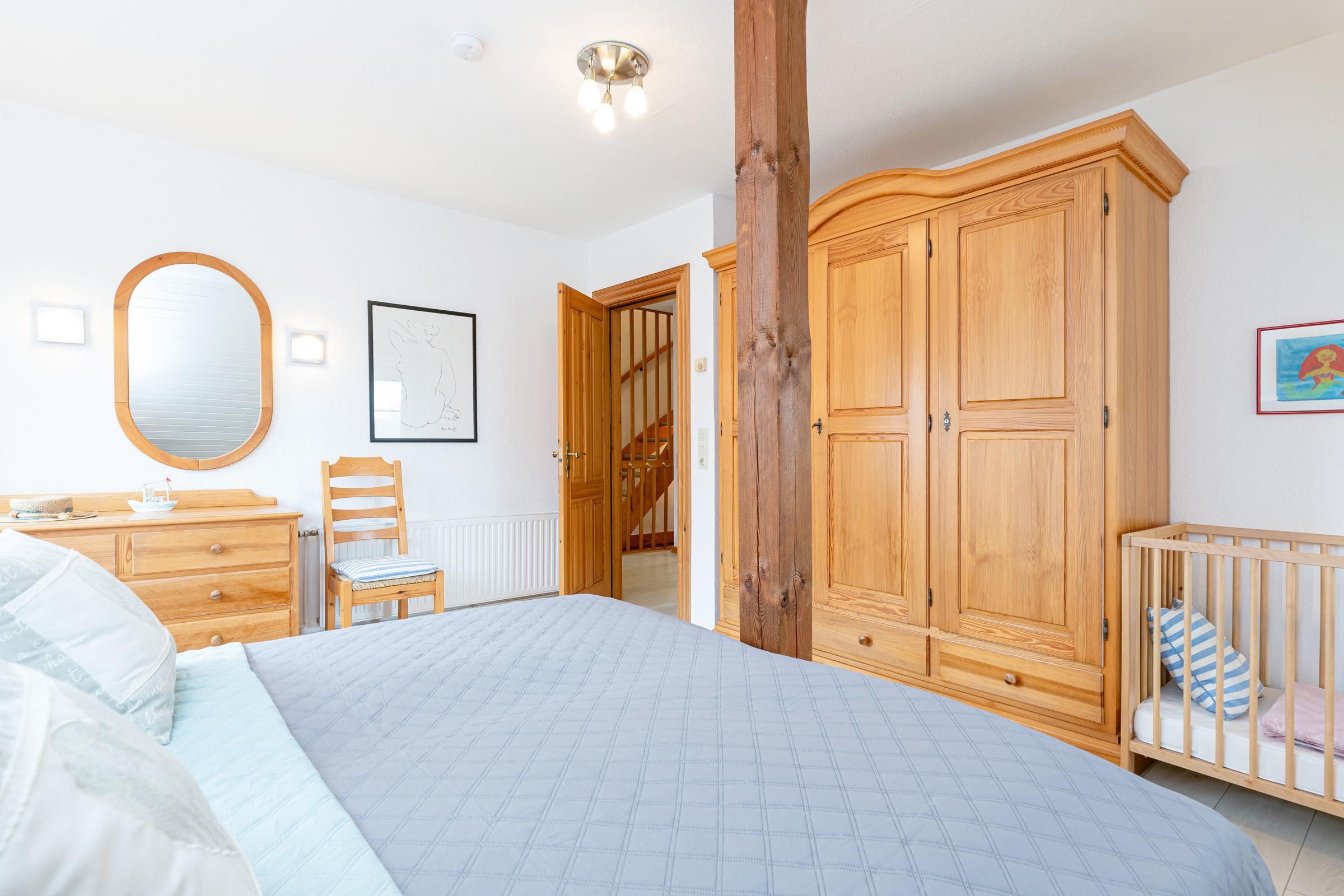 Im 1. Stock befinden sich drei Schlafräume: 1 großer Schlafraum mit einem Doppelbett (190x200 cm), Baby-/Kleinkindbett, Schrank und Kommode und 2 Schlafräume mit jeweils 2 Einzelbetten (je 90x200 cm) und genügend Schrank- und Stauraum. Auf dieser Ebene gibt es zwei Bäder: Ein großzügiges Badezimmer mit Dusche, Badewanne und 2 Waschtischen sowie ein weiteres Bad mit Dusche. Im Dachgeschoss finden Sie ein großzügiges Spielparadies, das kleine und große Kinder herzlich willkommen heißt. Ein Doppelbett (190x200 cm), eine Spiel- und Schlafkoje stehen hier zur Verfügung sowie ein Fernseher, Blue-Ray-Player, Bücher und Spielmaterialien.