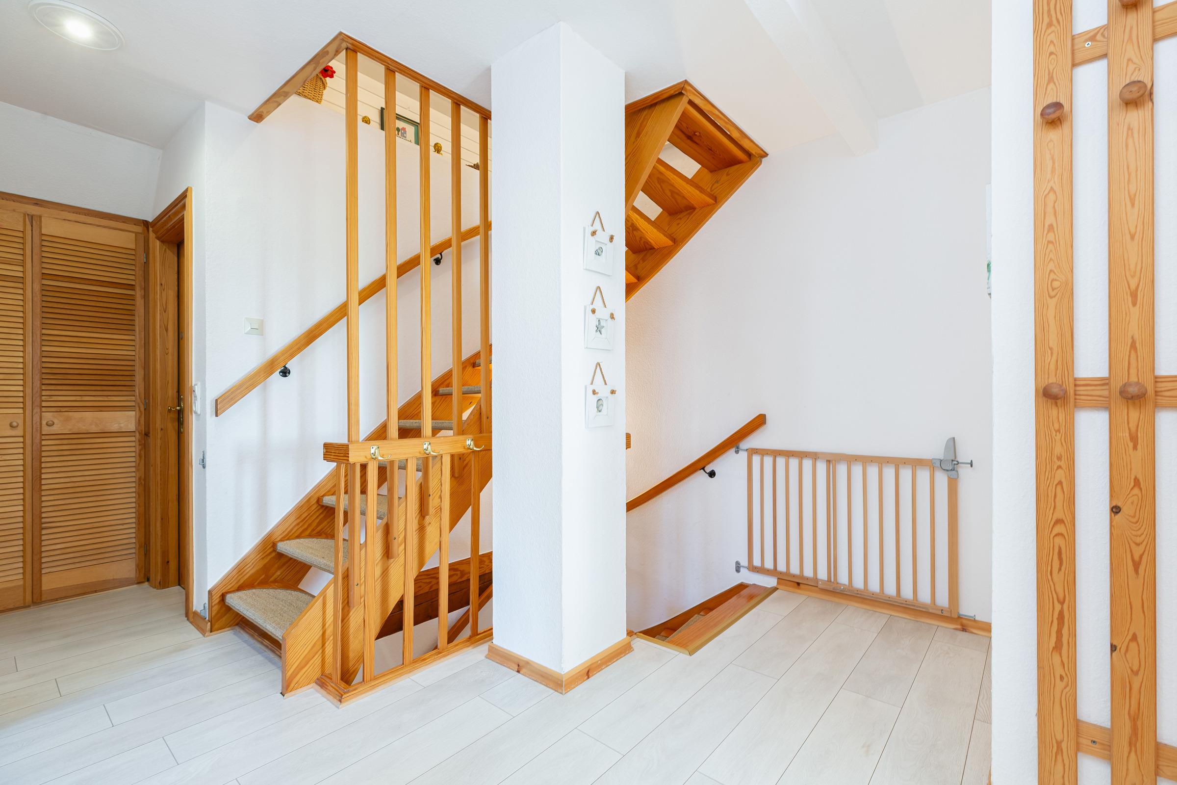 Babyhochstuhl und Treppengitter sind vor Ort.