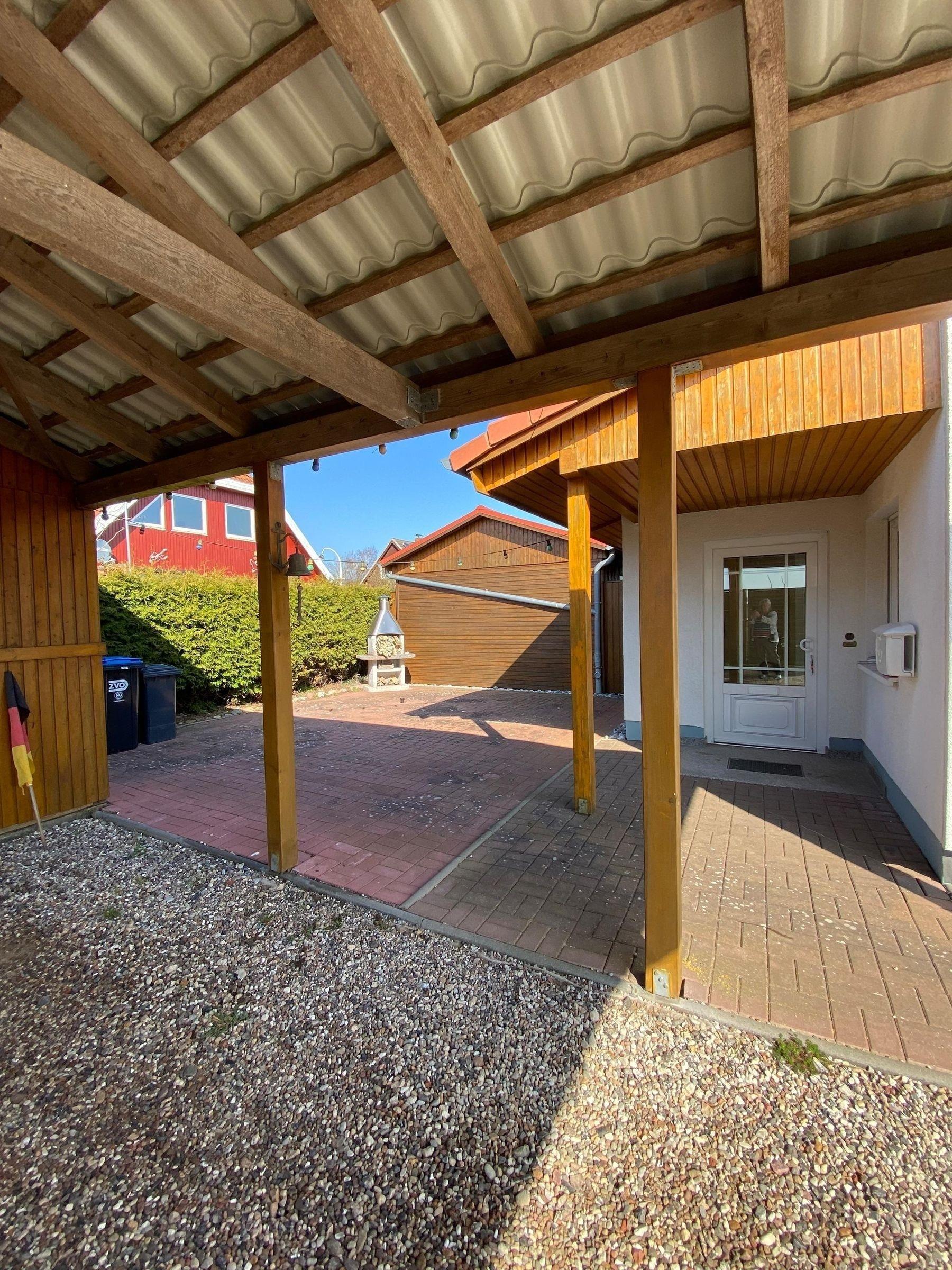 Ein PKW-Stellplatz im Carport ist für Sie reserviert. Eine Ladestation für Elektrofahrzeuge ist gegen Gebühr vorhanden. Für mitgebrachte Fahrräder oder Surfbretter gibt es einen abschließbaren Schuppen. Bügeleisen, Bügelbrett, Wäschespinne und Wäscheständer sind ebenfalls vorhanden.