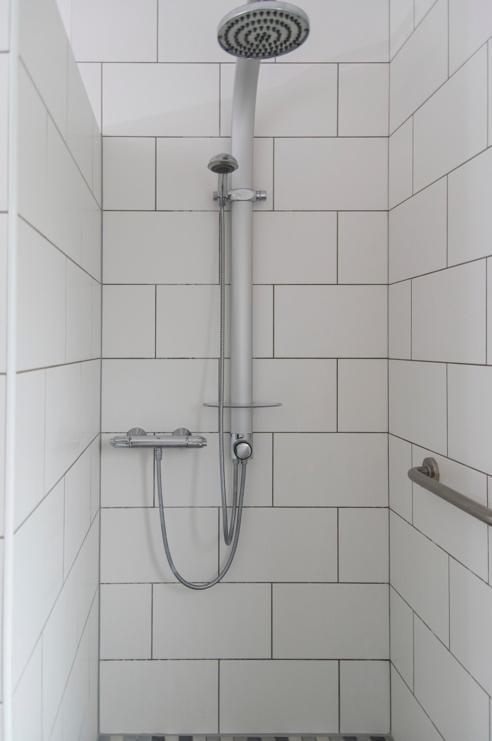einen bodentiefen Duschbad.