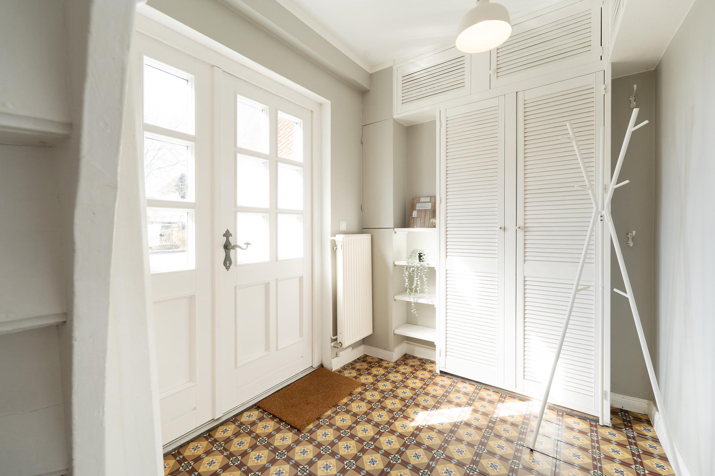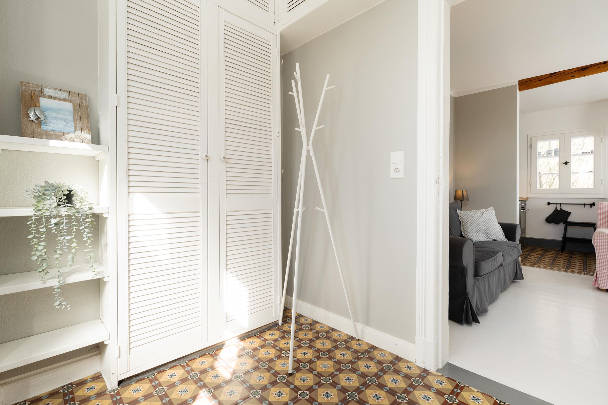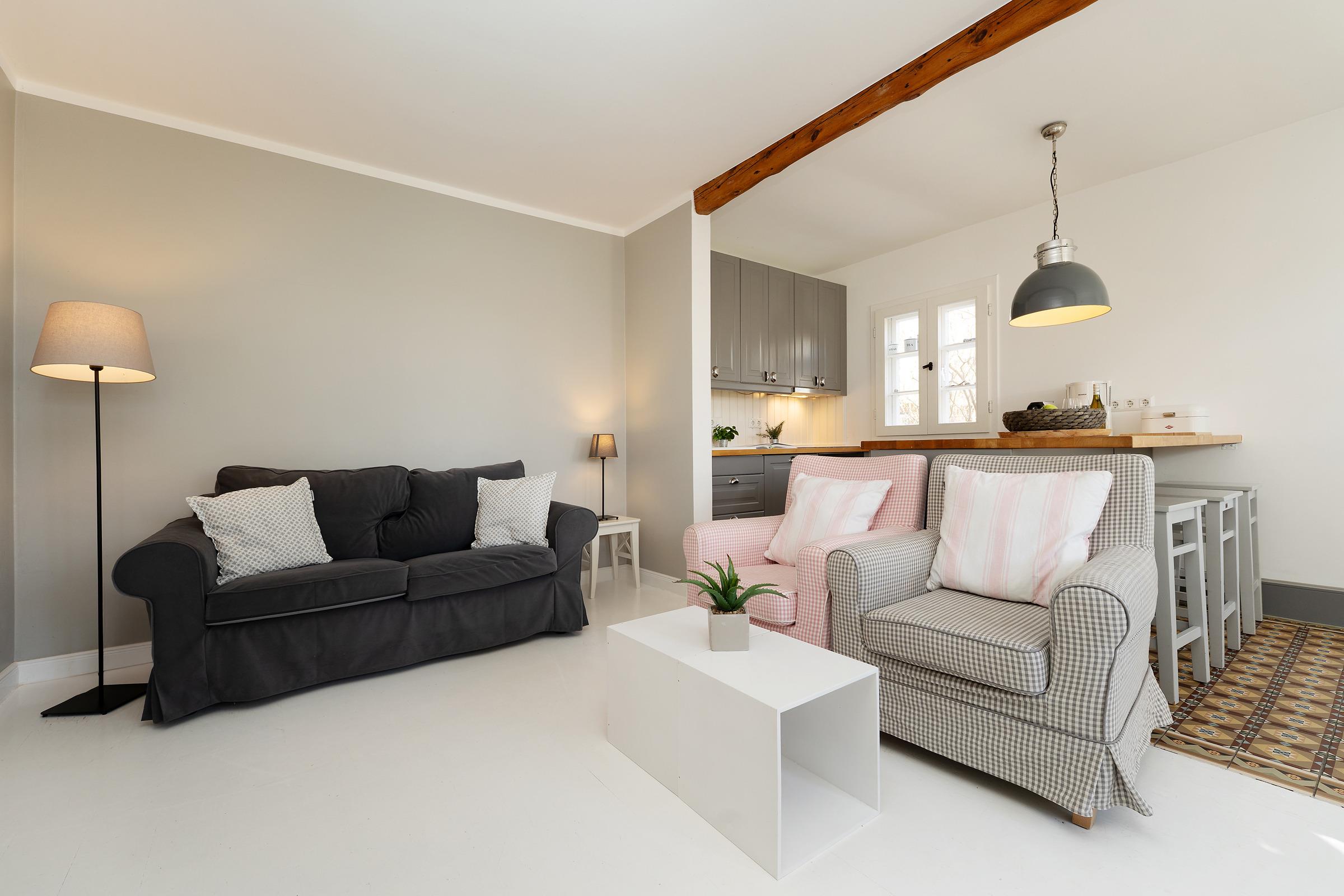 Freuen Sie sich auf die schönste Zeit des Jahres auf der Sonneninsel Fehmarn! Der charmante Einrichtungsstil dieser Ferienwohnung zeichnet sich durch die historischen und modernen Elemente aus, die hier harmonisch aufeinander abgestimmt sind. Im Erdgeschoss befindet sich das charmante Wohnzimmer mit gemütlicher Sofaecke, die gut ausgestattete offene Küche mit Geschirrspüler sowie das Duschbad. Auch finden Sie unten ein Schlafzimmer mit Doppelbett. Ein weiteres Schlafzimmer mit zwei Einzelbetten befindet sich im Obergeschoss. Die Schlafzimmer liegen hintereinander, sodass man durch das im Erdgeschoss gehen muss, um in das obere über eine steile Treppe zu gelangen. Eine Tür ist zwischen den beiden Schlafräumen vorhanden. Zum Objekt gehört ein Garten mit Sitzecke, Sonnenliegen und Grill.