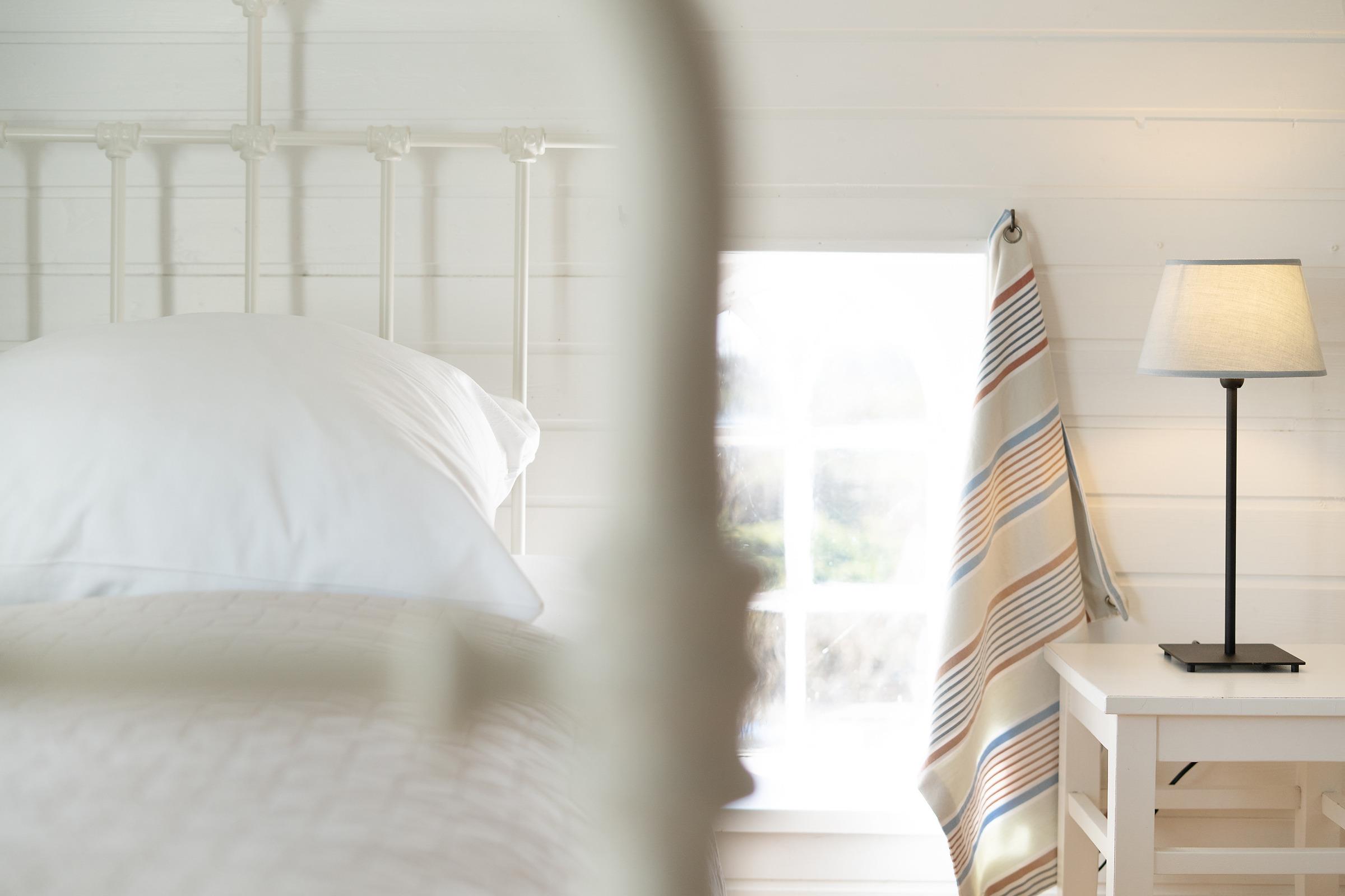 Schlafzimmer: kleines Doppelbett, Verdunkelung: Vorhang