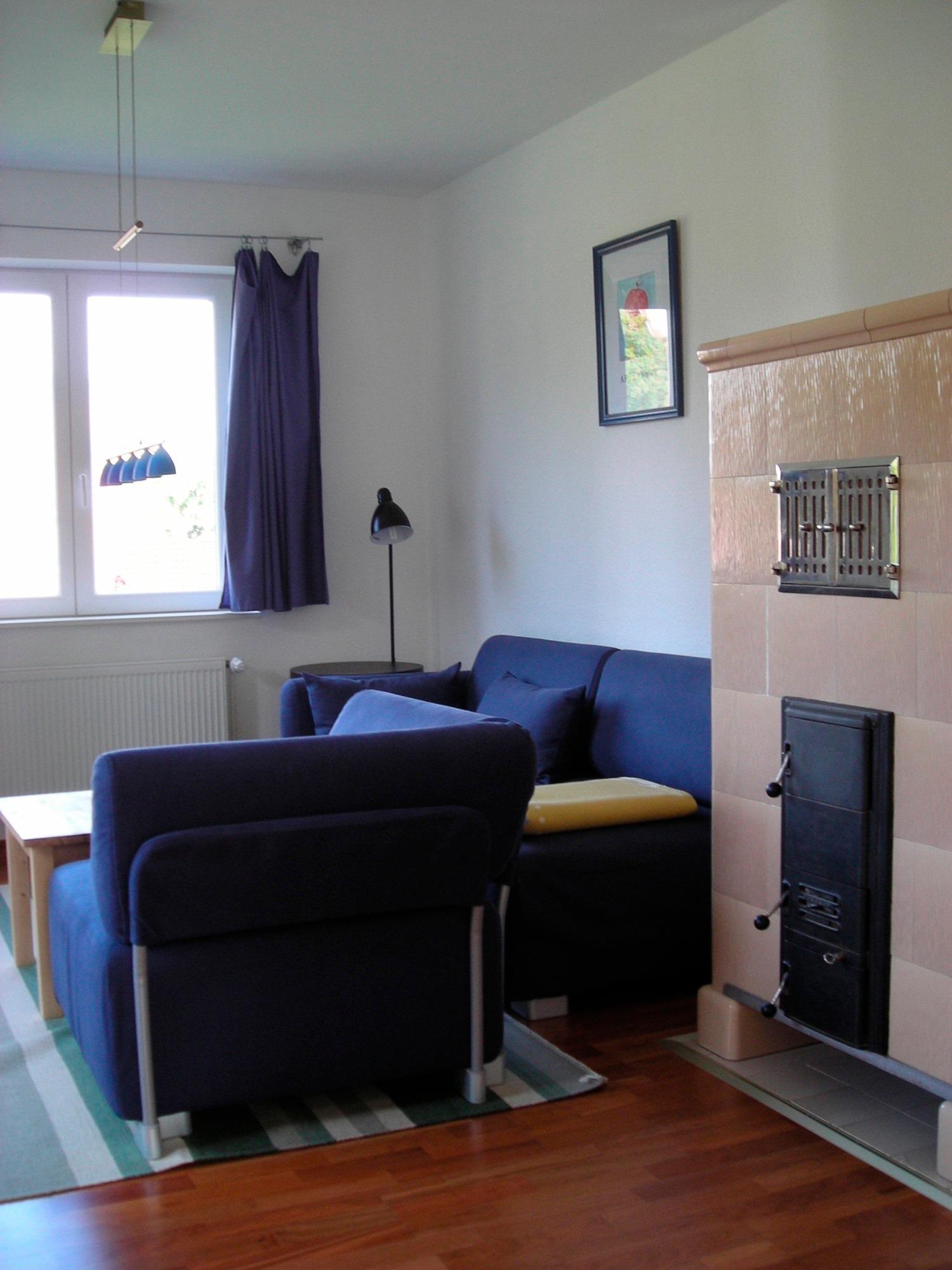 Die Ferienwohnung (75m²) ist ausgestattet mit moderner Einbauküche, Spülmaschine, TV und CD-Radio-Musikanlage. Die Küche verfügt über einen großen Essbereich. Das große Wohnzimmer ist großzügig eingerichtet. Ein alter Kachelofen erinnert an frühere Zeiten. Das Erwachsenen-Schlafzimmer ist mit einem Doppelbett, das Kinder-Schlafzimmer mit einem Etagenbett ausgestattet. Ein großer Flur, ein Vorflur mit Garderobe und ein großes Duschbad ergänzen die Räume. Die Wohnung ist komplett schwellenfrei, drei Stufen befinden sich im Eingangsbereich.