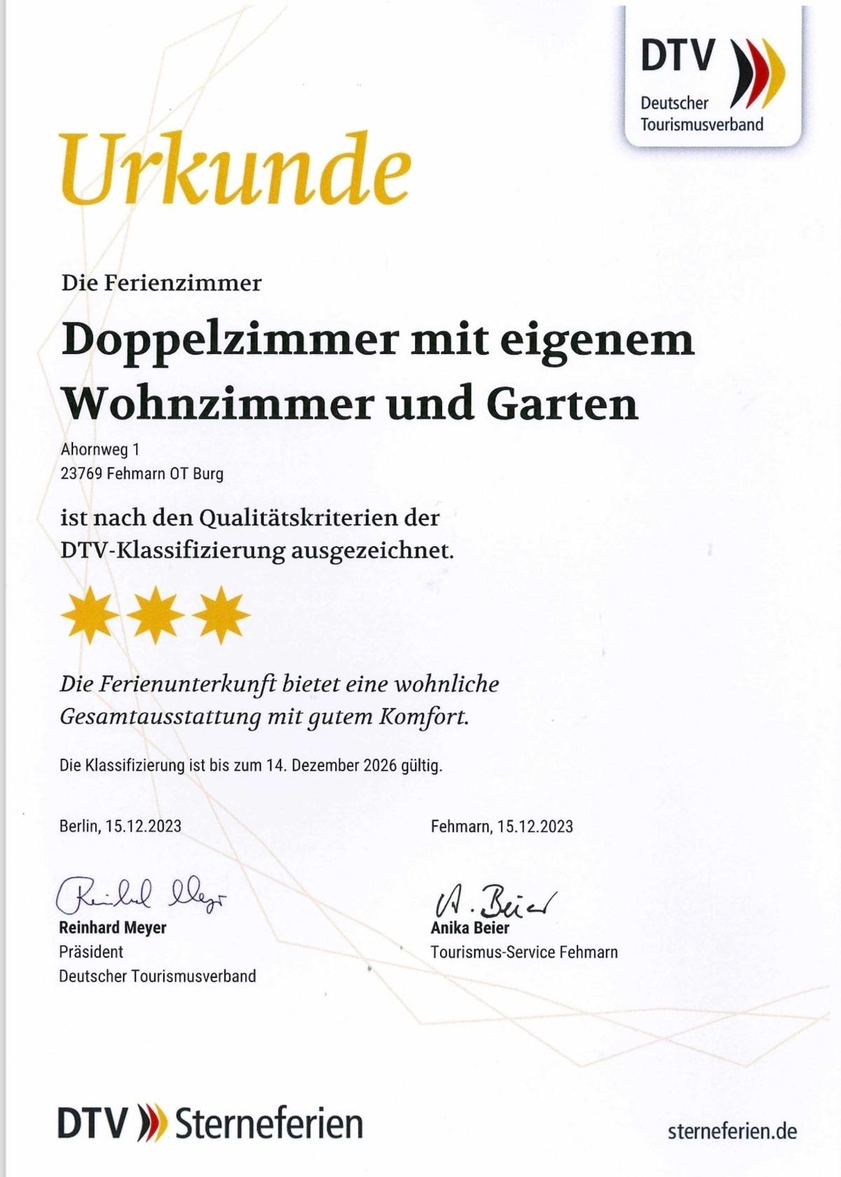 Moin liebe Insel-Gäste! Ich vermiete den Anbau von meinem Haus inklusive eigener Terrasse und Garten. Die Unterkunft besteht aus zwei Zimmern (Schlafzimmer + kleines Wohnzimmer), einem hochwertigem Badezimmer sowie einem Flur mit Garderobe. Ein kleiner Kühlschrank hilft euch, Getränke oder Snacks kühl zu halten. Mit eurer Kaffeemaschine und Tee-Angebot könnt ihr immer gut in den Tag starten. Nach Absprache biete ich euch einen optionalen Frühstücksservice an. Klassifiziert mit 3 DTV Sternen. - - - - - - - - - - - - In meiner Gästesuite fühlt ihr euch besonders wohl, da morgens die Vögel im Garten zwitschern und die Sonne ins Schlafzimmer scheint - die euch bis in die Abendstunden treu bleibt und auf der Terrasse und am Wohnzimmerfenster zu genießen ist. Neben einem großen Doppelbett (180x200) im Schlafzimmer nennt ihr ein kleines Wohnzimmer euer Eigen. Ihr könnt kostenfrei Internet (50Mbit, WLAN) nutzen sowie einen Fernseher mit Amazon Fire TV Stick und DVD Player. Außerdem habe ich ein Sammelsurium von Gesellschaftsspielen für euch vorrätig. Für Babys/Kleinkinder halte ich ein Reisebabybett bereit. Von der Unterkunft seid ihr zu Fuß in 5 Minuten im Zentrum Burgs und erreicht zahlreiche Geschäfte und Restaurants. Mit dem Bus, Fahrrad oder Auto ist man in wenigen Minuten am Südstrand. - - - - - - - - - - - - Die Unterkunft ist ca. 35 qm groß, der Garten ca. 250 qm - - - - - - - - - - - - Rabatt bei mehreren Nächten: - Ab 5 Nächten 5% - Ab 1 Woche 10% - - - Das Ferienzimmer ist nach den Qualitätskriterien der DTV-Klassifizierung ausgezeichnet mit 3 Sternen ***. "Die Ferienunterkunft bietet eine wohnliche Gesamtausstattung mit gutem Komfort. Die Klassifizierung für die Unterkunft ist bis zu Dezember 2026 gültig. - - - - - - - - - - - - Mehr Details zur Unterkunft: betretet das Grundstück über euren eigenen Eingang. Die Terrasse und der großzügige Gartenanteil ist durch Haus und Hecke abgegrenzt, sodass ihr euch dort ungestört aufhalten könnt. Ich wohne im Hauptgebäude und bin gerne für euch da, wenn ihr Ausflugstipps benötigt oder Fragen habt. Nach Absprache bereite ich euch gern ein Frühstück zu, welches ihr im Wohnzimmer oder auf der Terasse genießen könnt. Falls ihr spät Abends anreisen solltet oder früh abreist, erfolgt die Schlüsselübergabe über einen Schlüsseltresor. Das Haus befindet in ruhiger Lage zu den Feldern und dennoch zentral in Burg, dem Hauptort der Insel mit zahlreichen Restaurants und Geschäften. Zu Fuß ins Zentrum ist man in 5 Minuten. Vom Bahnhof Burg zur Unterkunft benötigt man zu Fuß 15 Minuten. Bis zum Südstrand sind es ca. 4 km. Zum Südstrand fährt man am besten mit dem Bus, Fahrrad oder Auto. Vom Bahnhof Burg sind es 15 Minuten zu Fuß bis zu mir. Von dort könnt ihr die gesamte Insel mit Bus, Fahrrad und zu Fuß erkunden. Zu Fuß seid Ihr in 5 Minuten im Stadtzentrum, in dem ihr in vielfältigen Cafes, Restaurants, Bäckereien, Supermärkten für euer leibliches Wohl sorgen könnt. des Weiteren laden zahlreiche Geschäften zum Flanieren ein. Zum beliebten Südstrand dauert es mit dem Fahrrad 12 Minuten, mit dem Auto 8 Minuten und mit dem Bus 20 Minuten aber gerne empfehle ich euch auch viele andere schöne Strände, die den Reiz unserer wunderschönen Sonneninsel ausmachen.