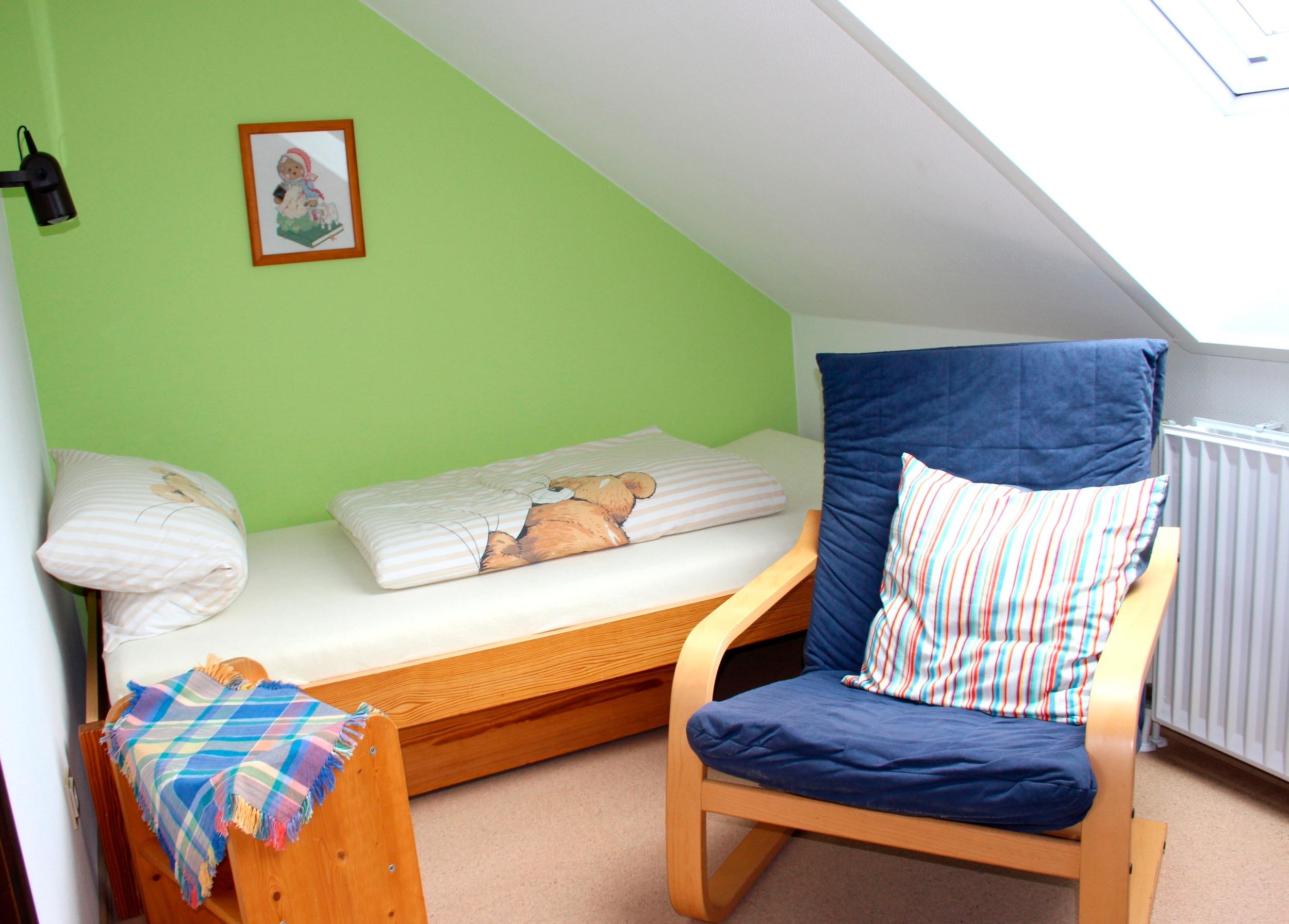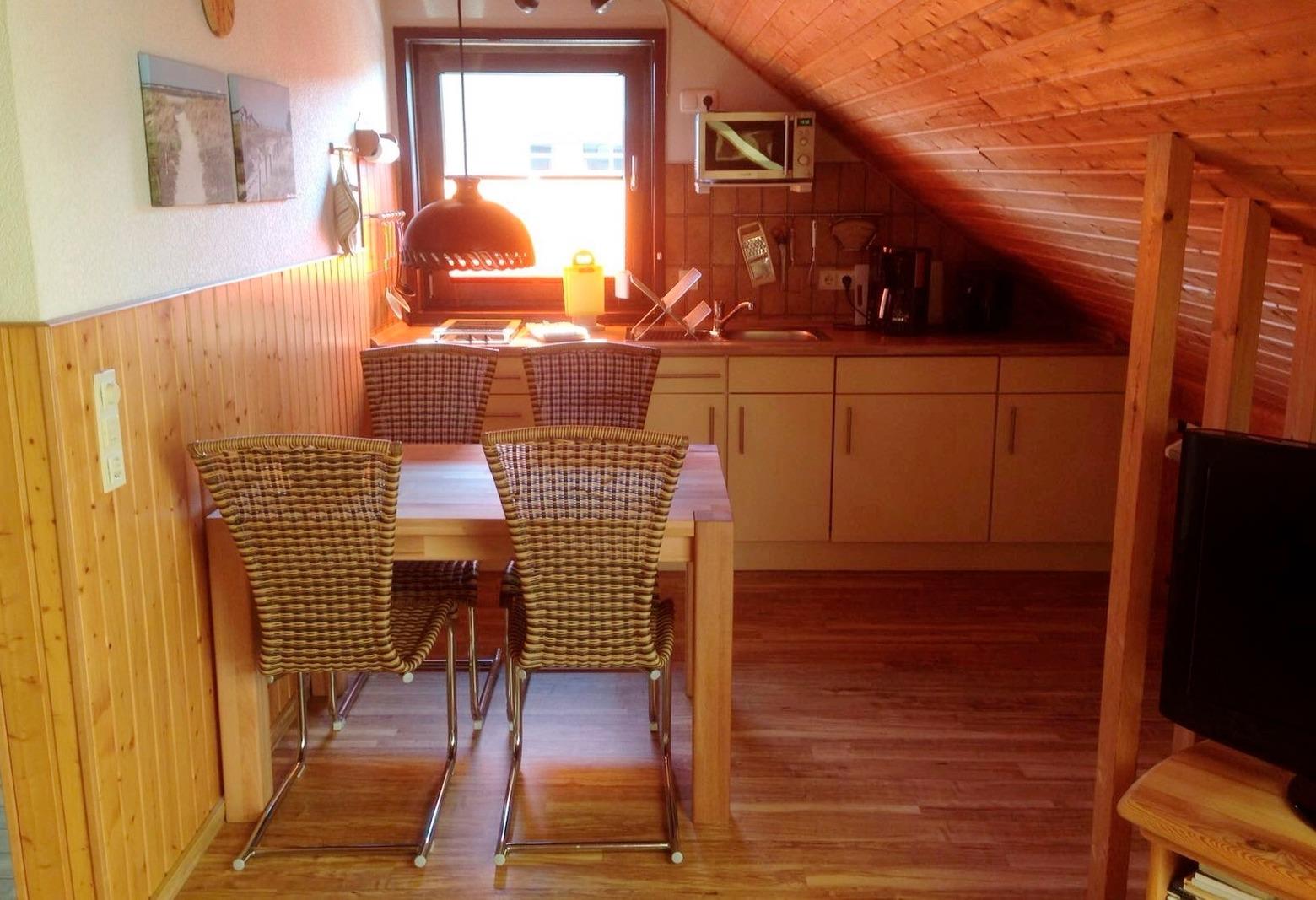 Unsere Ferienwohnung ist ca 50 qm groß und befindet sich im Dachgeschoß unseres Eigenheimes. Sie verfügt über ein hell eingerichtetes Wohnzimmer mit neuwertiger Küchenzeile, einer Essecke, einem Schlafzimmer mit Doppelbett und einem weiteren Zimmer mit Schlafmöglichkeit und einem komlpett renovierten Duschbad.