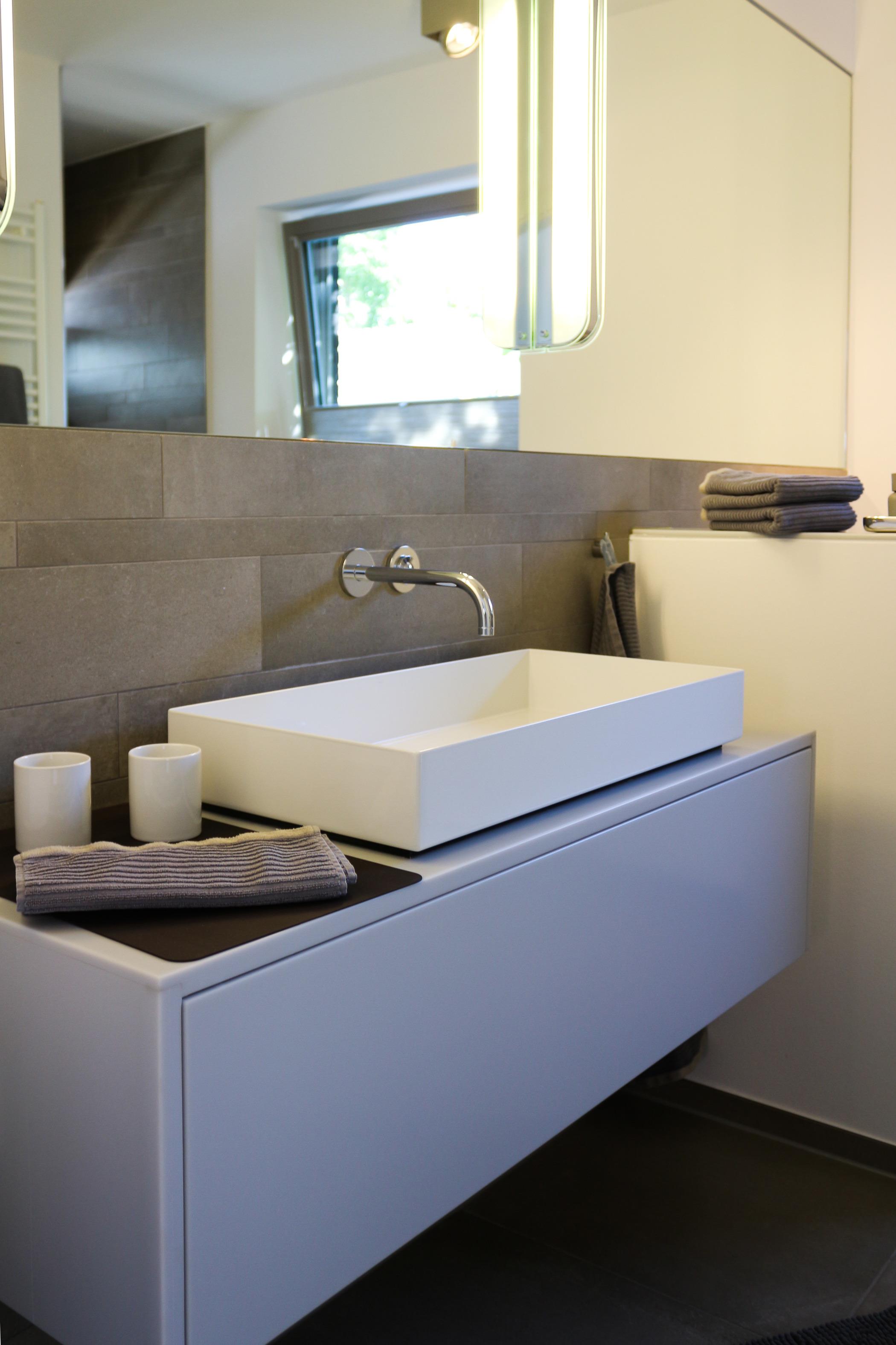 Das Badezimmer ist hell, freundlich und individuell eingerichtet und sehr geräumig.