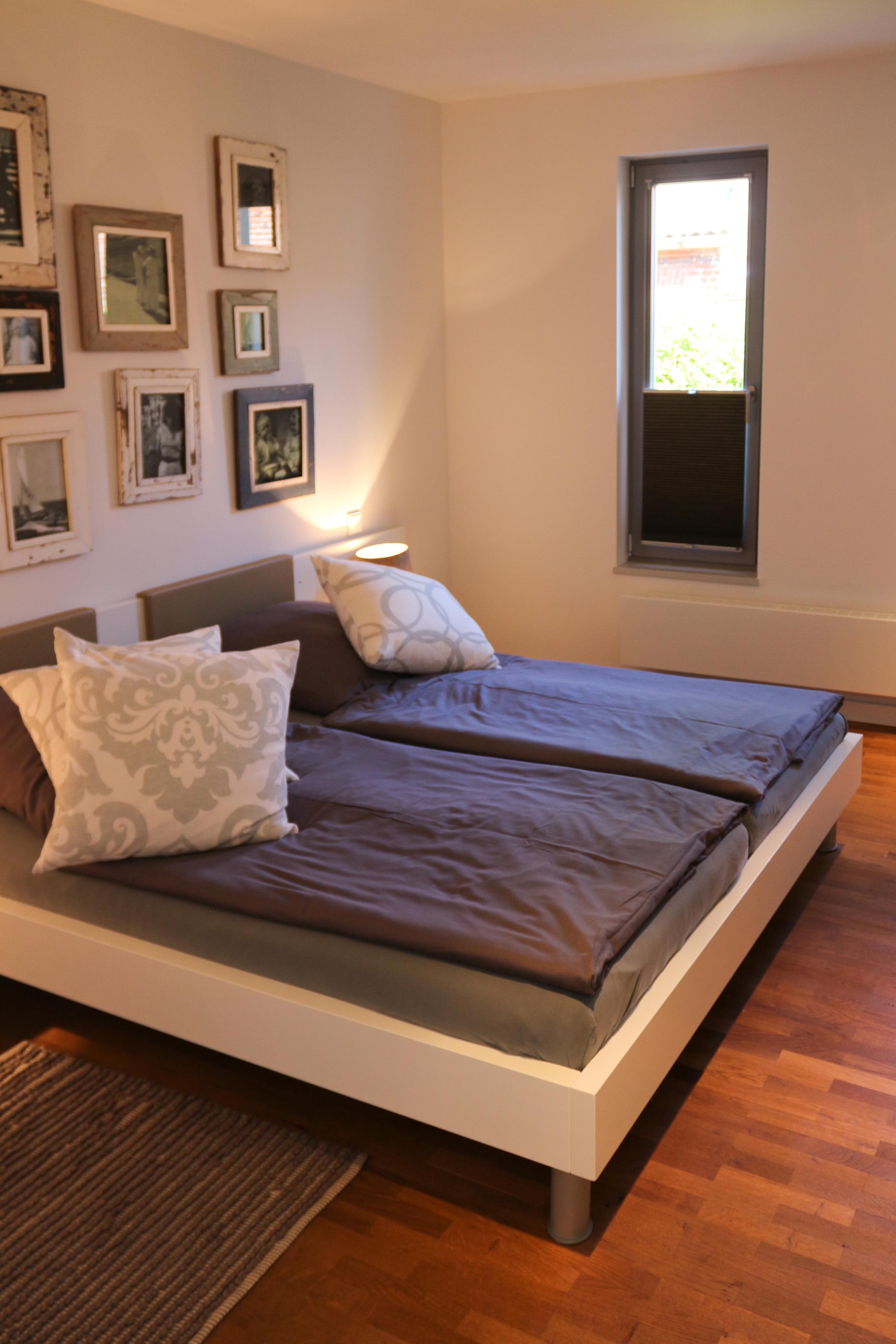 Das Schlafzimmer (Hülsta) ist mit einem Doppelbett B180cm x L 200cm mit Einzelmatratzen ausgestattet. Jede Menge Schrankplatz ist vorhanden, um den einen oder anderen Pullover mehr, oder ein schickes Abendoutfit mit zu bringen. Übrigens: Wäschespinne, Bügeleisen u.-brett befinden sich in der Wohnung.
