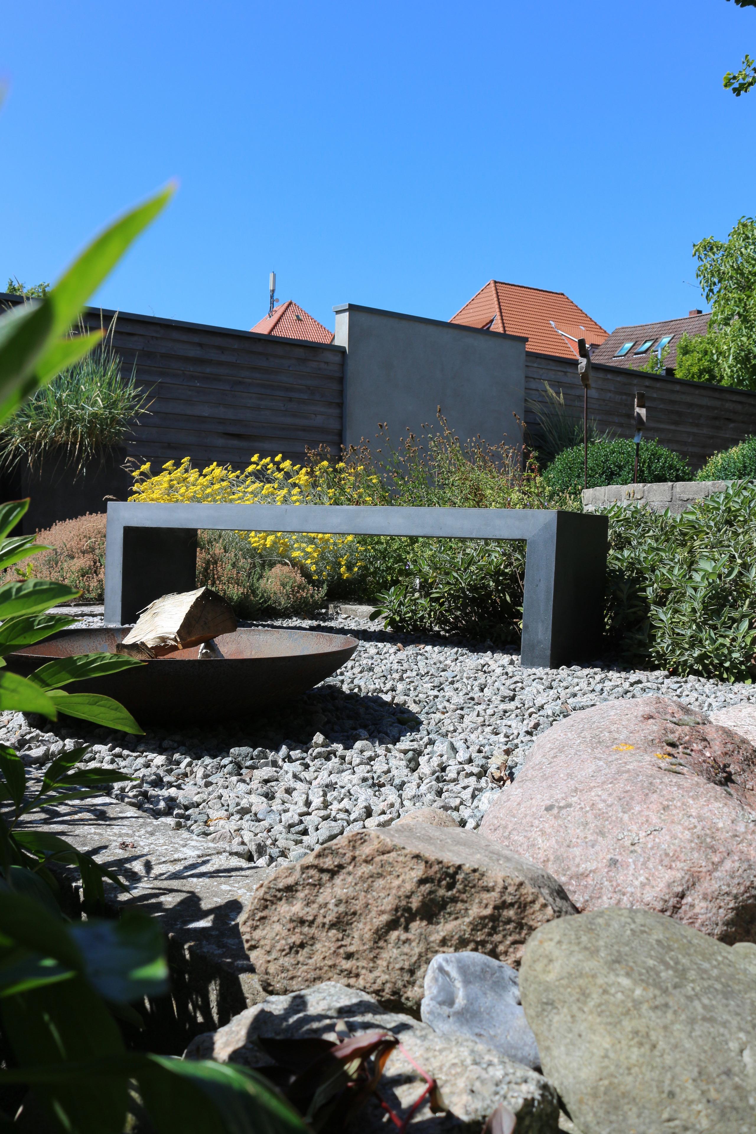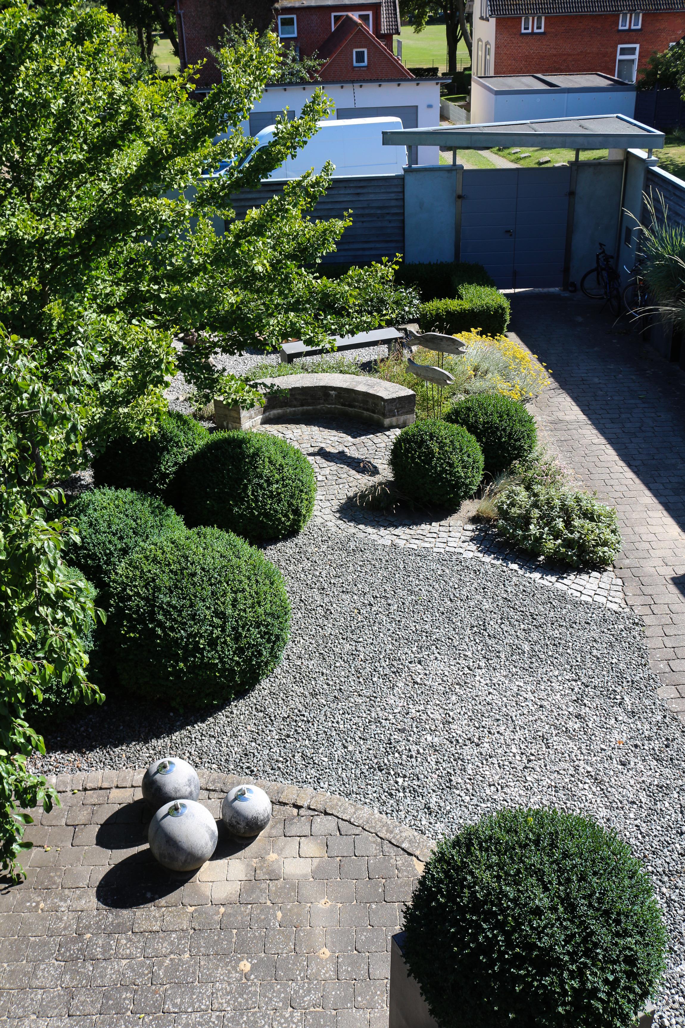 Das Gartenhaus besteht aus drei Kuben in drei Ebenen. In Kubus 1 und 2 befindet sich die Ferienwohnung, in Kubus 3 eine Sauna mit eigenem Zugang und Gartenblick; darüber die Dachterrrasse des Gartenhauses.