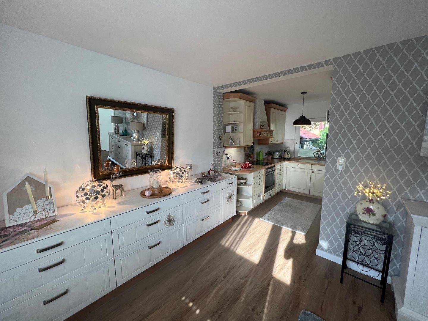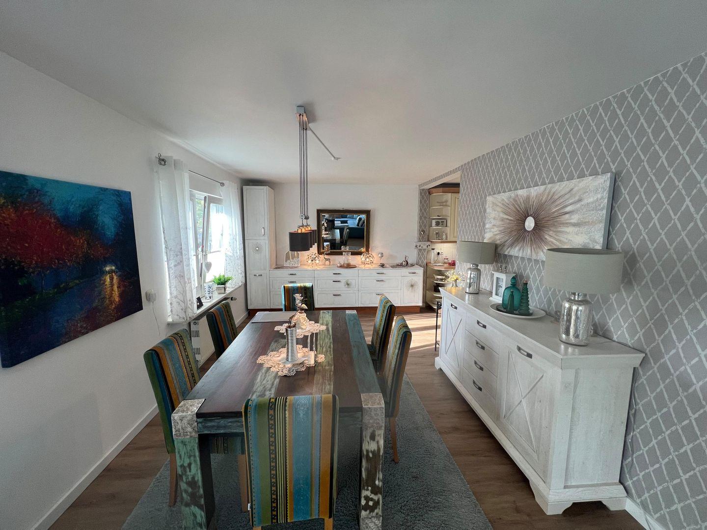 Die "Ruheoase" ist mit einem gemütlichen Wohn-/Essbereich, großzügigem Bad im Erdgeschoss auf ca. 129 m² modern und komfortabel ausgestattet. Das Haus ist liebevoll gestaltet und eingerichtet. Sie finden eine elegante Atmosphäre und Ausstattung vor- es fehlt an nichts. In den 3 Schlafräumen, zwei mit 180er Boxspringbetten, eines mit 140er Boxspringbett, finden bis zu 5 Erwachsene Platz. Ein kostenfreies WLAN, eine hochwertig komplett ausgestattete Küche inklusive Geschirrspüler und integrierter Mikrowelle und vieles mehr sorgen für einen angenehmen Urlaub.
