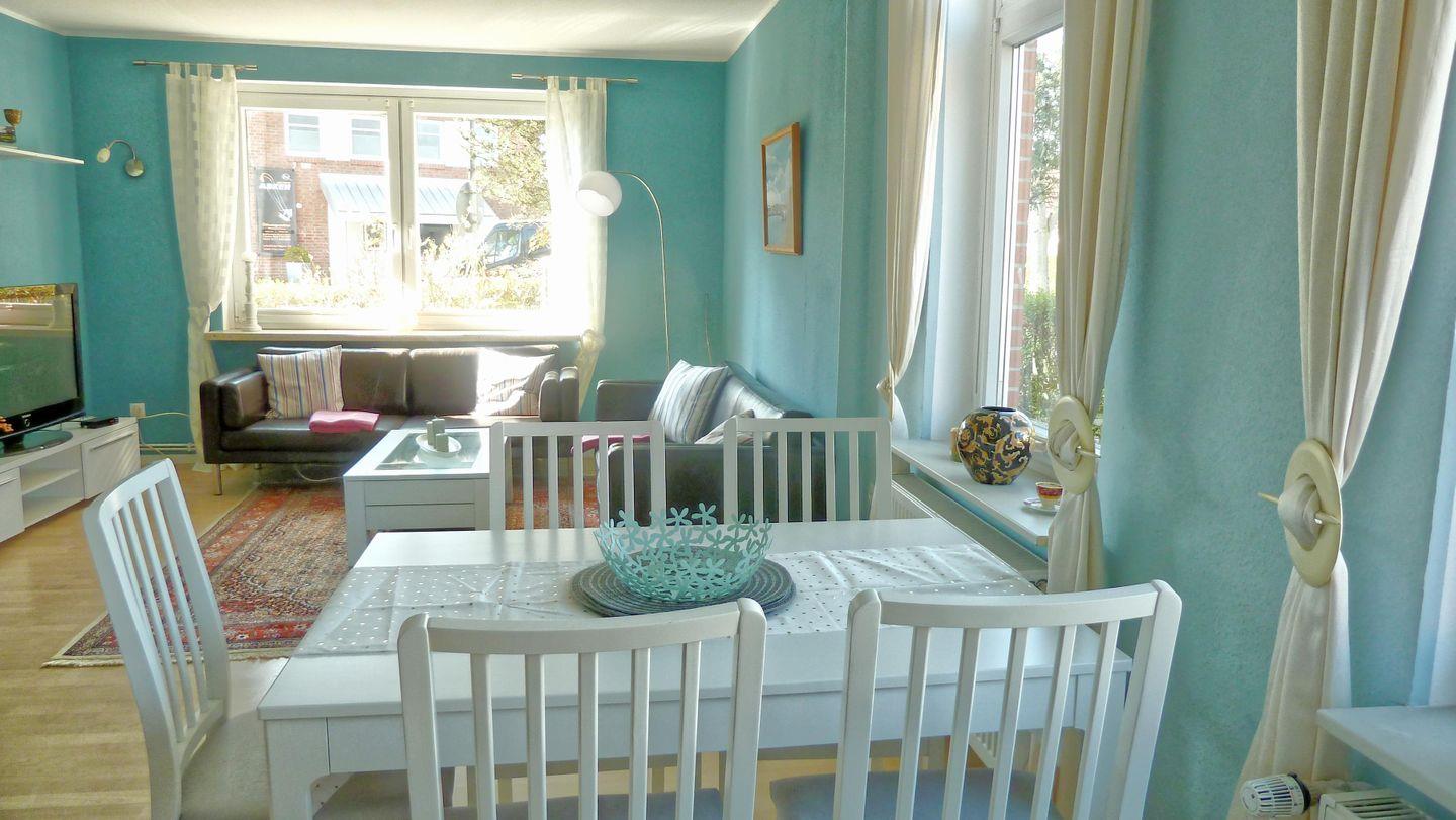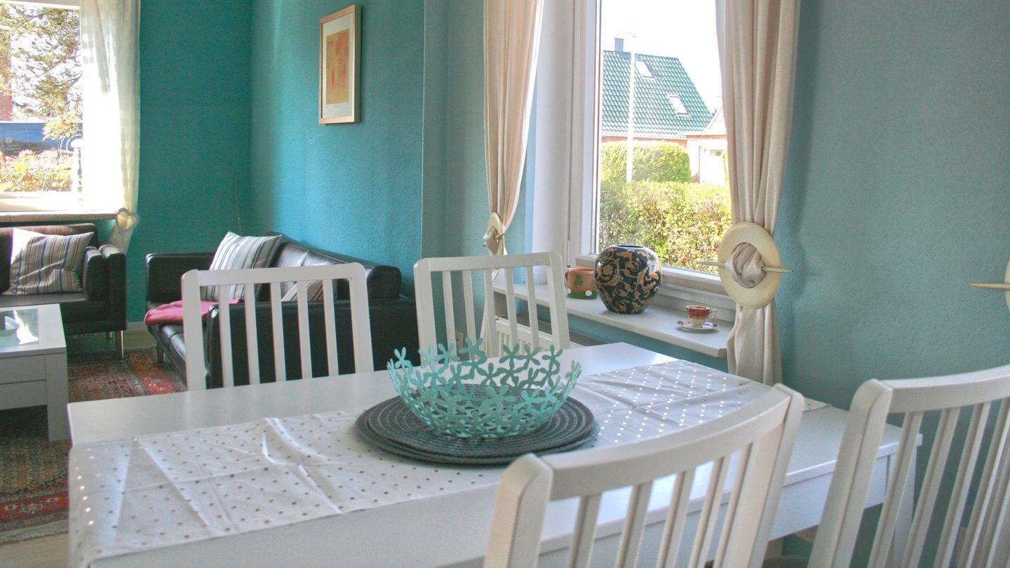 Die Ferienwohnung blue lagoon ist mit einem gemütlichen Wohn/Essbereich und einem großzügigen Bad auf ca. 90 qm modern und komfortabel ausgestattet auch hervorzuheben ist, dass sich im oberen Schlafbereich ein kleines WC befindet. Das Haus ist liebevoll gestaltet und eigerichtet. Ein kostenfreies W-Lan, eine hochwertig komplett ausgestattet Küche mit Ceran Feld, Geschirrspüler und vieles mehr sorgen für einen angenehmen Urlaub.
