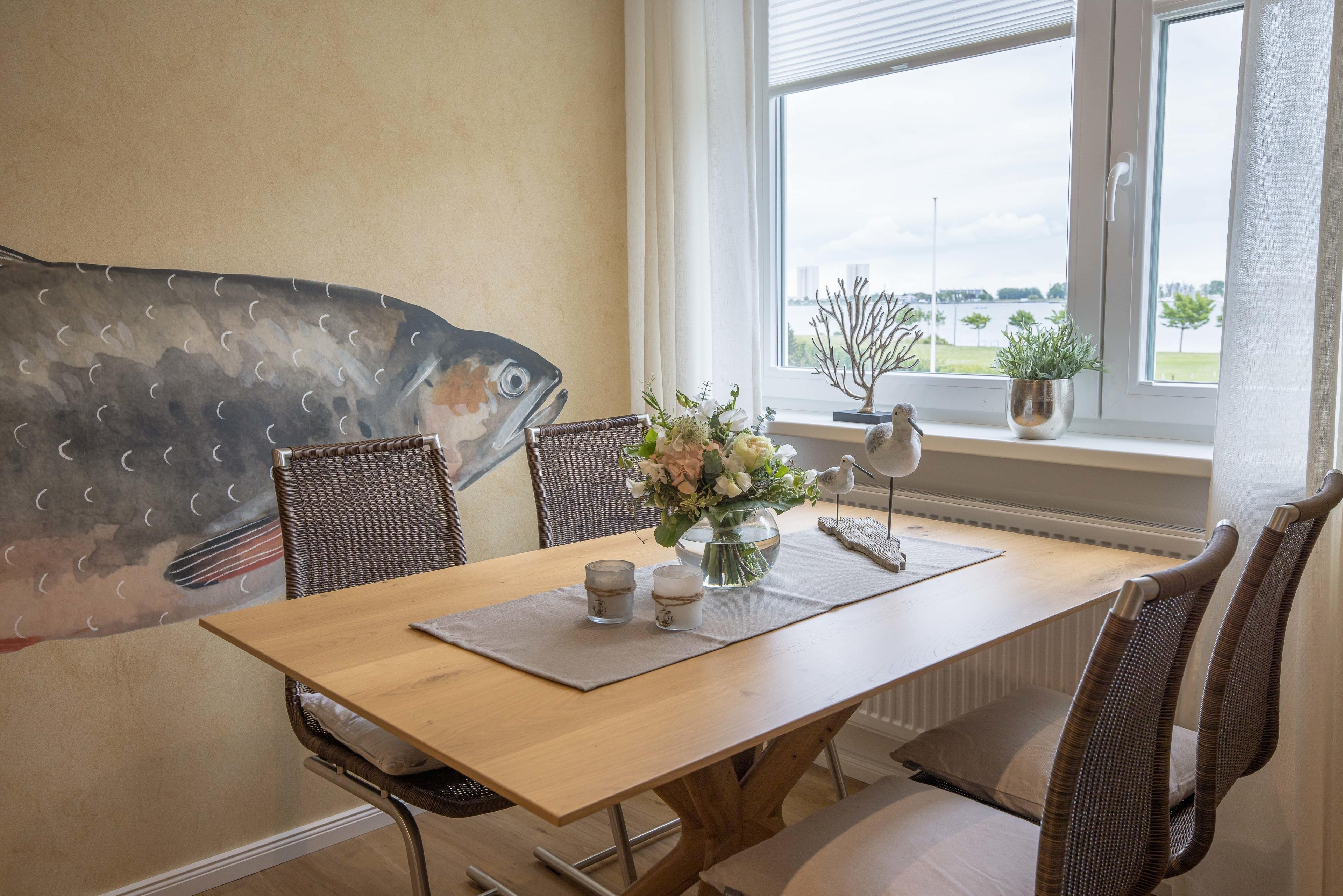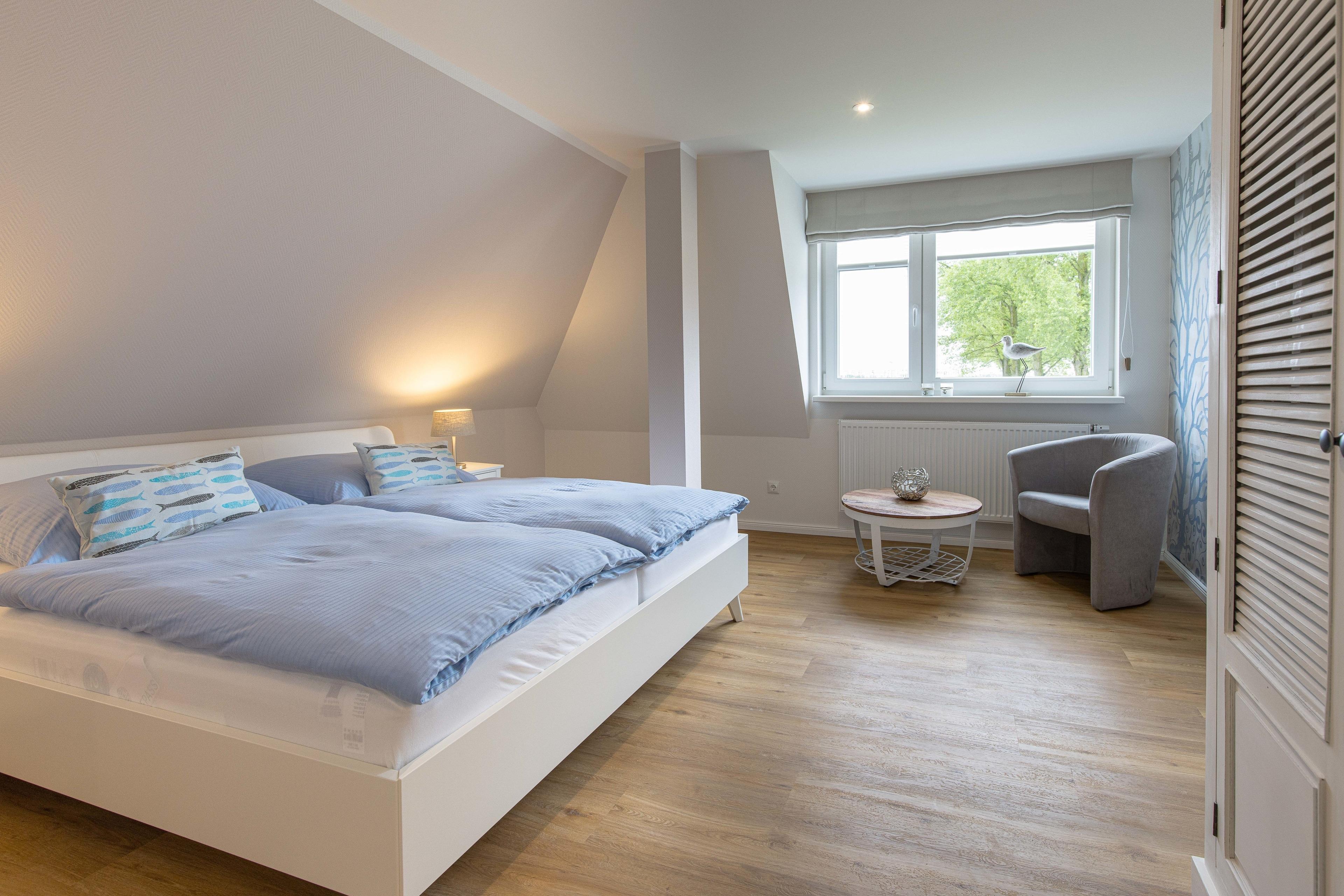 Unsere neue, moderne Wohnung erwartet Sie mit hochwertiger Wohnlichkeit. Die Wohnung liegt im OG eines Einfamilienhauses mit Parkplatz am Haus. Sie verfügt über 2 Schlafräume mit Doppelbetten, ein Wohnzimmer mit Blick auf den Binnensee, eine separate Küche und Duschbad. Hinterm Haus befindet sich ein Garten zum verweilen mit Sonnenterrasse und Grillmöglichkeit.