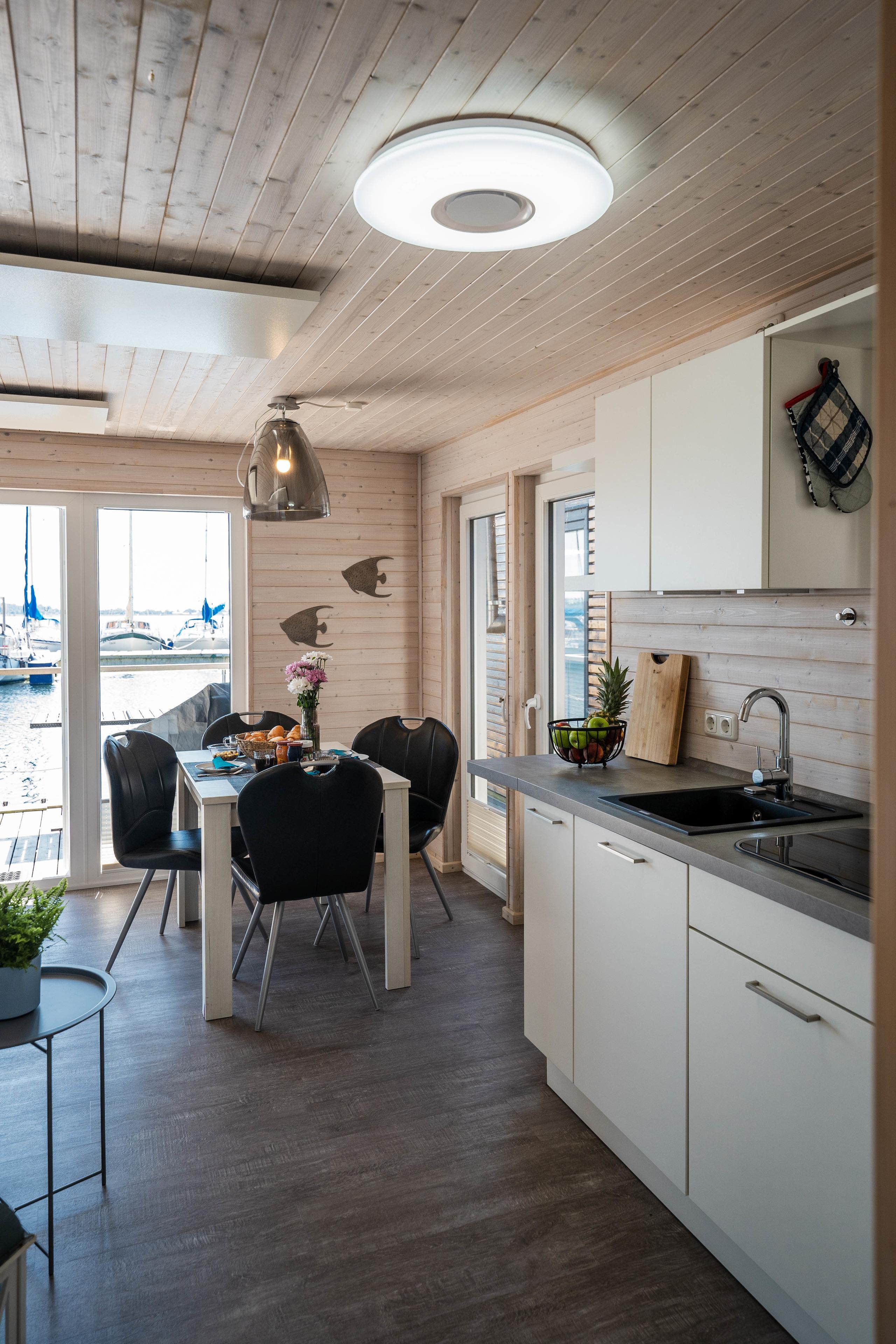 Das Hausboot ist mit allem ausgestattet, was Sie für einen unvergesslichen und entspannten Urlaub benötigen. Genießen Sie Ihre Lieblingssendungen auf einem DVB-T2 Fernseher mit rund 100 Programmen, während Ihnen die Marine-360Grad-Antenne jederzeit besten Empfang garantiert. Sollte der Empang wetterbedingt mal nicht mitspielen, sorgt unser Vodafone Giga-Cube G4/WLAN-Access-Point für schnelles Internet, damit Sie jederzeit online bleiben können.