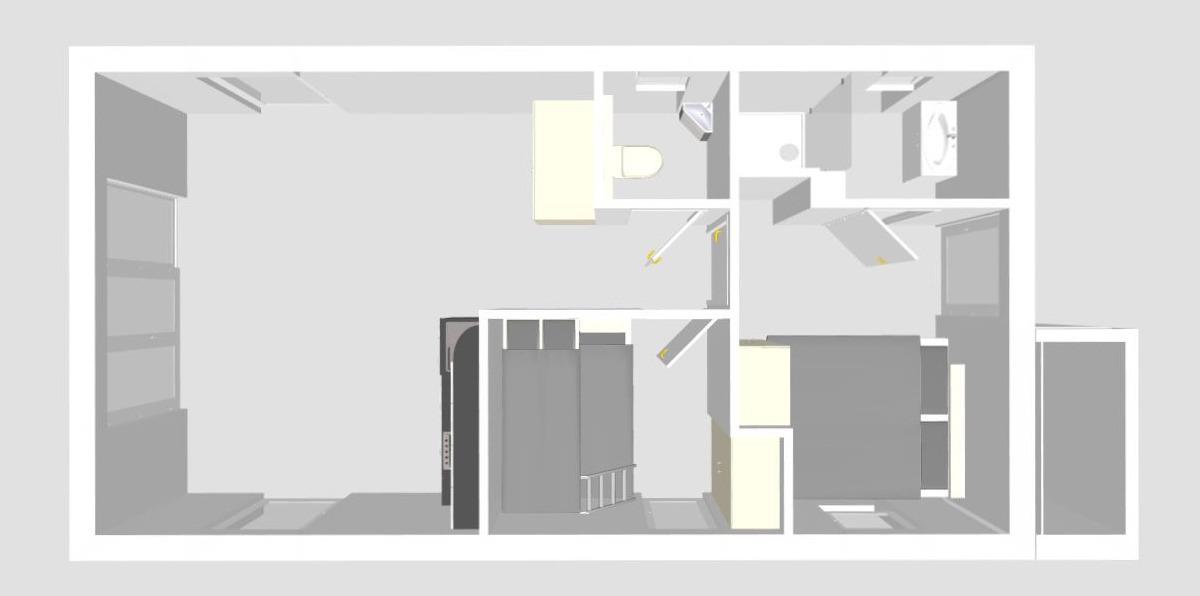 Der 2. Schlafraum ist separat und verfügt über ein Doppelbett unten (140cmx 200cm) unten und einem Etagenbett darüber (80cm x 200).