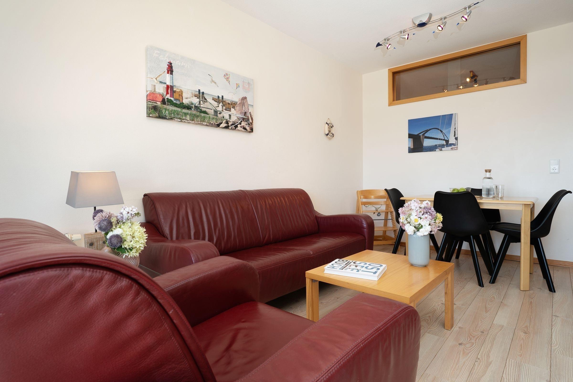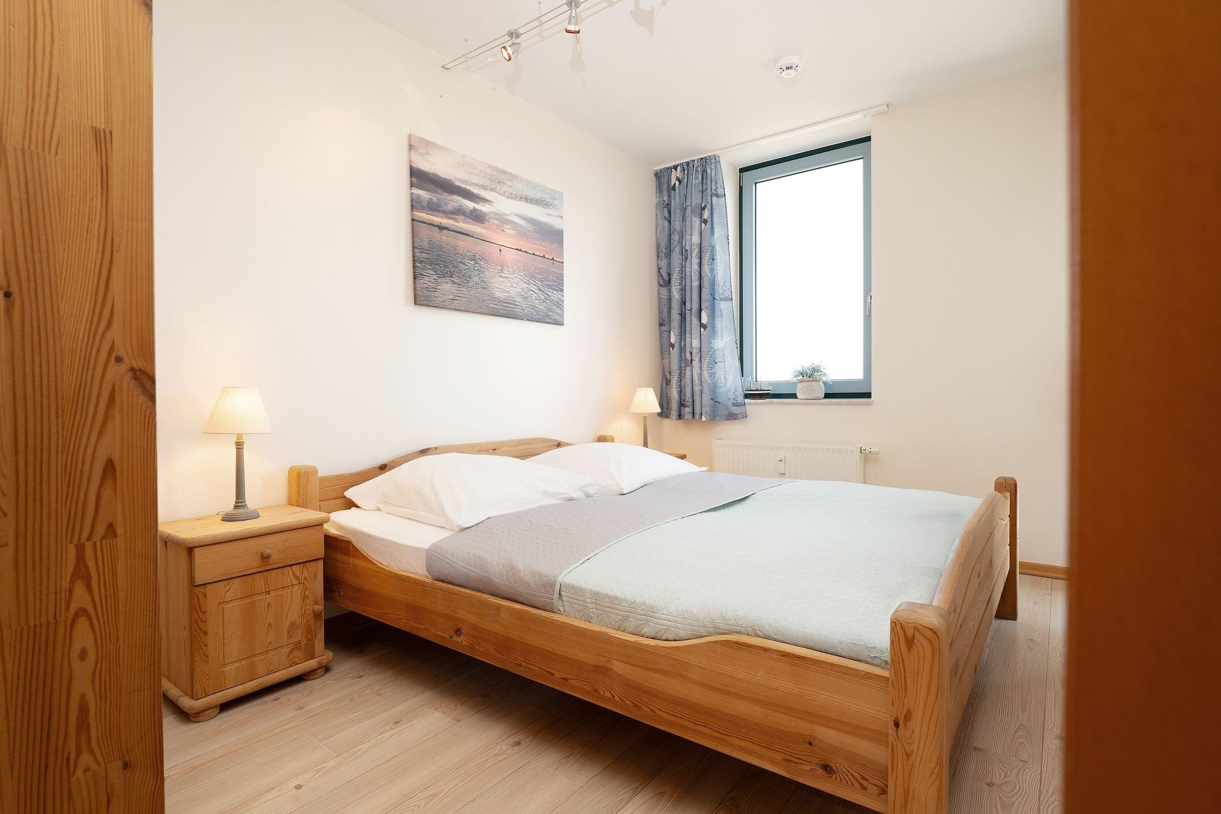 Die Wohnung ist gut erreichbar über einen rollstuhlgerechten Fahrstuhl. Sowohl aus dem Schlafzimmer als auch aus dem Wohnzimmer können den Blick aufs Meer genießen. Freuen Sie sich auf ein außergewöhnliches Urlaubsambiente mit einem gemütlichen Wohnzimmer mit Sitz- und Essecke. In der separate Küche können Sie wunderbar die Rezepte der Region ausprobieren. Für die Nacht stehen zwei Schlafzimmer bereit: Das eine ist mit einem Doppelbett (ca. 180x200 cm) ausgestattet, das andere mit einem Etagenbett (je 90x200 cm). Schlafen Sie bei offenem Fenster und lauschen Sie dem Meeresrauschen. Nach einer erholsamen Nacht werden Sie von der strahlenden Morgensonne geweckt. Das innenliegende Duschbad bringt Sie entspannt in den neuen Tag. Praktisch: Im Erdgeschoss des Hauses finden Sie einen Bäcker und einen Zeitungskiosk. Bitte beachten Sie die saisonabhängigen Öffnungszeiten.