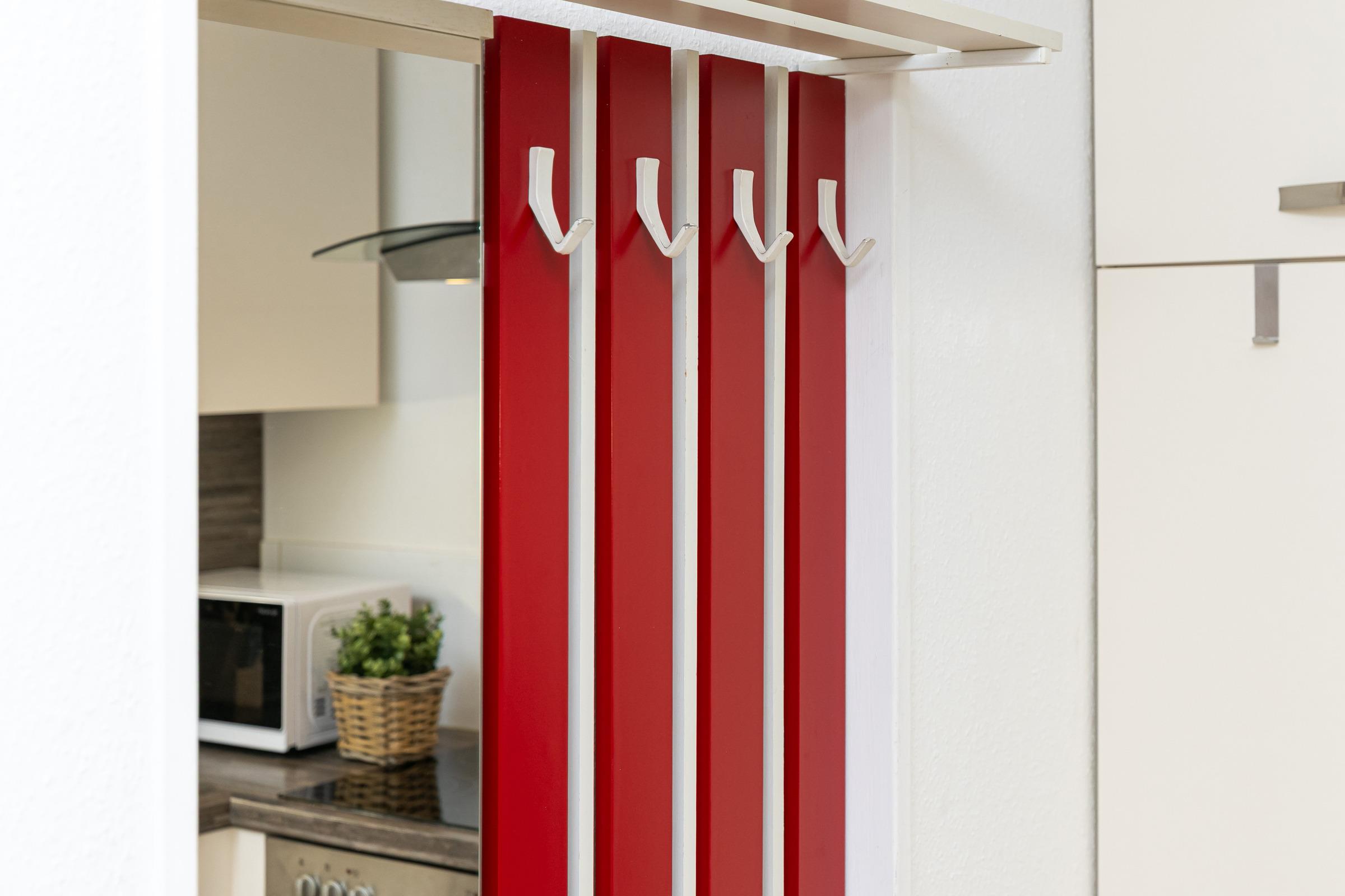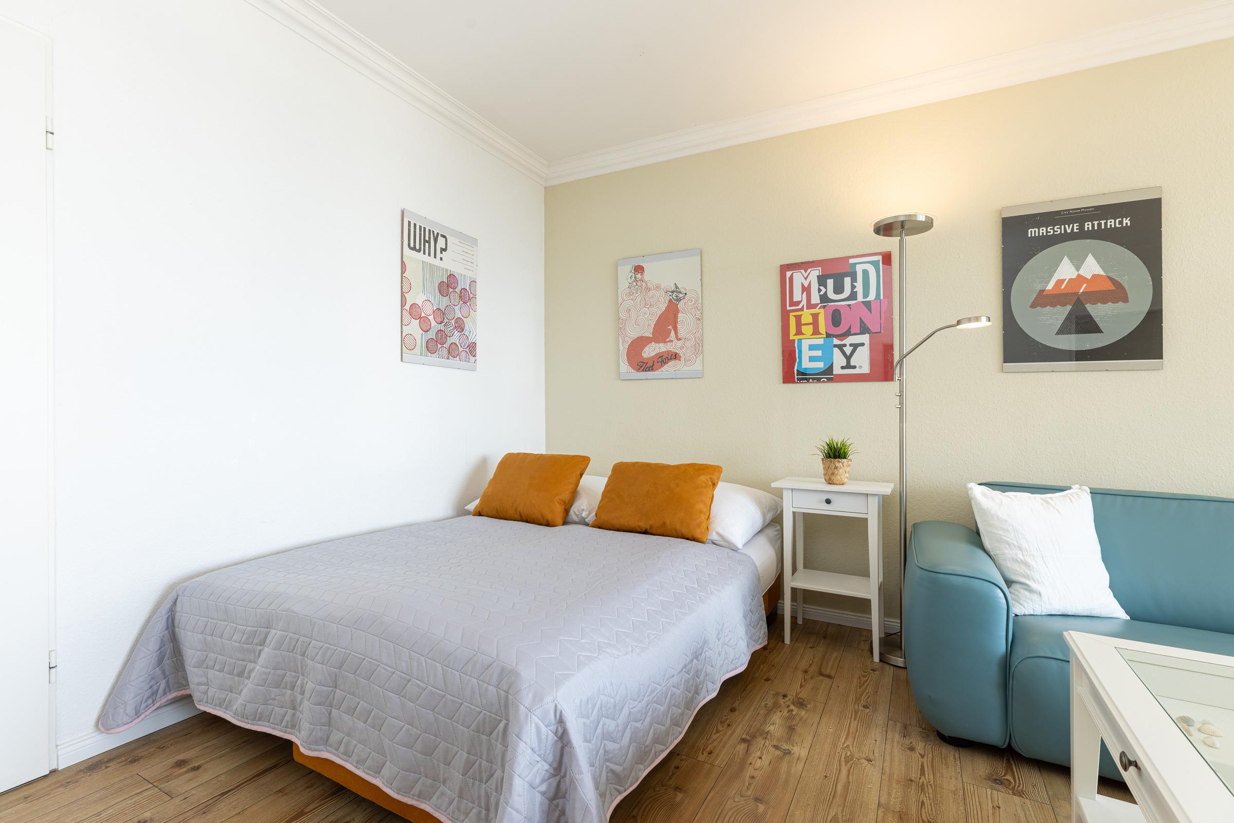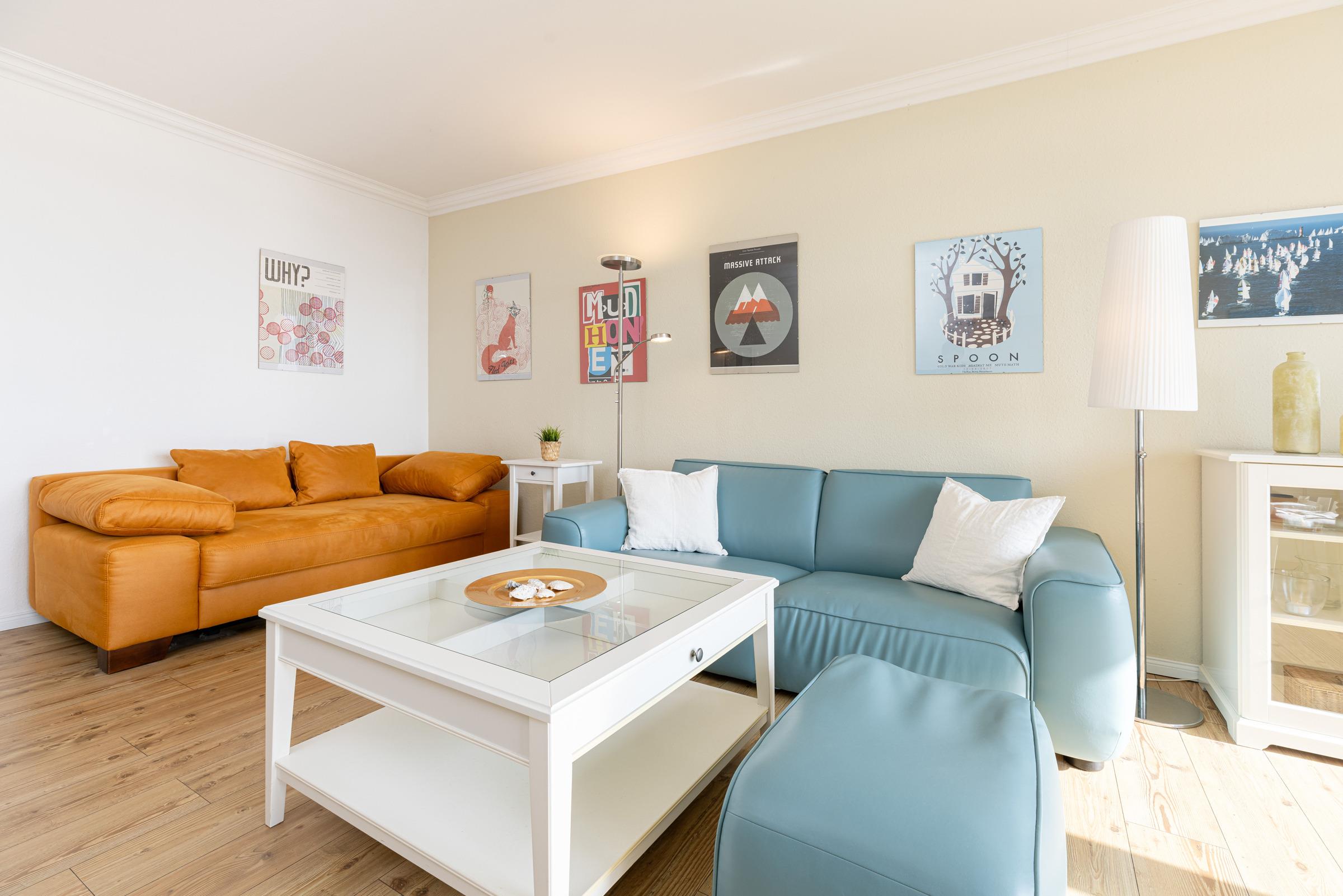 Im kombinierten Wohn-/Schlafraum befindet sich ein Schlafsofa für 2 Personen (140x200 cm), eine Sofaecke mit TV und eine Essecke mit Blick aufs Meer. Am Terrassenfenster als Schiebetür lädt ein 6 m² großer, nach Südwesten ausgerichteter Balkon zum Sonnenbaden oder zum Essen mit Meerblick ein. Ein Flachbildfernseher und ein CD/iPod/mp3-Player mit Radio sind vorhanden. In der Küche befindet sich die übliche Standardausstattung wie Kaffeemaschine, Mikrowelle, Toaster, etc. Im Schlafraum finden Sie ein bequemes Doppelbett (180x200 cm), Kleiderschrank sowie Kommode. Das moderne Bad ist mit einer Dusche, einem Handtuchheizkörper und einem deckenhohen, beleuchteten Wandspiegel ausgestattet. Das Wohn- und Schlafzimmer haben einen Laminatfußboden.