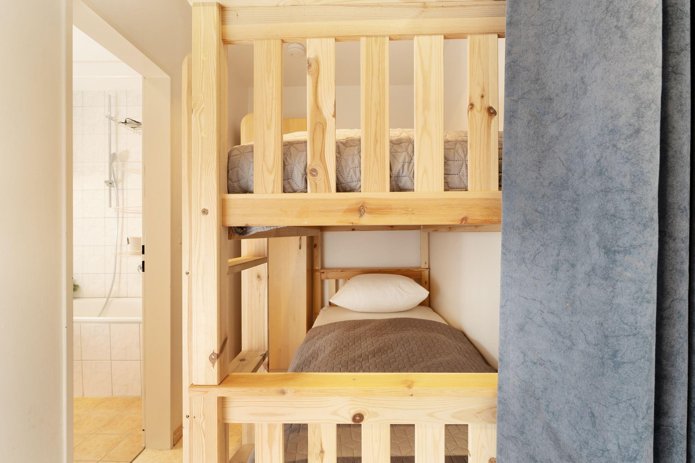 Durchgangszimmer: 1 Etagenbett, Kleiderschrank, Verdunkelungsmöglichkeit: Gardine