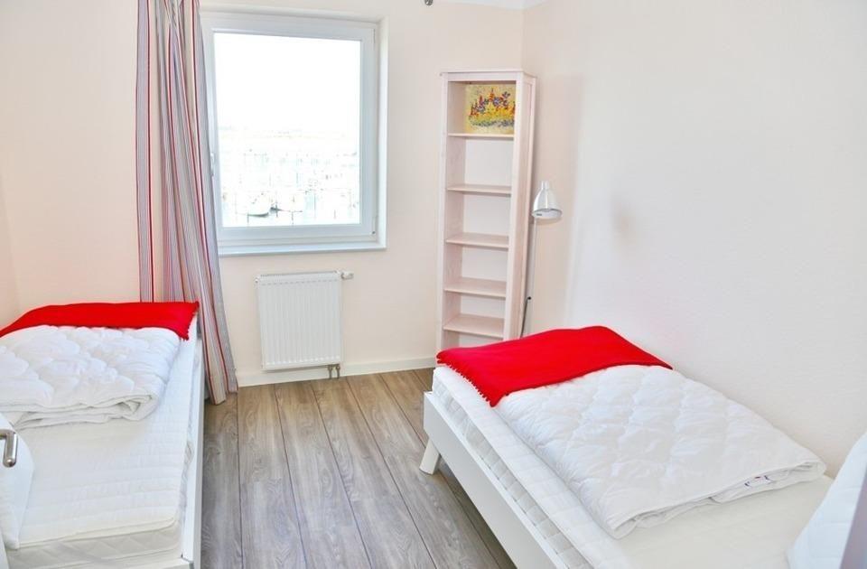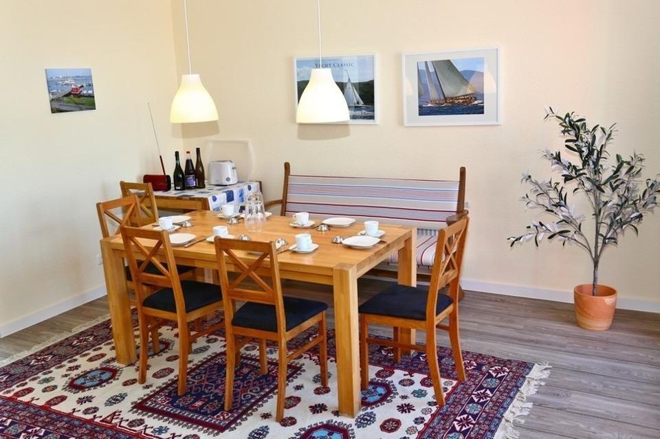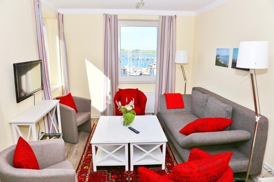 Diese Wohnung ist die größte Wohnung im Rundsteggebäude und lässt sich durch die Wohnung 06 gut ergänzen um von 8 auf 13 Personen zu erweitern. Zwischen beiden Wohnungen gibt es sogar einen separaten Balkon. Die Wohnung verfügt über 3 separate Schlafzimmer mit jeweils 2 Einzelbetten (90x200), die auch zu einem Doppelbett zusammengestellt werden können. Der große Wohnzimmersalon hat neben einer gemütlichen Sofaecke welche zum Schlafsofa 160x200cm umfunktioniert werden kann auch eine große Sitzecke für 8 Personen. Im Objekt befindet sich ein festes w-lan Netzwerk, in der Wohnung ein smart TV. Der Balkon ist zum Hafen ausgerichtet. Von hier kann man nicht nur dem Hafengeschehen zusehen sonder auch wunderbar nach Burgstaaken oder zur Hafeneinfahrt zum Sonnenuntergang schauen. Ein Glas Wein im Sonnenschein - hier wird es wahr. Die kleine Versorgungsbar mit Kühlschrank, Tiefkühlschrank, Mikrowelle, Kochfeld, Kaffeemaschine, Wasserkocher, Eierkocher, Toaster uvm. bietet die Möglichkeit sich schnell etwas zu zaubern. Für größere Essen bietet der Südstrand genügend Restaurationen an. Ein Duschbad ist ebenfalls vorhanden.