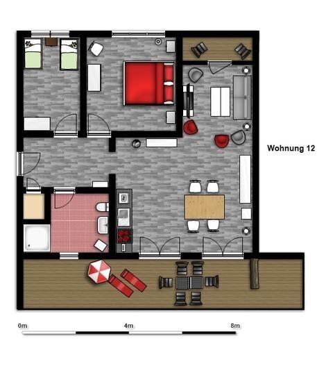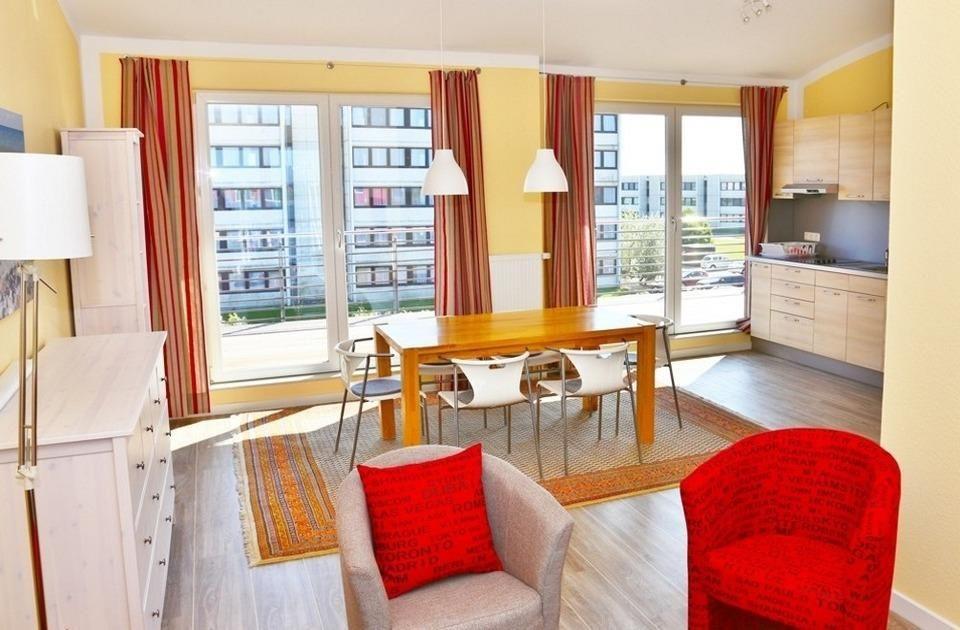 Mit dieser Wohnung mieten Sie eine der größten Wohnungen am Südstrand. Sie ist wie die Wohnung 13 ausgestattet, bieten Ihnen jedoch zusätzlich einen abschließbaren Abstellraum, einen Waschtrockner und einen Geschirrspüler. Mit 80qm, 2 separaten Schlafzimmern, großem Wohnzimmer mit Essbereich, Badezimmer mit Fenster und einer nochmals fast 35qm Dachterrasse ist die Wohnung ideal für Familien. Auch für 2 Pärchen, die gern zusammen Urlaub machen möchten aber doch Ihren Freiraum brauchen, ist die Wohnung ideal. Ein separates Schlafzimmer ist mit Doppelbett (2x90x200cm) und Kleiderschrank ausgestattet. Das zweite separate Schlafzimmer verfügt über 2 Einzelbetten (90x200cm), die aber auch zu einem Doppelbett zusammengeschoben werden können. Beide Schlafzimmer haben den Blick auf den Yachthafen und können den Sonnenauf- und -untergang genießen.Im Objekt befindet sich ein festes w-lan Netzwerk, in der Wohnung ein smart TV. Vom Wohnzimmer können Sie auf den Balkon nach Norden - Hafenseite das Panorama des Hafens genießen. Die südliche Dachterrasse mit über 35qm ist ein besonderes Highlight im Urlaub. Das Sofa kann bequem zu einem Doppelschlafsofa 160x200 verwandelt werden. Der große Esstisch mit Versorgungsbar bietet Ihnen alles was Sie in Ihrem Urlaub benötigen, auch wenn Sie mal nicht Essen gehen möchten. Mikrowelle, Kühlschrank, Cerankochfeld, Mini-Mobilbackofen, Kaffeemaschine, Wasserkocher, Eierkocher, Toaster - alles ist vorhanden.