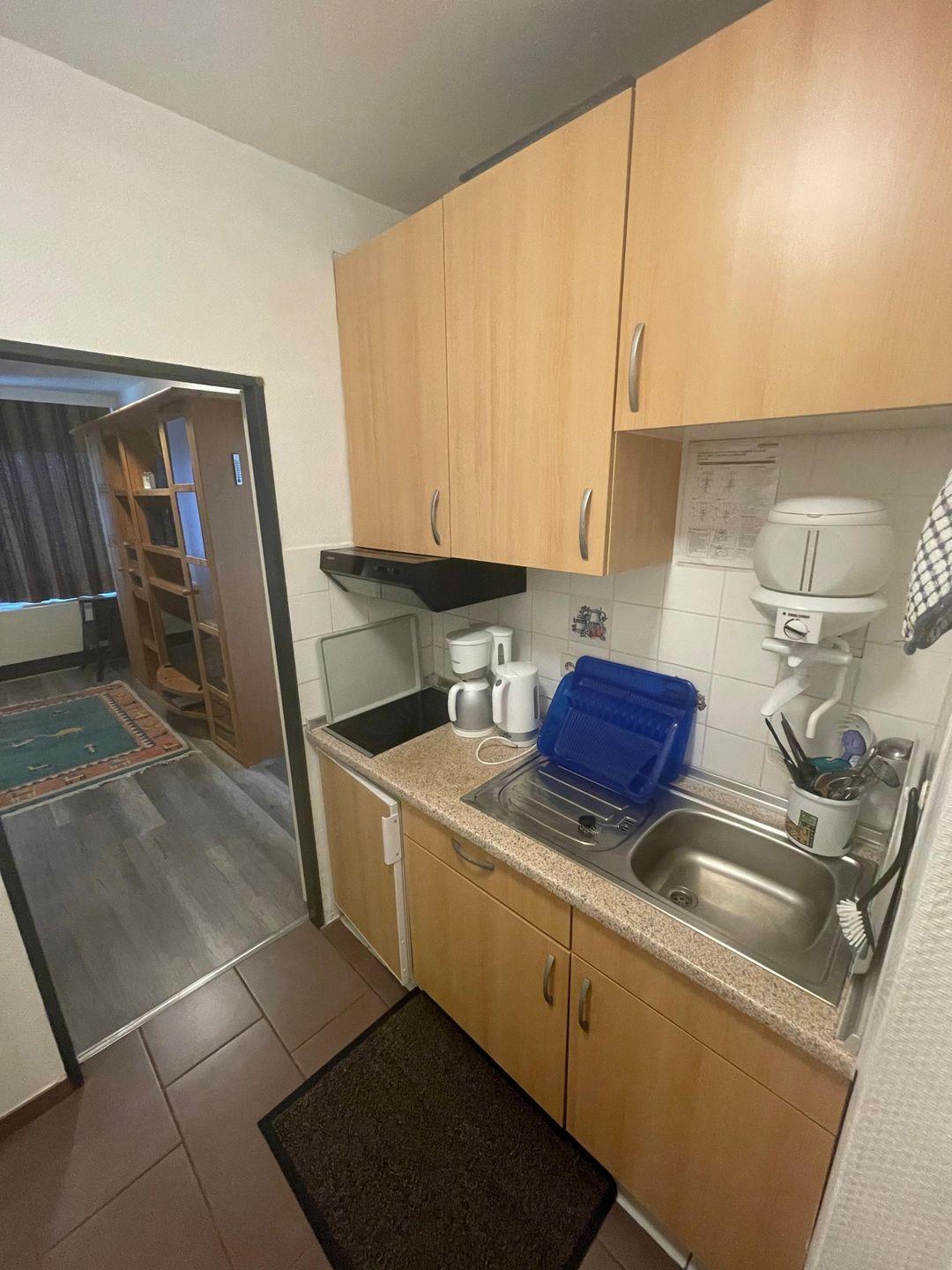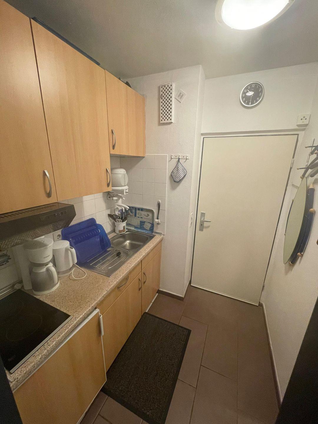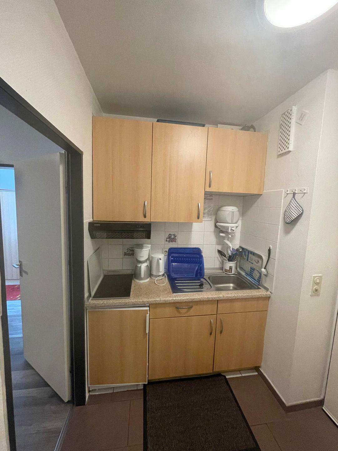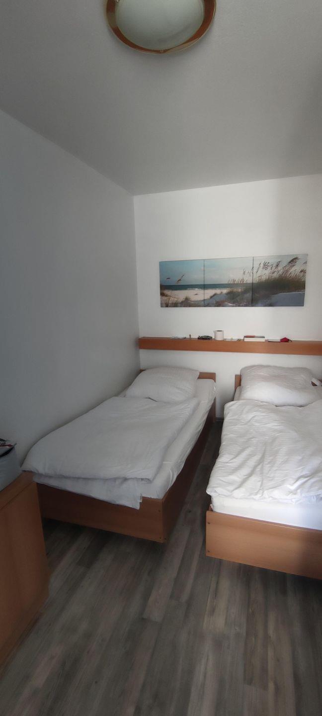 Die gemütliche Ferienwohnung ist komplett eingerichtet. Sie bietet bis zu 3 Personen Platz und verfügt über ein Wohn/Esszimmer mit einer Schlaffcouch , einem Schlafzimmer mit 2 Einzelbetten, die Sie zu einem Doppelbett zusammen schieben können. Das Duschbad ist komplett eingerichtet, ebenso die Küche, Sie finden alle nötigen Küchenutensilien vor.