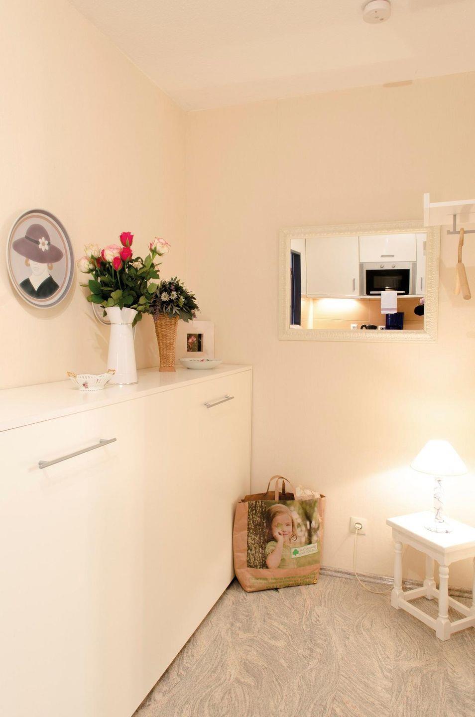 Hier passt alles zusammen, alles ist aufeinander abgestimmt, die Ausstattung ist hochwertig. Die Pantry ist vom Wohn- und Schlafbereich getrennt. Sie ist ausgestattet mit einer Mikrowelle, Kühlschrank mit Gefrierfach. Das hell geflieste Bad mit Dusche und WC runden die Ferienwohnung ab. Ihren PKW können Sie direkt vorm Haus parken.