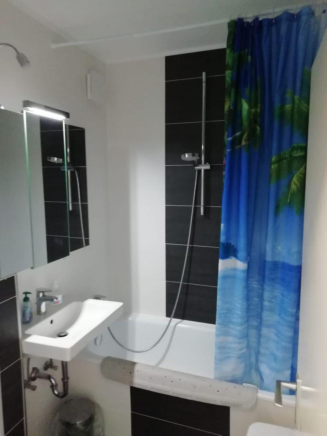 Die Wohnung bietet Platz für zwei Erwachsene und zwei Kinder, mit zwei Doppelbetten, eins im Wohn/Schlafzimmer und eins im durch eine Tür trennbaren Nebenraum.