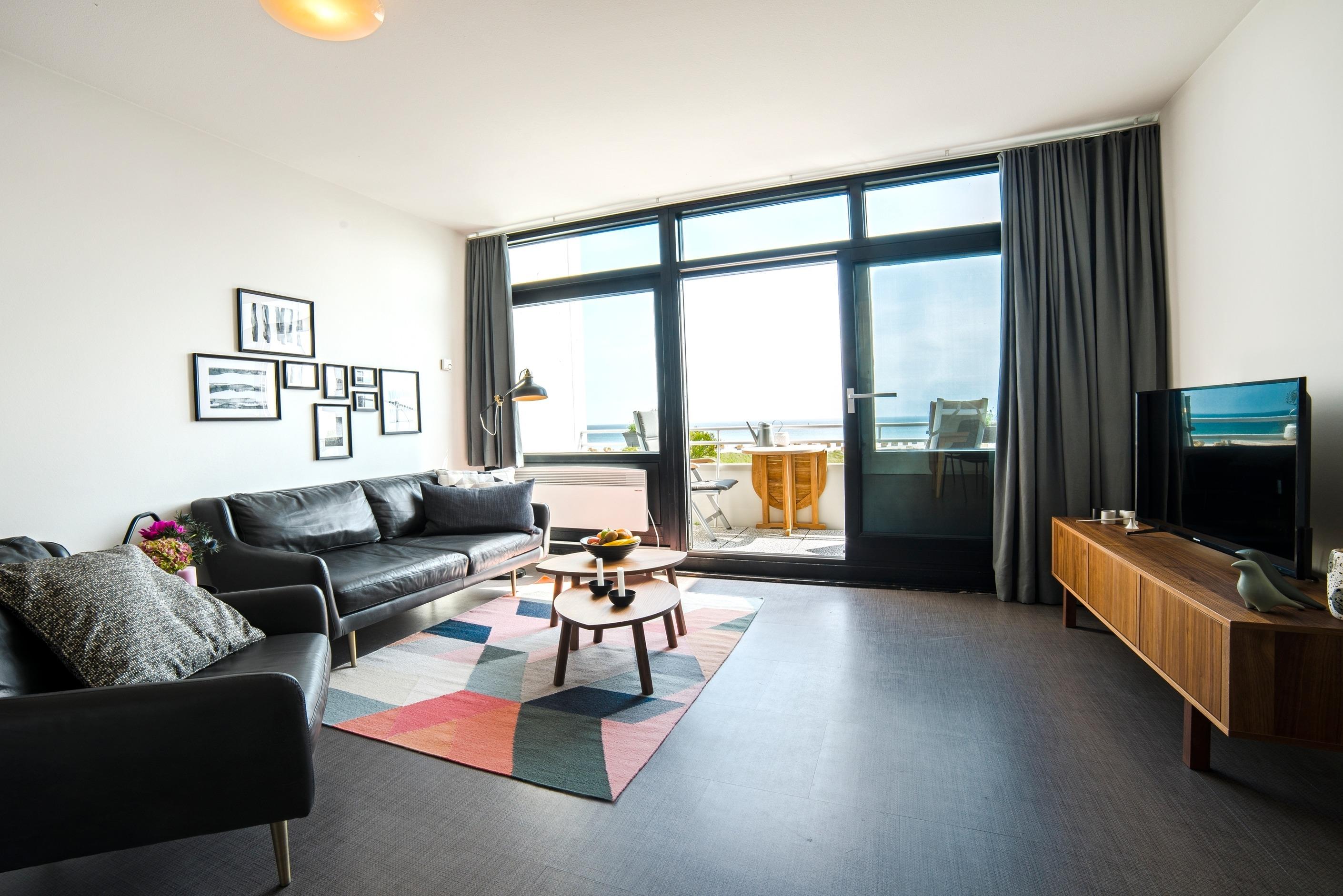 Unsere Ferienwohnung Strandhafer in Burgtiefe ist direkt am Südstrand Fehmarns und hat einen tollen Panorama-Blick auf die Ostsee.