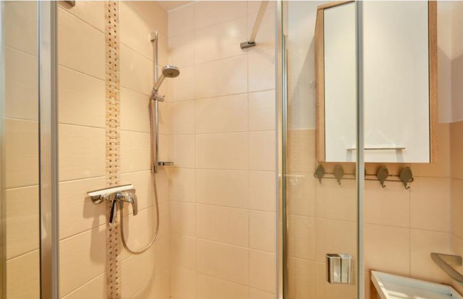 Die Wohnung verfügt über eine Doppelschlafcouch, ein Etagenbett, ein Duschbad und eine Pantryküche.