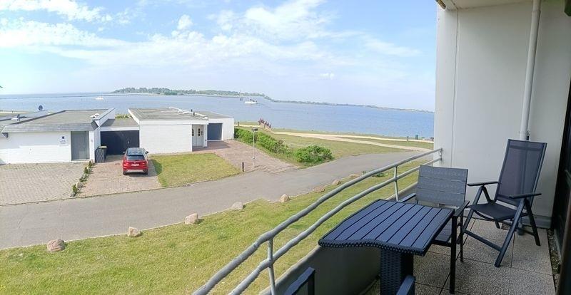 Vom Balkon mit Gartenmöbeln haben sie einen herrlichen Ostseeblick.
