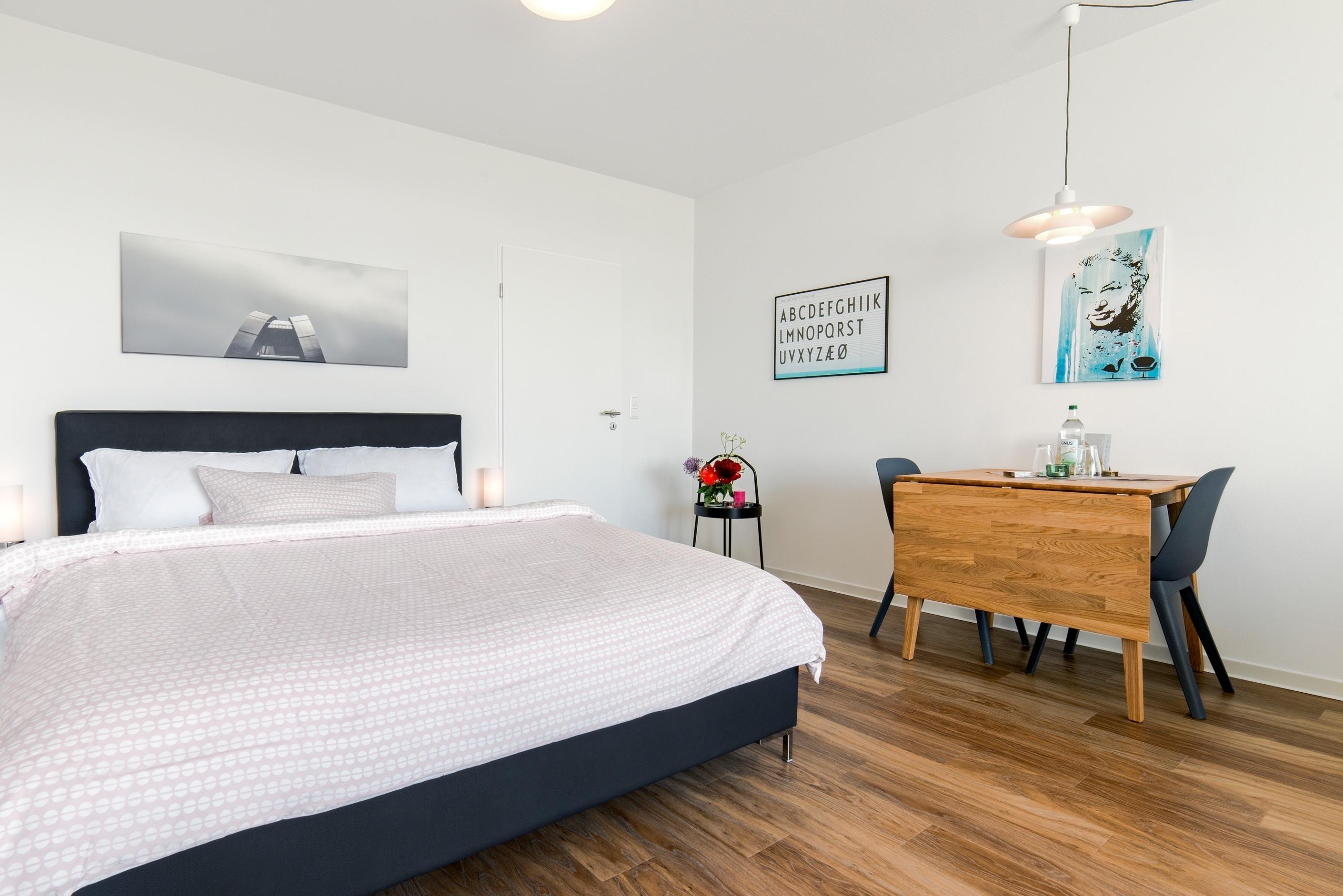 Kombinierter Wohn-Schlafraum mit einem Doppelbett