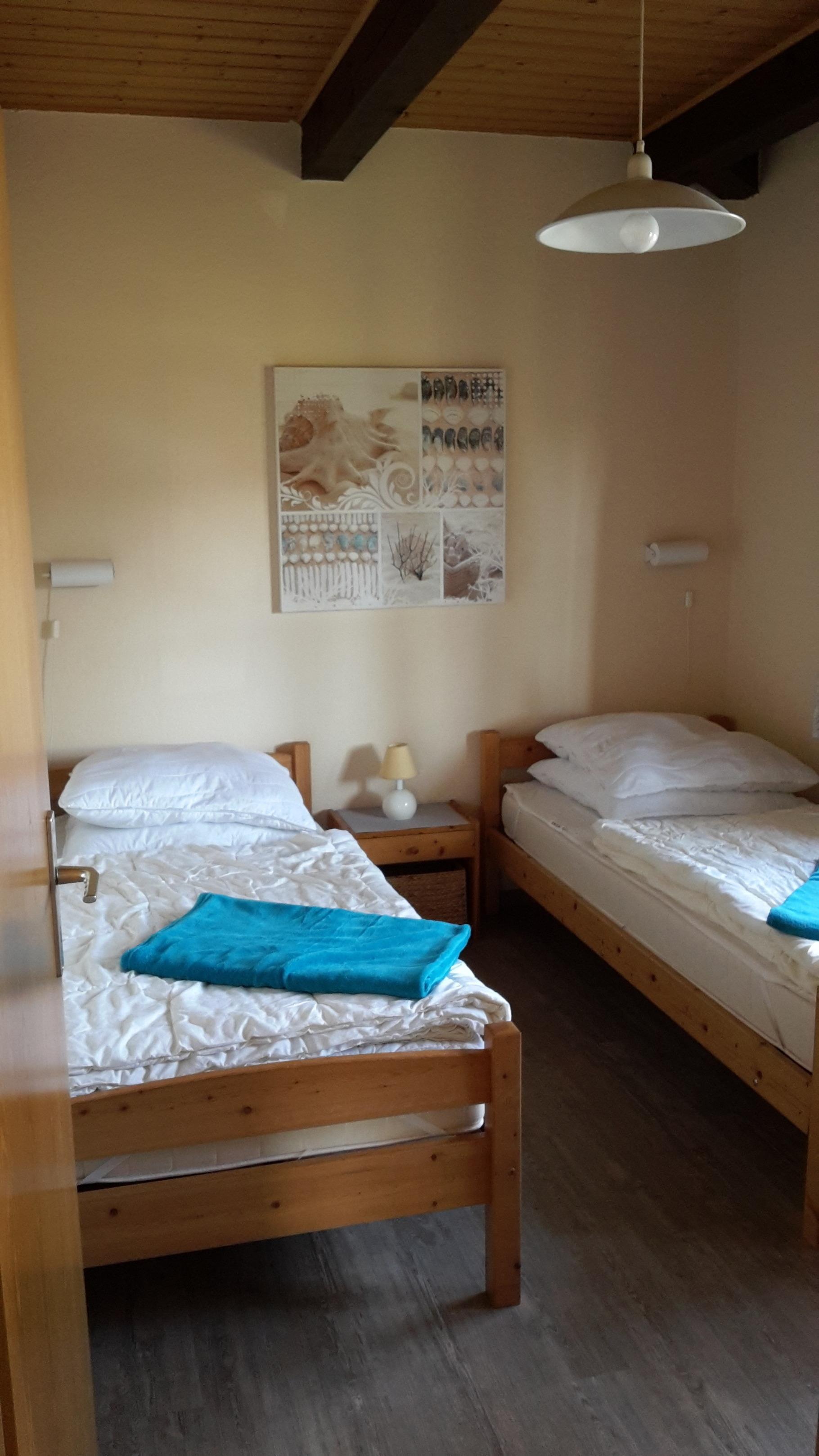 Die Wohnung ist liebevoll im maritimen Stil eingerichtet mit einem Wohn u. Essbereich mit neuem komfortablen Schlafsofa. Aus diesem sich eine 160m breite auf Lattenrost gelagerte Kaltschaummatratze herausfaltet. Im separaten Kinderzimmer befinden sich 2 Einzelbetten (auch zusammen stellbar). Anstelle der Komode können Sie gerne ein mitgebrachtes Babyreisebett aufstellen, für ein weiteres Kind. Die Ferienwohnung bieten wir nur als bedingt allergikergerecht an. Wir haben keine Federbettdecken, Pflegeleichte Böden und Fliesen.