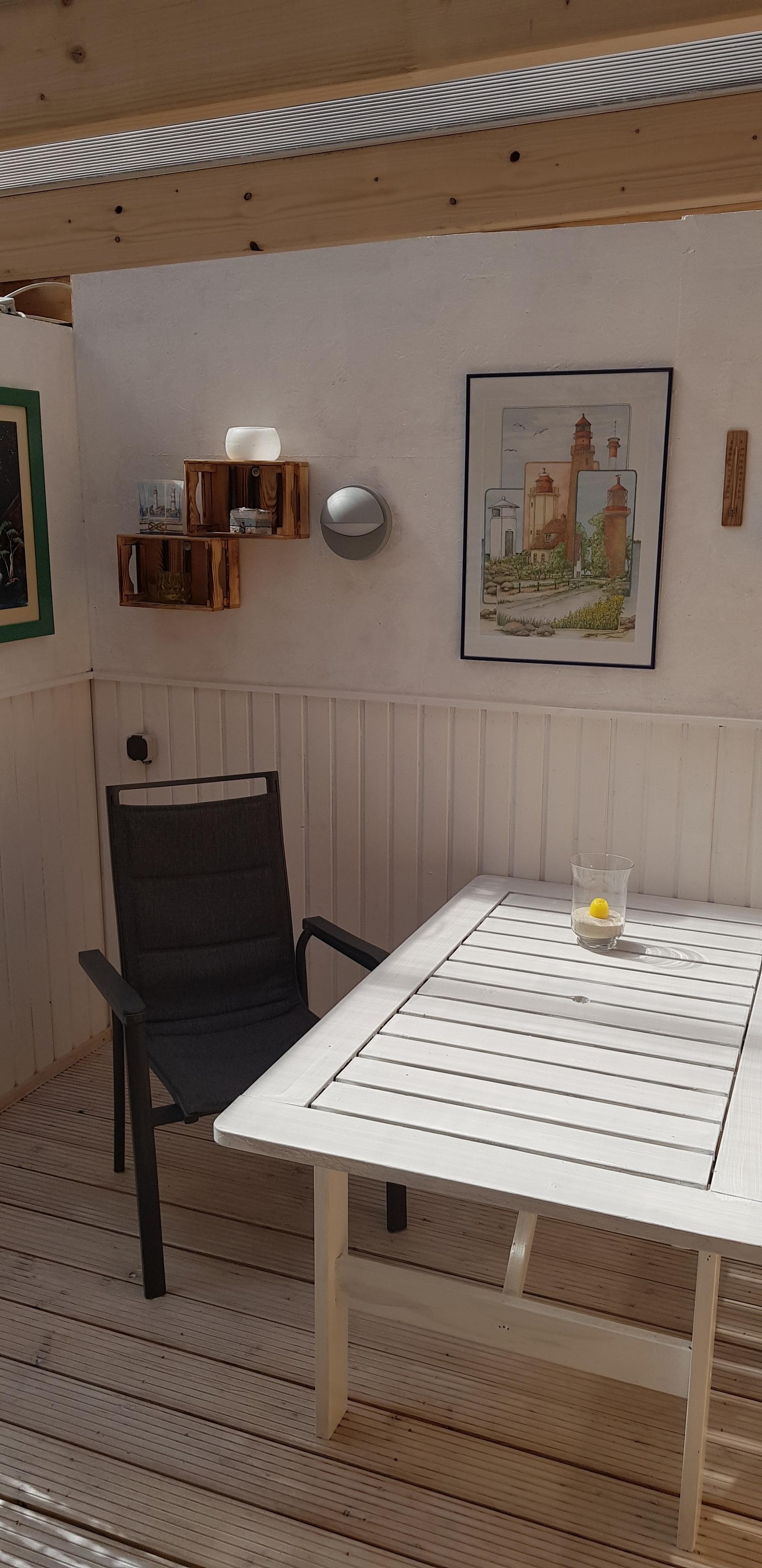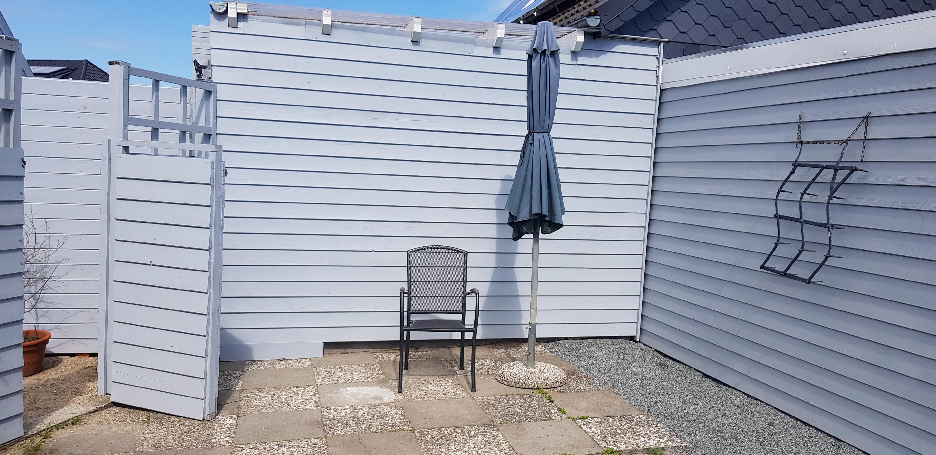Kleine, aber feine Ferienwohnung mit eigenem Eingang, eingezäuntem Grundstück, überdachter Terrasse, Gartenlaube und Blick auf die Fehmarnsundbrücke.