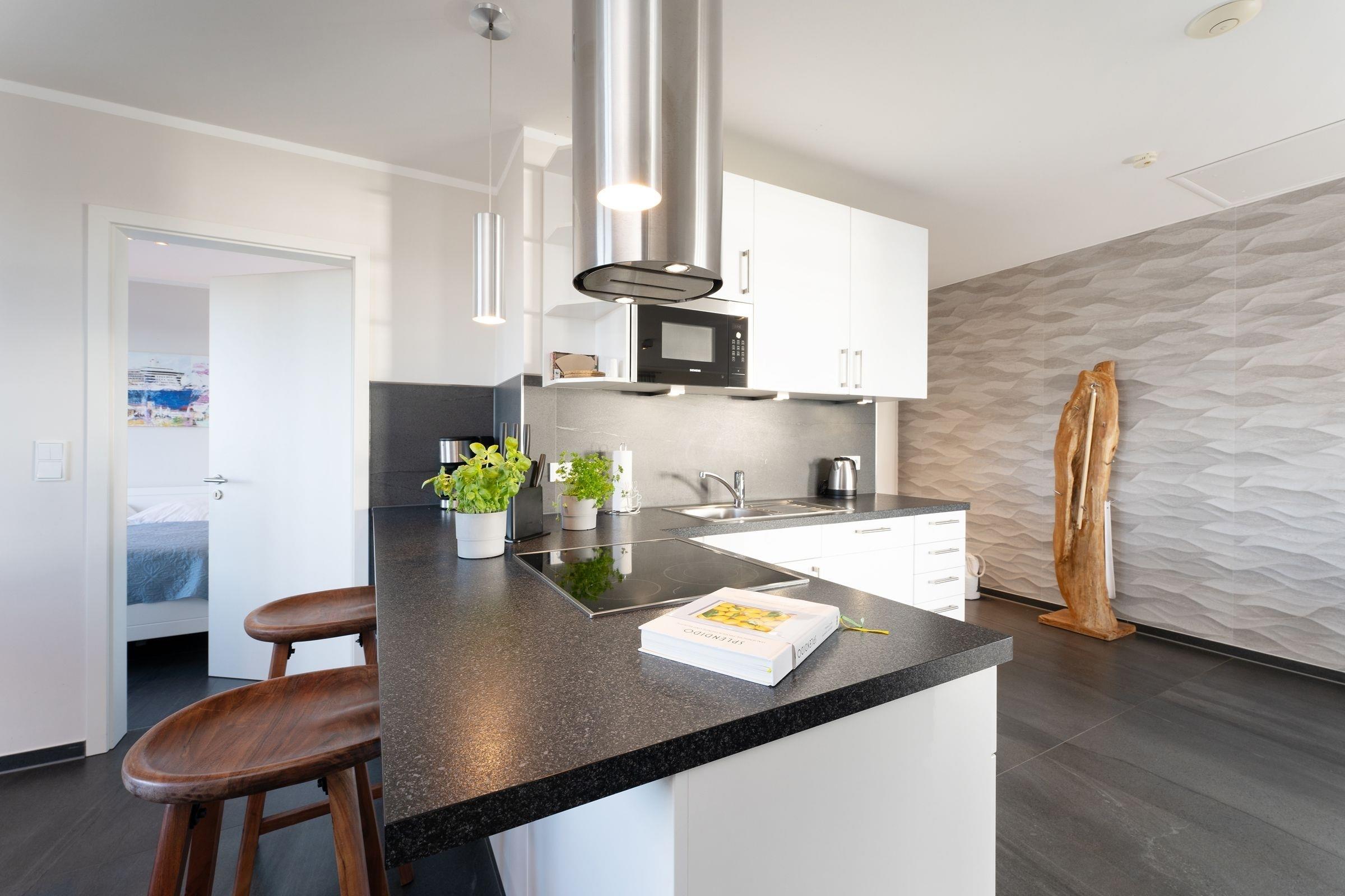 Nur rund 30 Meter vom Strand entfernt befindet sich diese traumhafte Wohnung. Lichtdurchflutete Fenster mit Blick auf die Ostsee und eine moderne, offene und sehr gut ausgestattete Küche mit angrenzendem Ess- und Wohnbereich laden Sie zum Entspannen ein. Für die Nacht stehen Ihnen zwei Schlafzimmer mit jeweils einem Doppelbetten und einem TV-Gerät zur Verfügung. Das hochwertige tageslichthelle Badezimmer punktet mit einer bodengleichen Dusche. Zusätzlich gibt es ein Gäste-WC. Die Wohnung ist komplett gefliest und mit einer Fußbodenheizung ausgestattet. Das Highlight der Wohnung ist sicher die ca. 35 m² große Dachterrasse mit Panorama-Meerblick und eigenem Strandkorb. Von hier können Sie sowohl den Sonnenaufgang als auch den Sonnenuntergang beobachten. Sonne pur - den ganzen Tag!