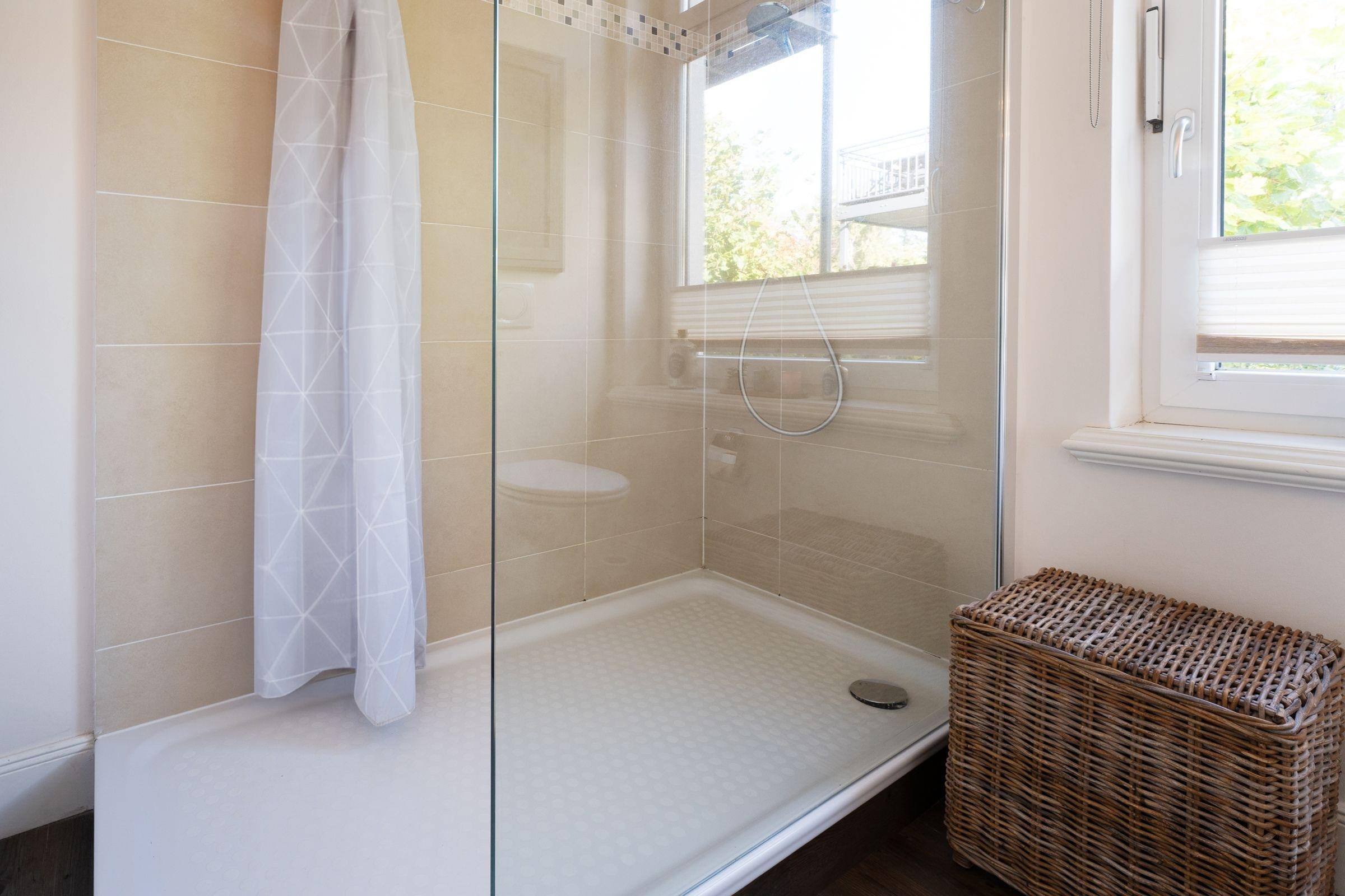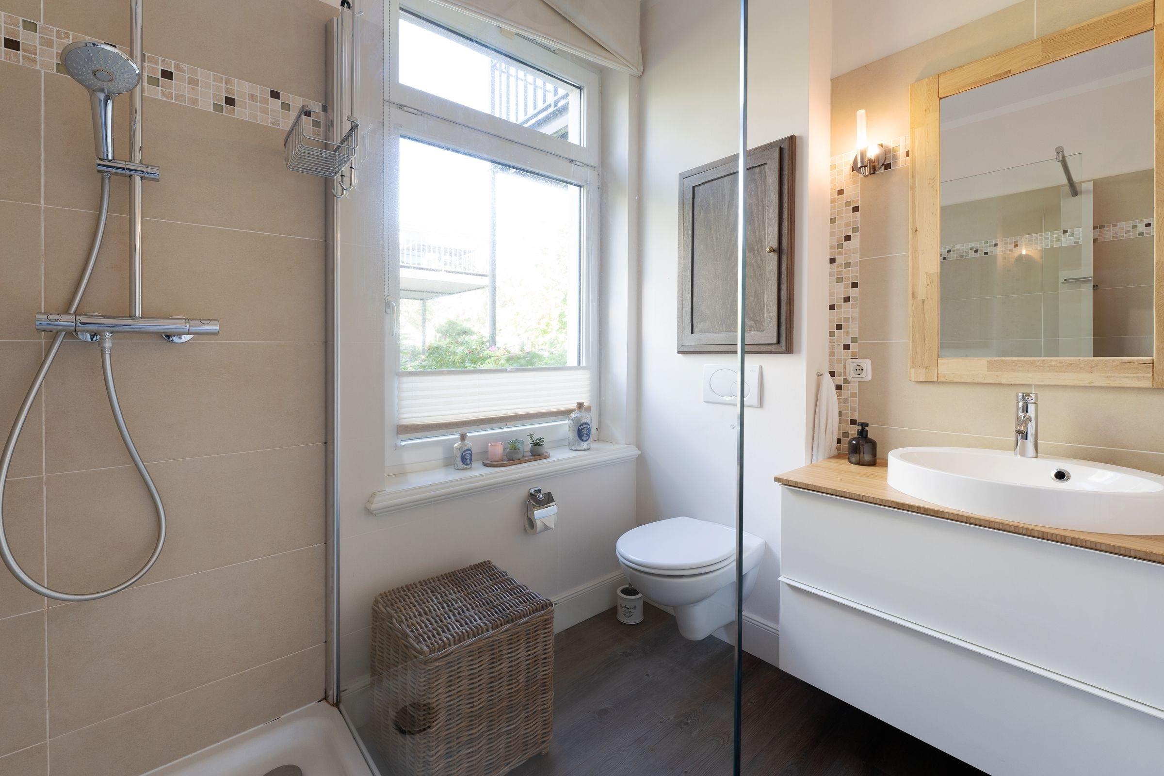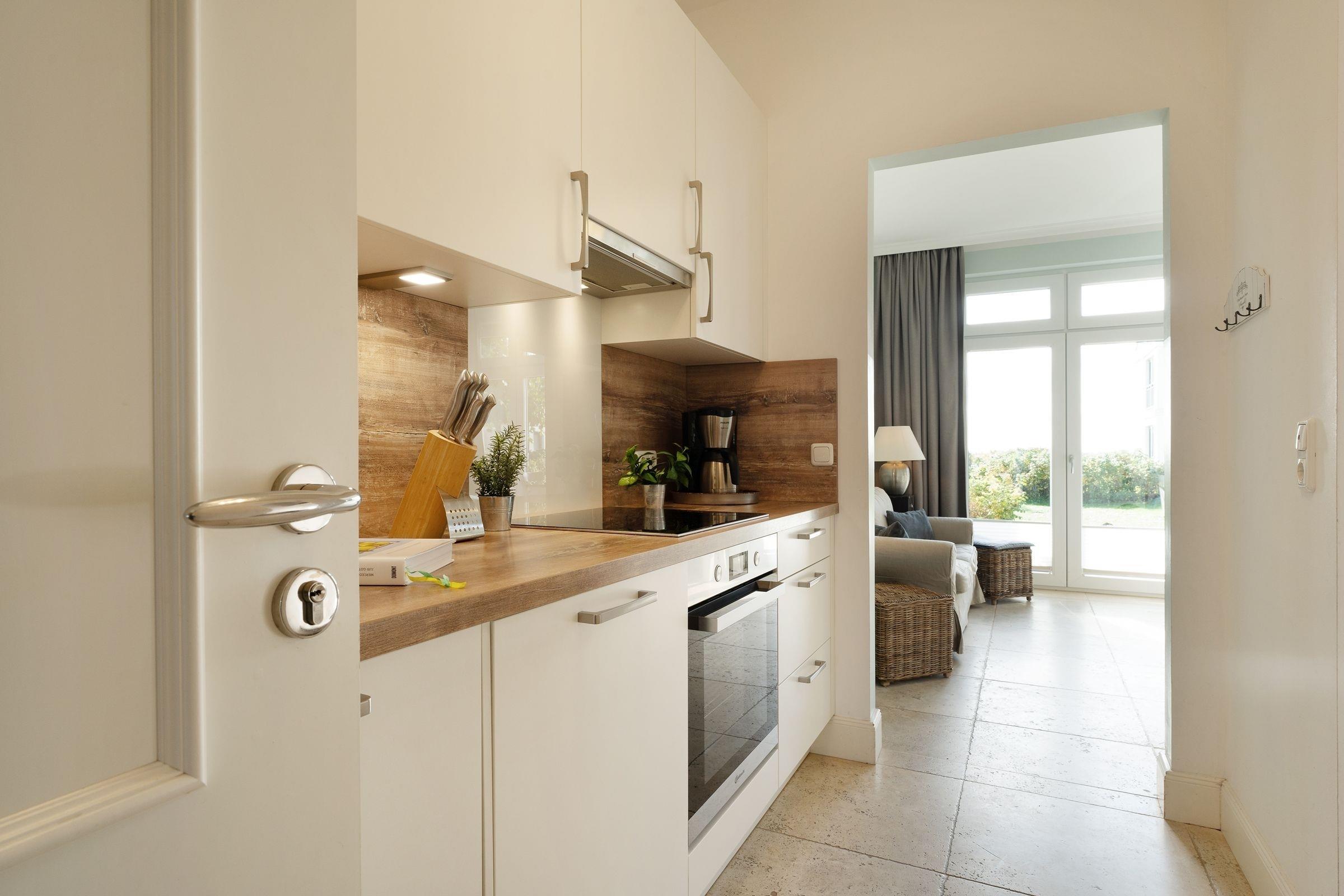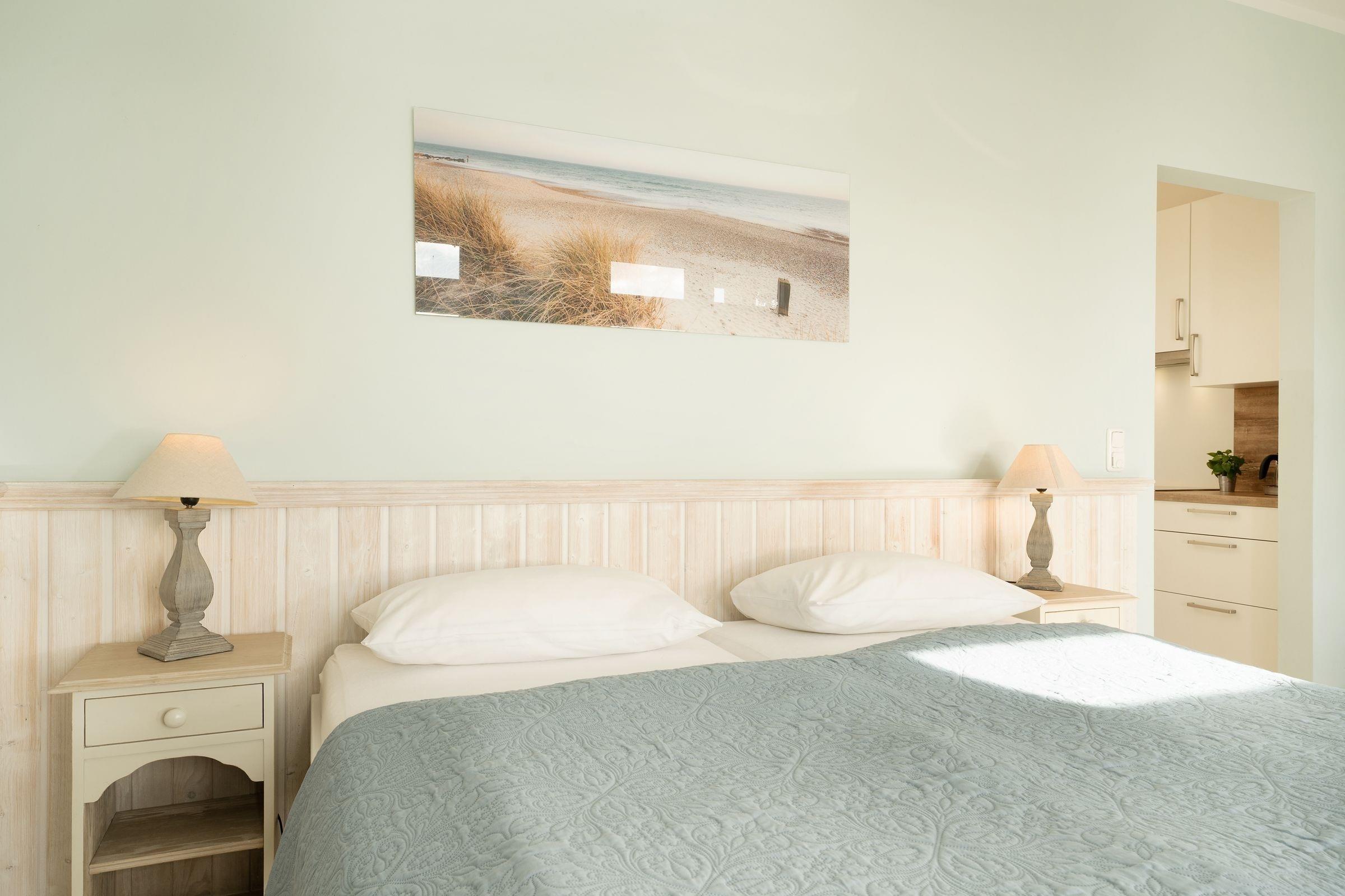 Das modern ausgestattete Appartement mit herrlichem Meerblick verfügt über alles, was Sie für einen erholsamen Urlaub an der Ostsee benötigen. Das Appartement besteht aus einem kombinierten Wohn-Schlafbereich mit Doppelbett, Couch und Esstisch. Im Eingangsbereich befindet sich eine moderne, sehr gut ausgestattete Einbauküche und eine Garderobe. Das Badezimmer punktet mit einer XL-Dusche. Hinzu kommt eine geräumige möblierte Terrasse mit einem schönen Ostseestrandkorb. Sie ist nach Süden und Westen ausgerichtet und geht direkt in den Garten über, ideal für das morgendliche Frühstück. Als besonderes Highlight steht Ihnen eine moderne Premium-Einbausauna zu Verfügung. Diese ist im Vorflurbereich der Appartements I und IA untergebracht - daher ist eine Absprache mit den Mietern des App. I notwendig, um zeitliche Überschneidungen zu verhindern.