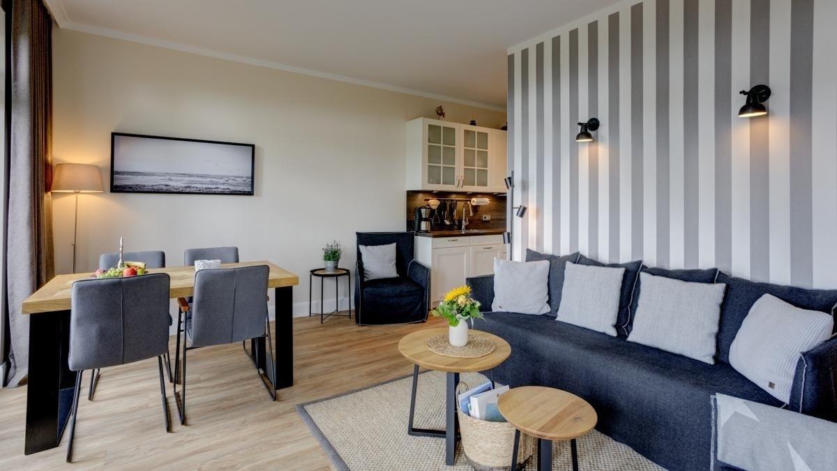 Diese exklusive, ca. 76 m² große 3-Zimmer-Ferienwohnung im Erdgeschoss mit Terrasse für bis zu 4 Personen befindet sich in bester Lage auf Fehmarn im Ortsteil Fehmarnsund.