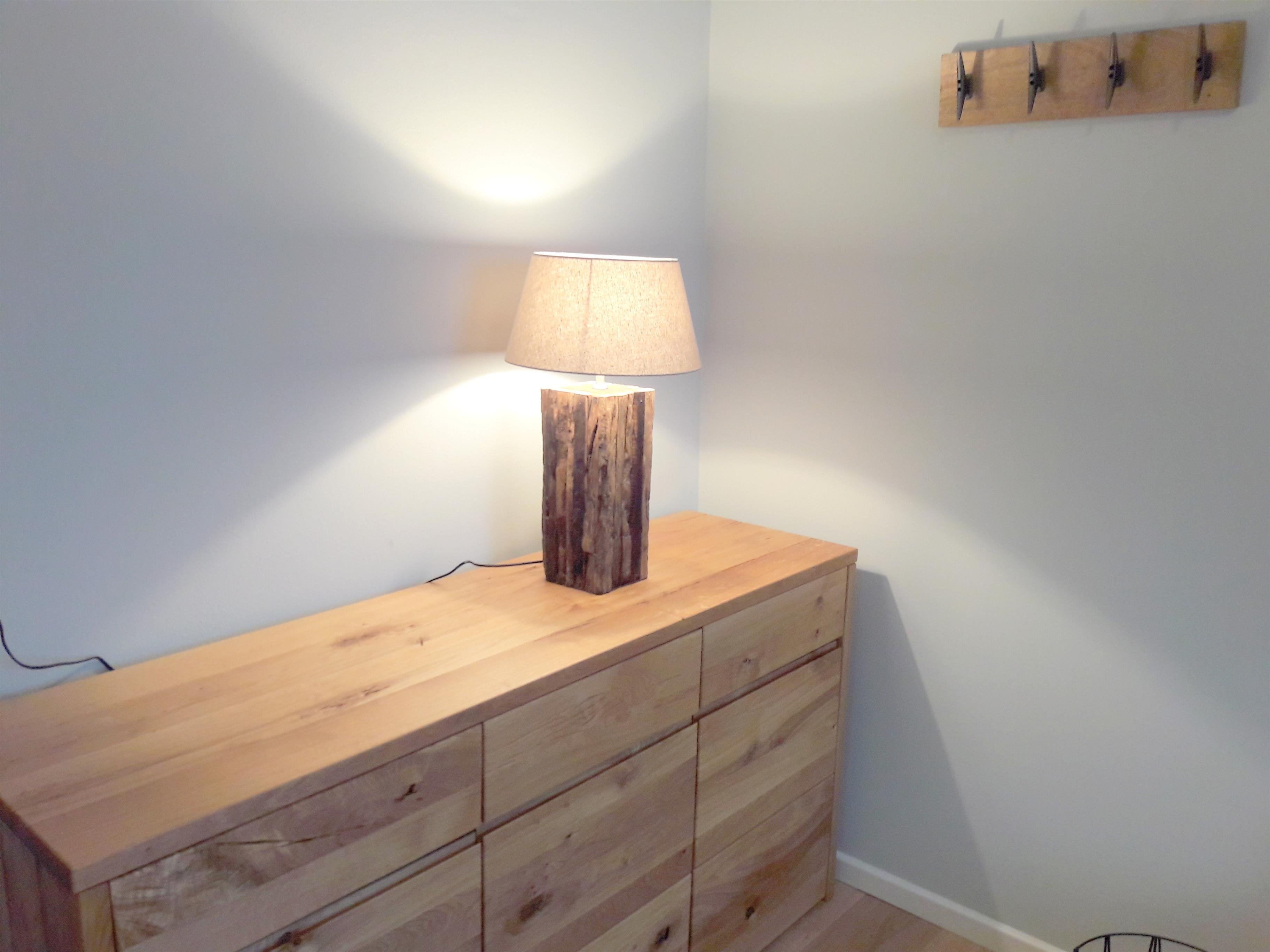 Im Obergeschoss befinden sich die voll eingerichtete Küchenzeile mit Ceran-Kochfeld, Backofen und Geschirrspüler sowie ein amerikanischer Kühlschrank mit Eiswürfelbereiter und Wasserspender. Von der gemütlichen Sitzecke aus haben Sie einen tollen Panoramablick auf Dünen, Meer und Fehmarnsundbrücke.