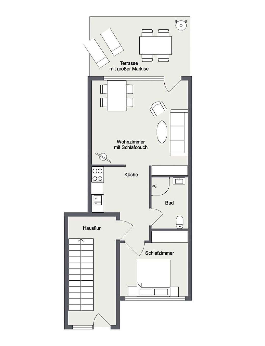 Die Wohnung "Südwind" befindet sich im Ferienhaus Rücker und liegt sehr ruhig in dem kleinen Ort Gold auf Fehmarn direkt an der Ostsee. Die Wohnung hat eine Größe von 45 qm und eignet sich für maximal 4 Personen. Sie ist unterteilt in einen Wohnraum mit Essbereich und moderner Küchenzeile, einem Schlafzimmer mit Doppelbett und großem Kleiderschrank und einem Duschbad. Eine weitere Schlafmöglichkeit befindet sich in Form einer modernen Schlafcouch im Wohnzimmer. Die Südterrasse ist mit Gartenmöbeln, Liegen und einem Grill ausgestattet.