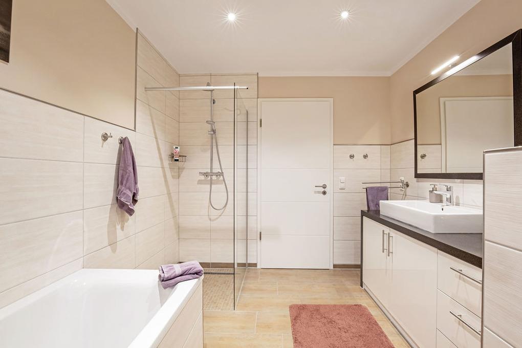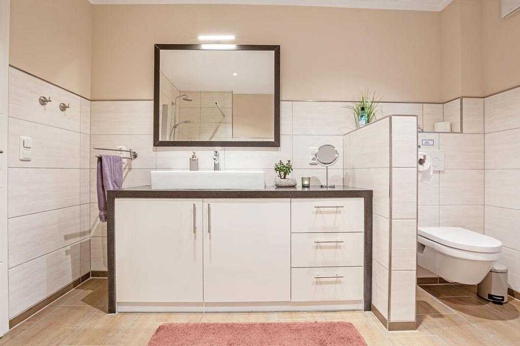 • 1 Wellnessbad mit Sauna, Wellnessliegen, große ebenerdiger Dusche, Whirlpool