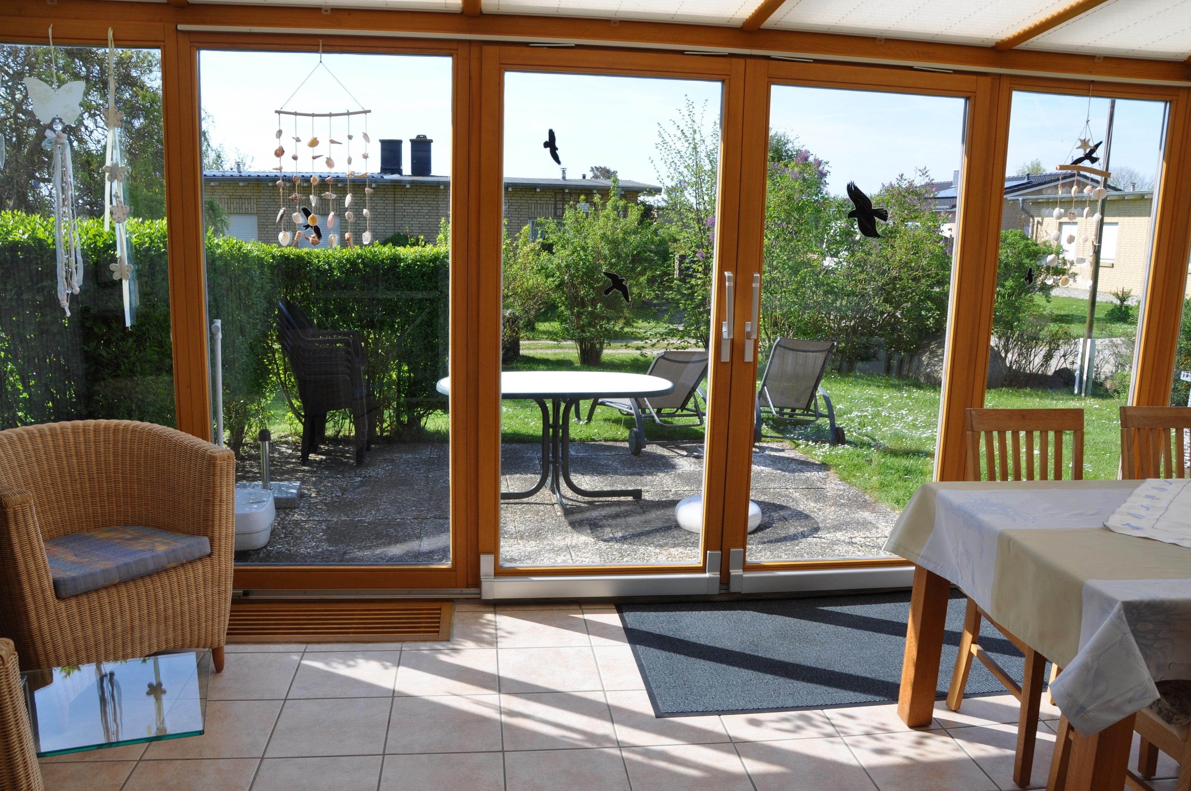 Im geräumigen Wintergarten befindet sich ein Essplatz, der zum Verweilen einlädt.