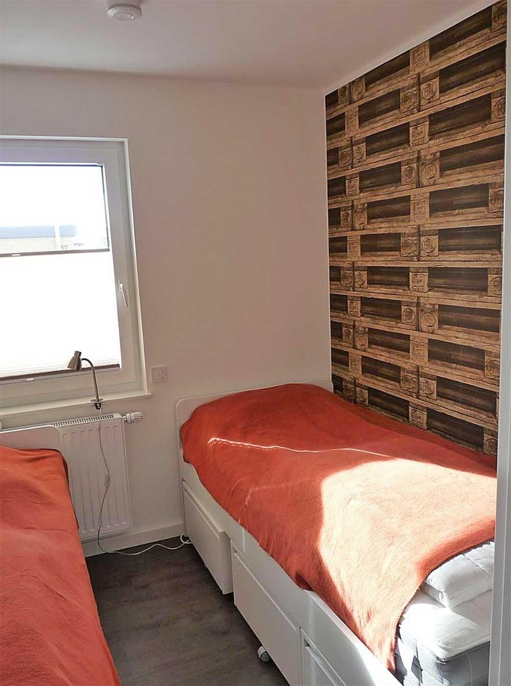 Ein weiteres, kleineres, Schlafzimmer für die Kinder oder zwei weitere Erwachsene ist vorhanden, denn es gibt normal große Betten. (jeweils 90x200)