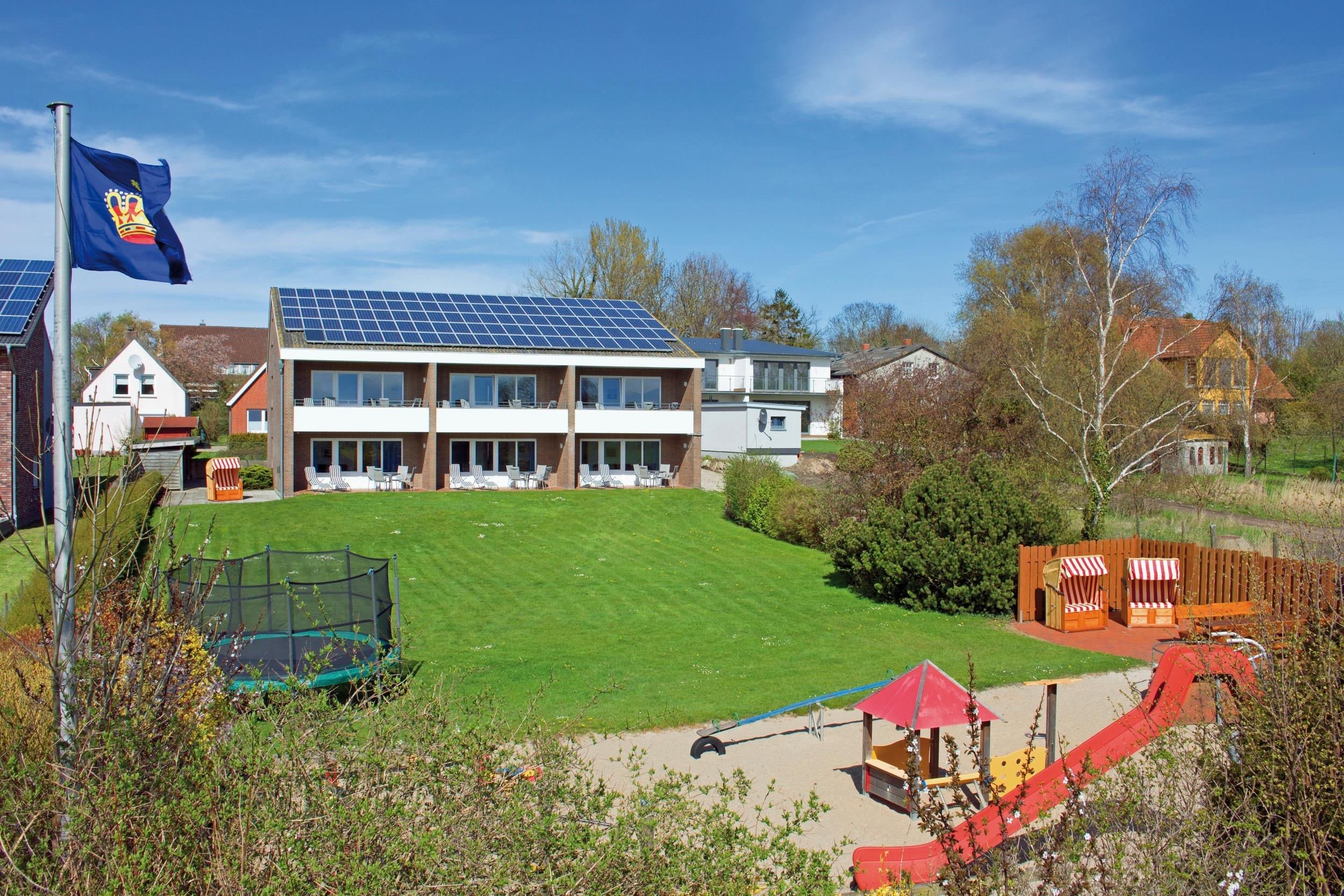 Viel Freiraum zum Spielen ist auf der Wiese am Haus mit dem großzügig angelegten Spielplatz.