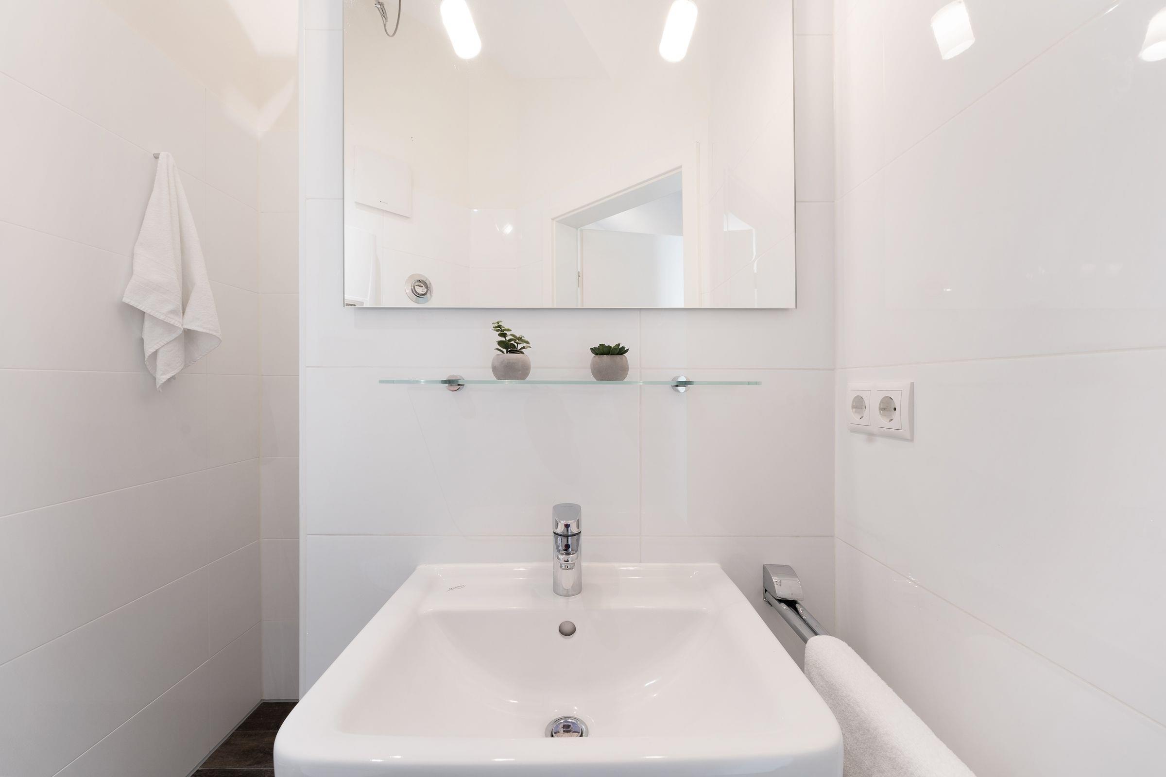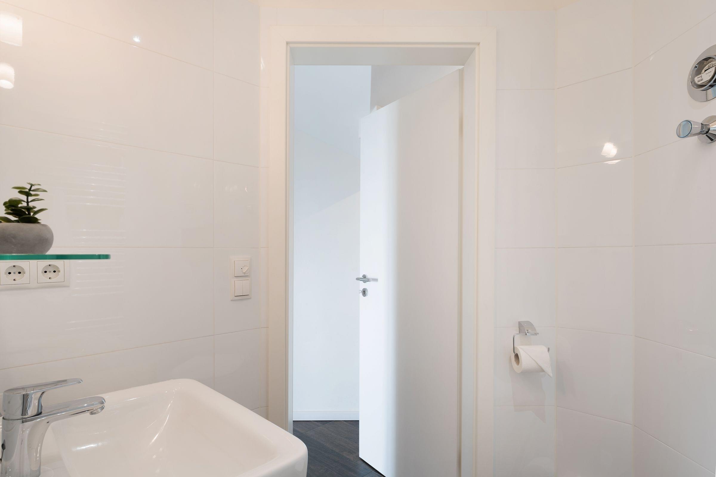 Vom Balkon in Südwestlage und auch von der Wohnung aus genießen Sie den fantastischen Blick auf den Burger Binnensee, Hafen Burgstaaken und die Fehmarnsundbrücke. Die Wohnung ist hochwertig mit Fußbodenheizung und elektrischen Rollläden ausgestattet und die Fläche wurde ideal genutzt, sodass Sie Ihren Urlaub an der Ostsee wunderbar genießen können. Das gemütliche Wohnzimmer verfügt über eine Sofaecke mit TV-Gerät und einer Essecke am Fenster. Der offene Küchenbereich ist hochwertig und modern und bietet viele Extras. Im separaten Schlafzimmer steht ein bequemes Doppelbett (180x200 cm), das bodentiefe Fenster ist mit einem Insektenschutzgitter versehen. Das Duschbad ist hell gefliest und hat einen Handtuchwärmer.