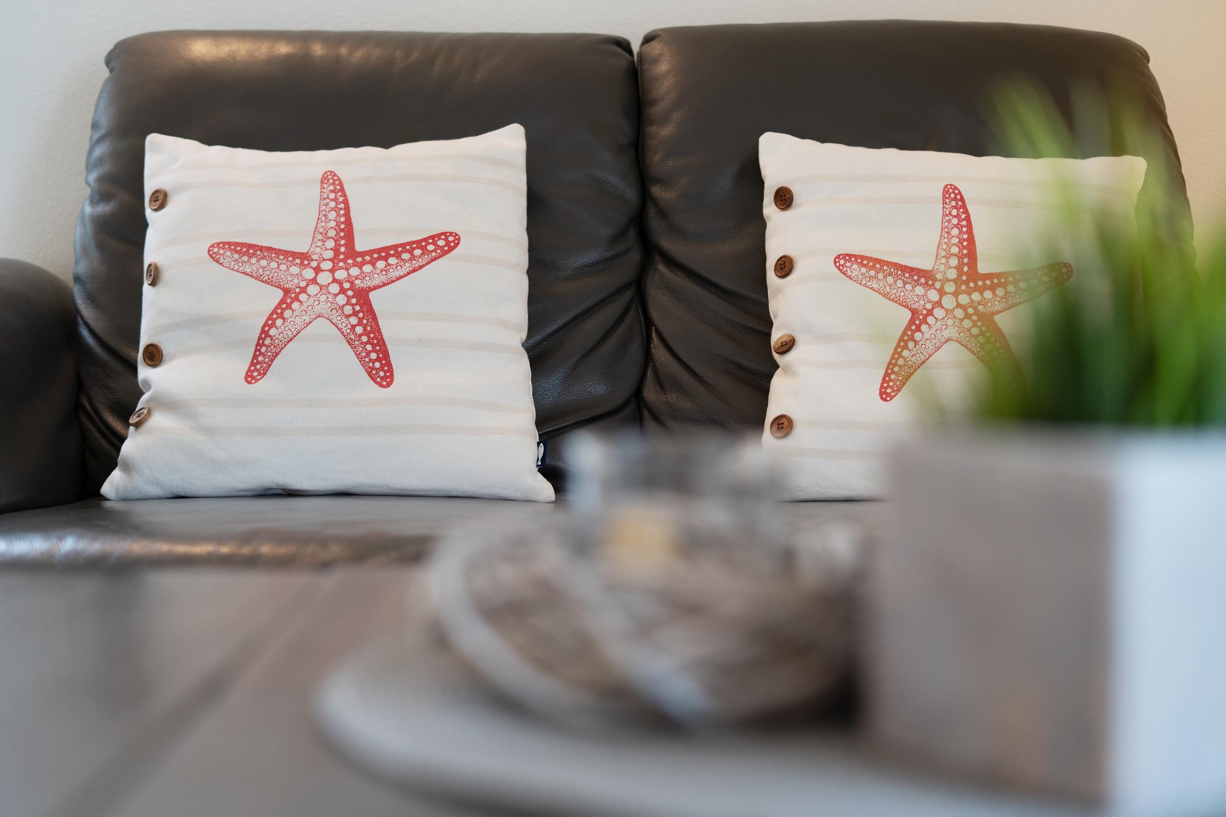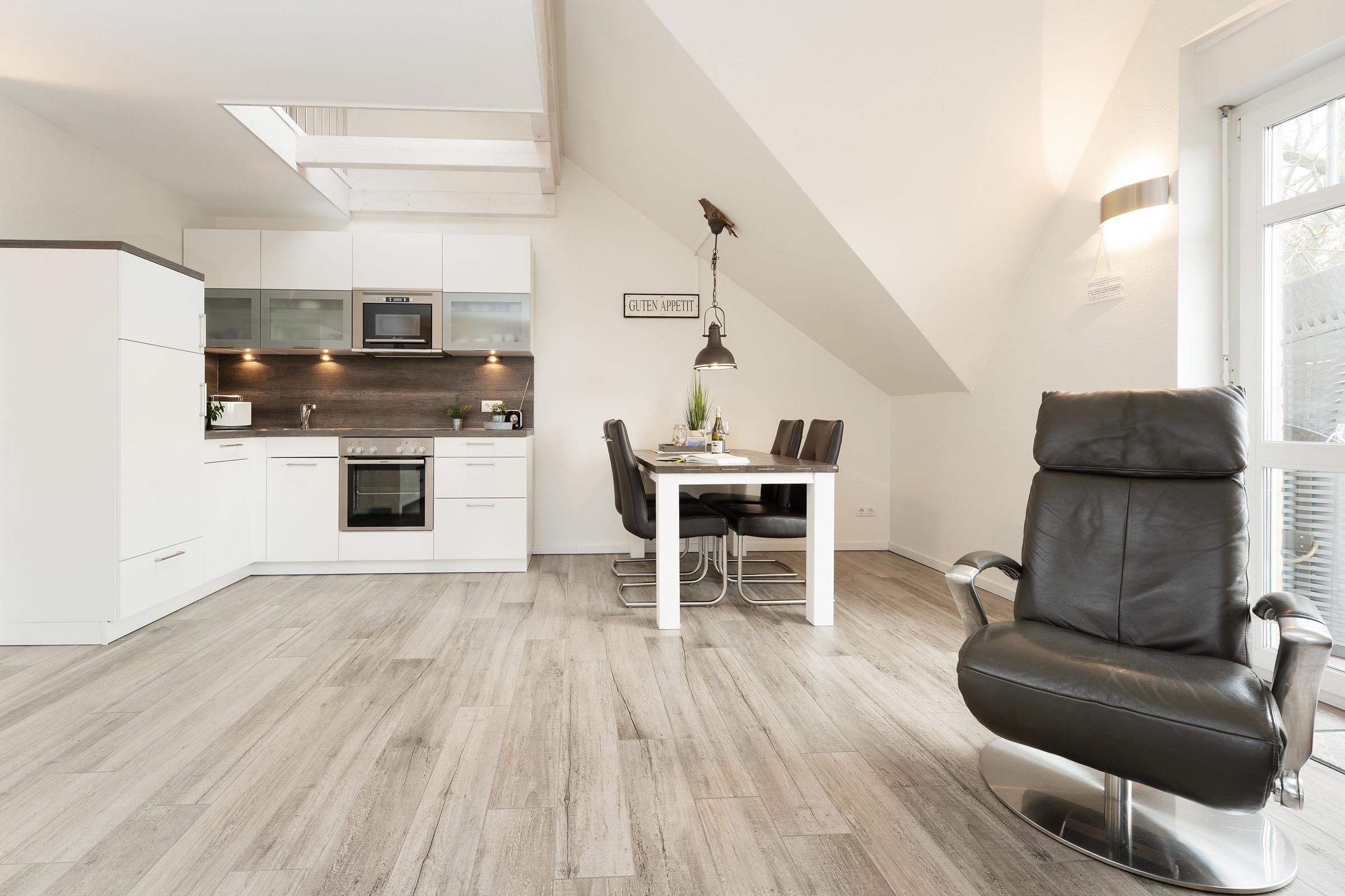 Die Wohnung Fehmarn-Brise werden Sie lieben: Sie besticht durch ihre zentrale Lage und die fantastische Aussicht. Genießen Sie im Strandkorb auf dem sonnigen Südbalkon den Blick auf die Ostsee oder lassen Sie sich in den Abendstunden vom Sonnenuntergang verzaubern. Der große Wohn-Essbereich, möbliert im modernen, hellen Landhausstil, ist der Treffpunkt zum Kochen, Klönen, Spielen oder Ausruhen. Auch finden Sie hier den Zugang zum Balkon. Gleichzeitig lädt das gemütliche Ledersofa und der Relax-Sessel zum Fernsehen und Entspannen ein. Die gut ausgestattete Wohnküche hat alles, worauf man auch im Urlaub nicht verzichten möchte: Geschirrspüler, Herd, Backofen, Mikrowelle, Kühlschrank, Kaffeemaschine etc. und wird durch den großen Esstisch komplettiert. Das geräumige Schlafzimmer mit Boxspringbett (180x200 cm), Flachbildfernseher, großen Kleiderschränken und Kommode bietet Platz für ein Baby-Reisebett. Das Bad mit ebenerdiger Dusche rundet diese charmante Wohnung ab. Tipp: In wenigen Fahrrad-Minuten erreichen Sie von hier aus den Südstrand, den Hafen und das Stadtzentrum.