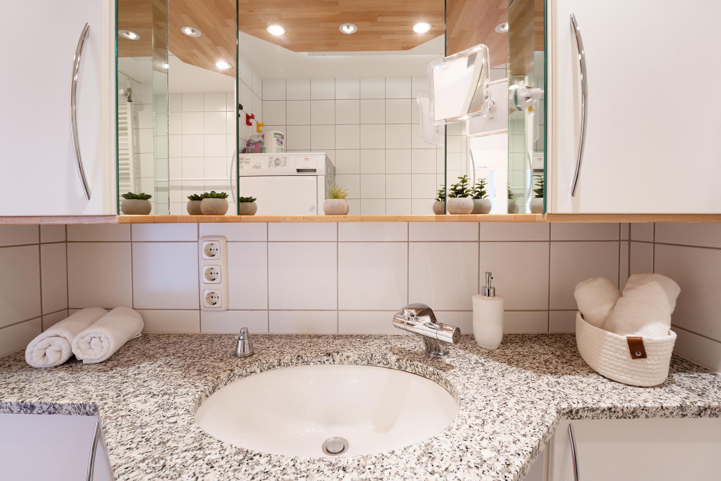 Ein PKW-Außenstellplatz ist für Sie reserviert. Für Ihre mitgebrachten Fahrräder steht ein Fahrradabstellplatz zur Verfügung. Zum Waschen Ihrer Urlaubsgarderobe können Sie die Waschmaschine sowie den Wäschetrockner nutzen. WLAN ist inklusive.