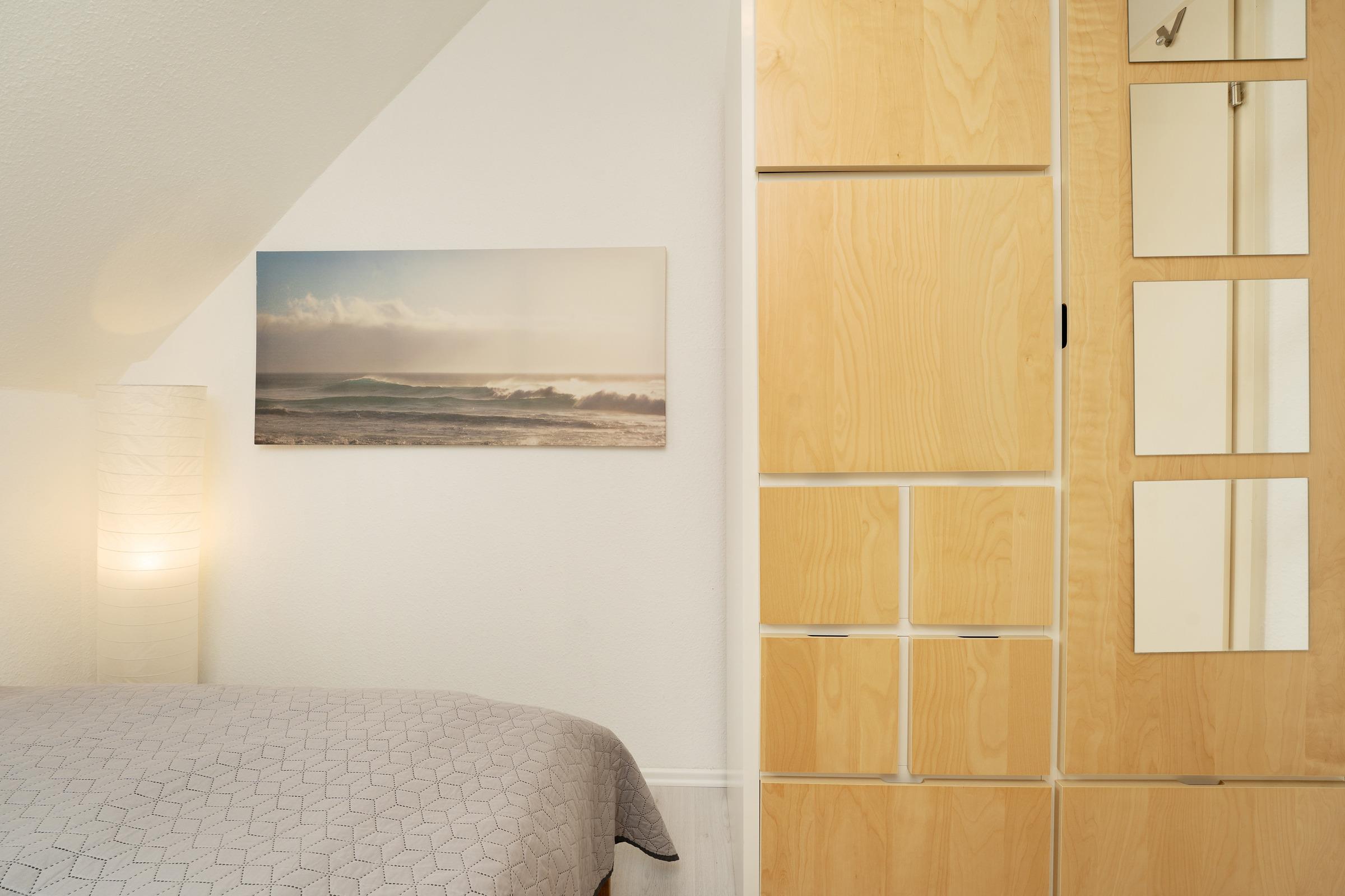 Schlafzimmer 1: Doppelbett (140x200cm), 2 Kleiderschränke, Verdunkelungsmöglichkeit Rollo, kein Platz für Babybett vorhanden
