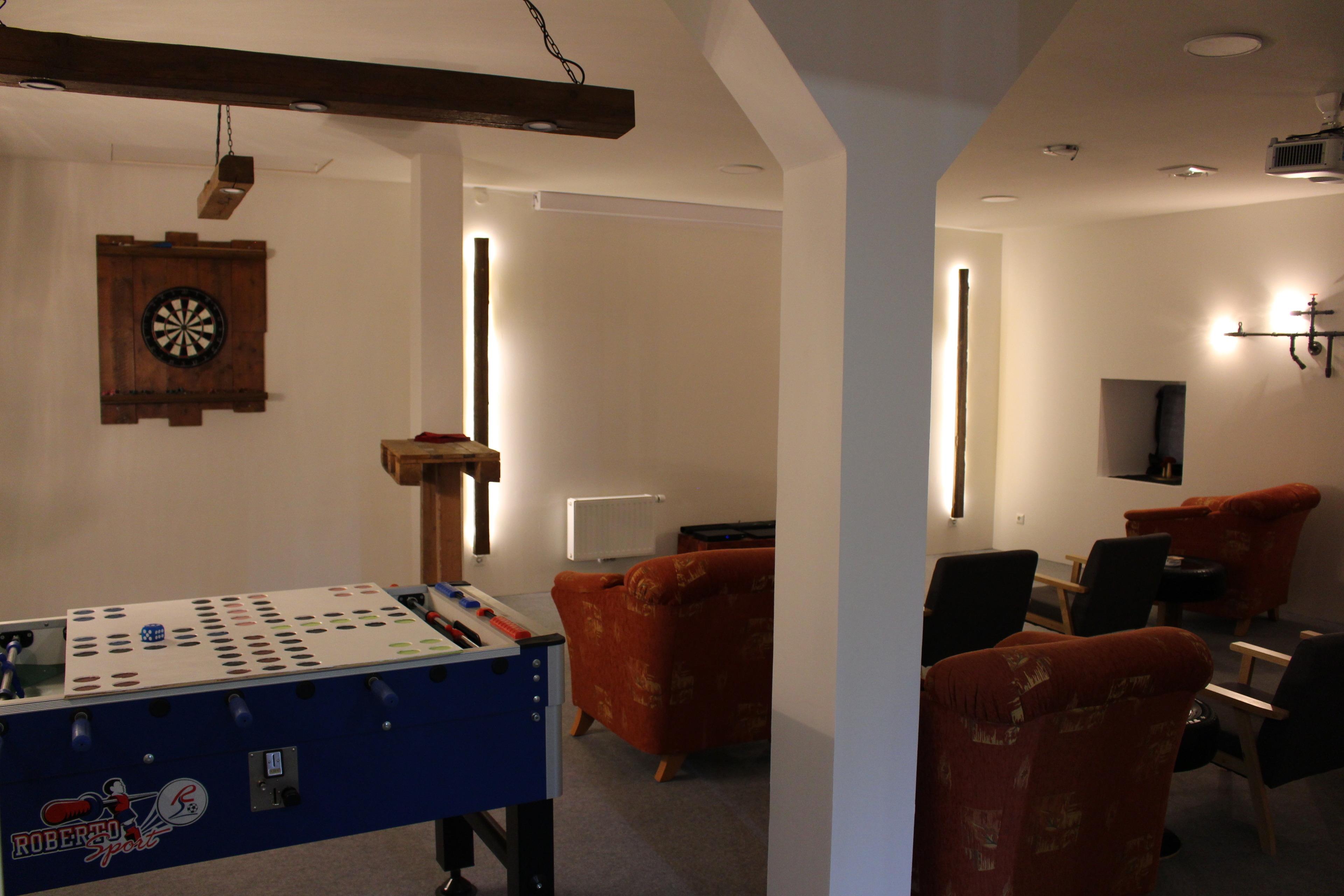 Dazu gehören eine Sauna, ein Spieleraum sowie eine Spielscheune mit großer Sandkiste und Kletterturmanlage. Ein toller Rasenspielplatz und Strandkörbe bieten Erholung pur. Für unsere Petrijünger halten wir einen Anglerraum bereit. Für gemeinsame Geselligkeit oder auch Festlichkeiten steht unser Aufenthaltsraum zur Verfügung.