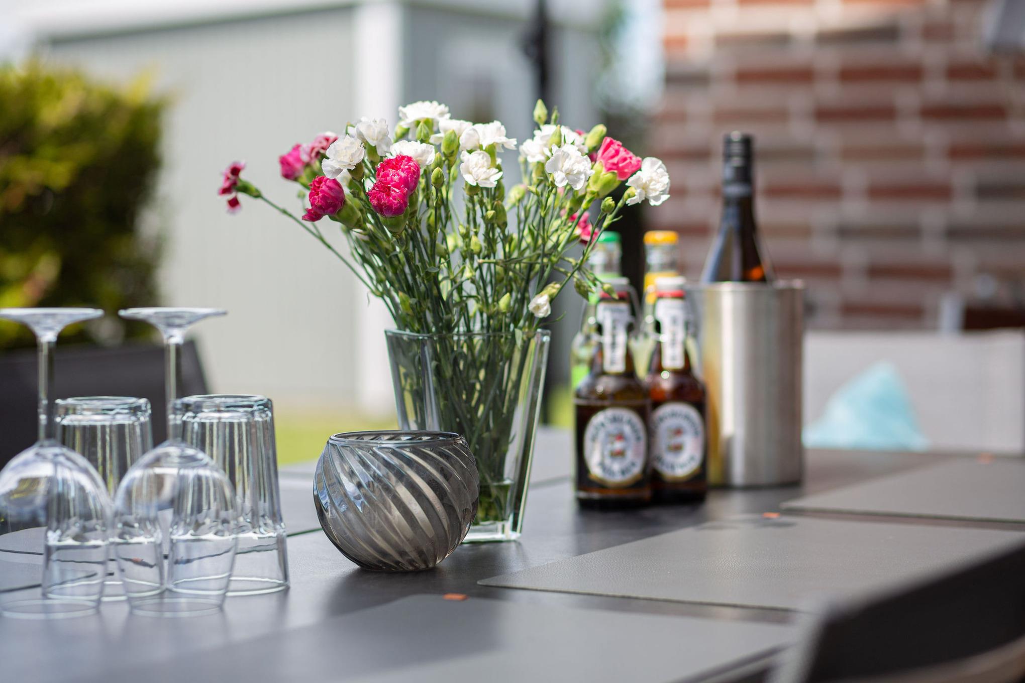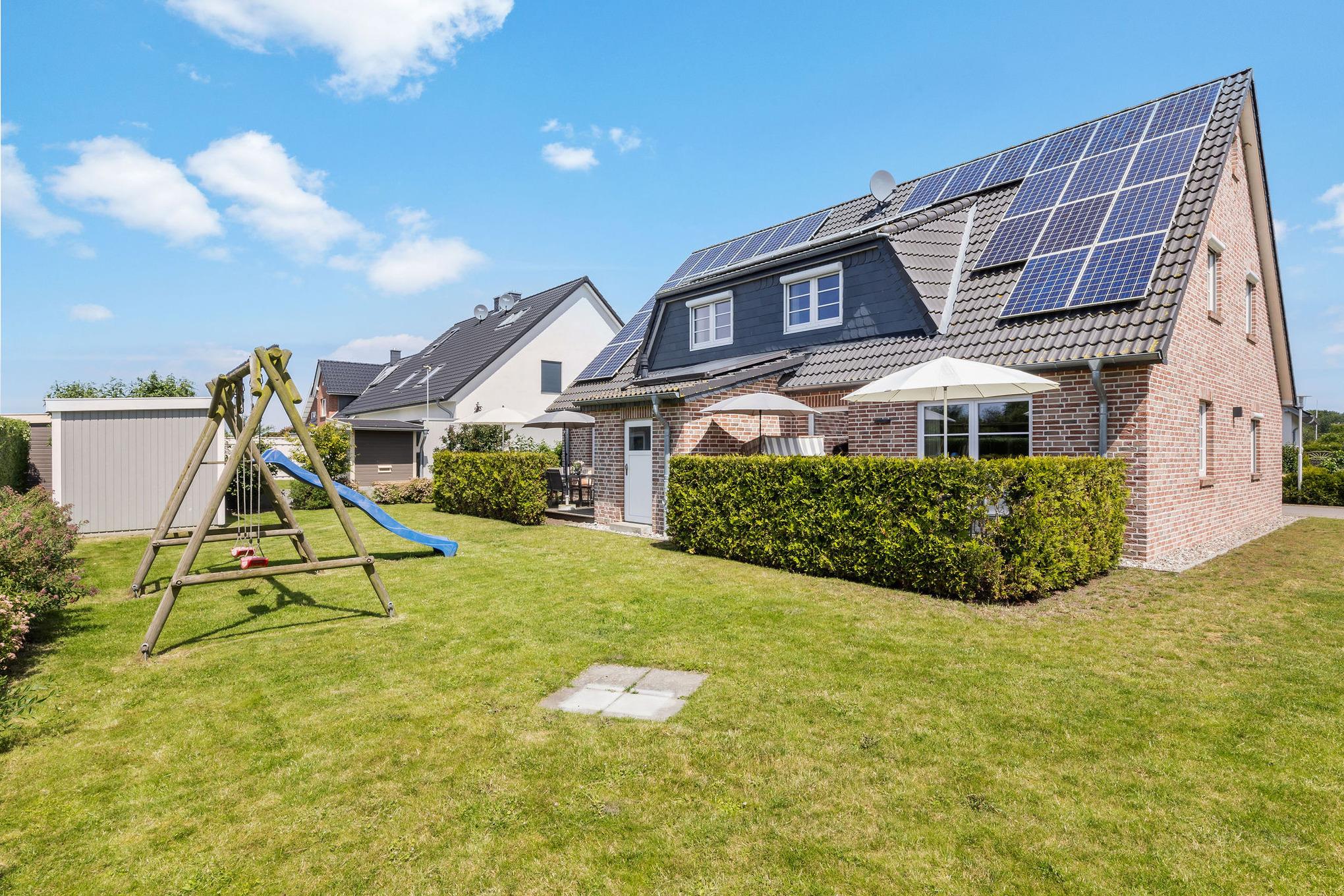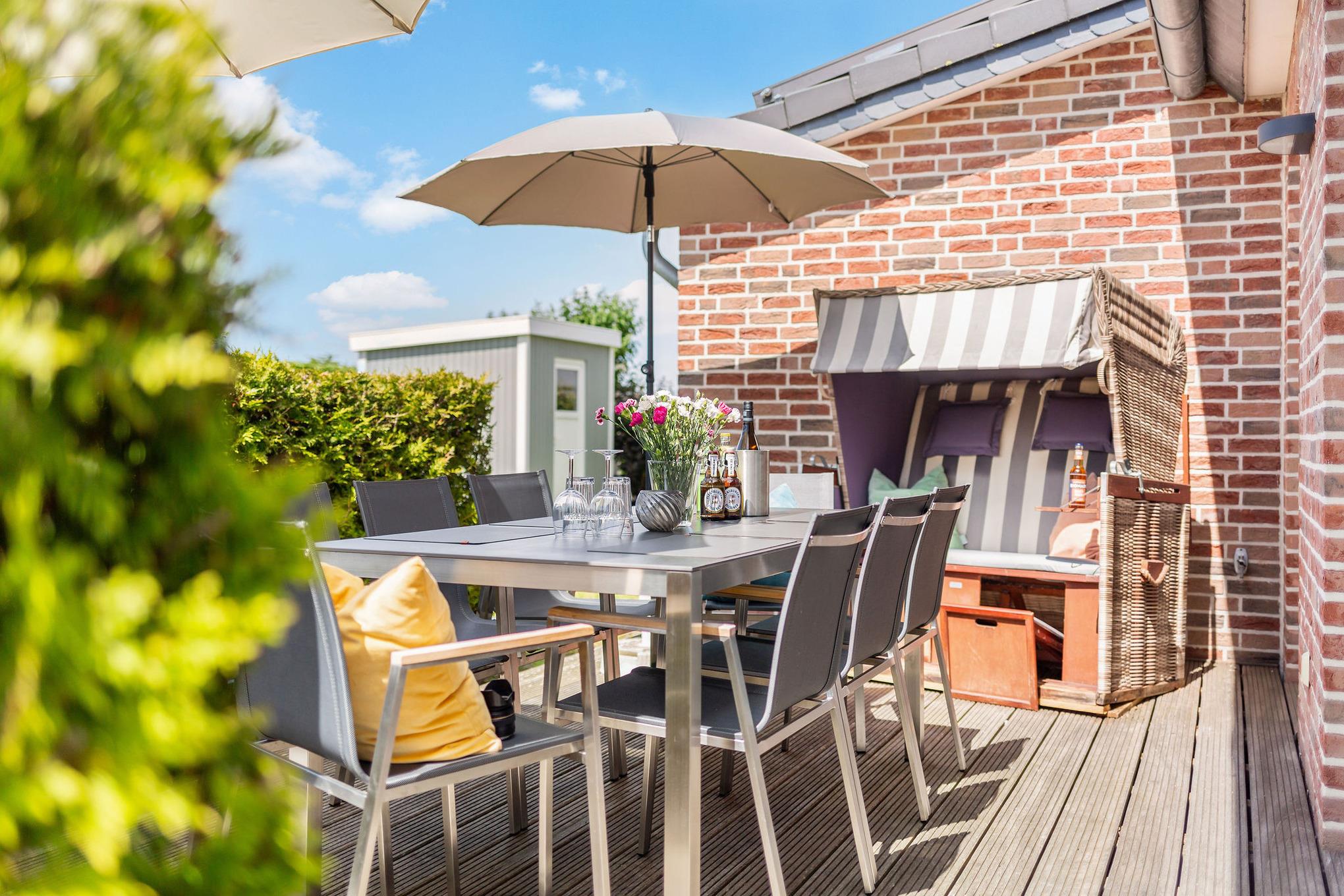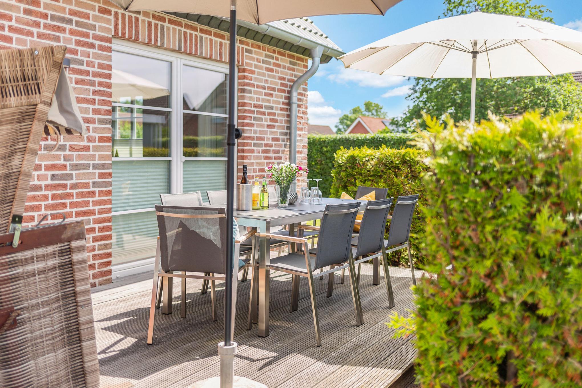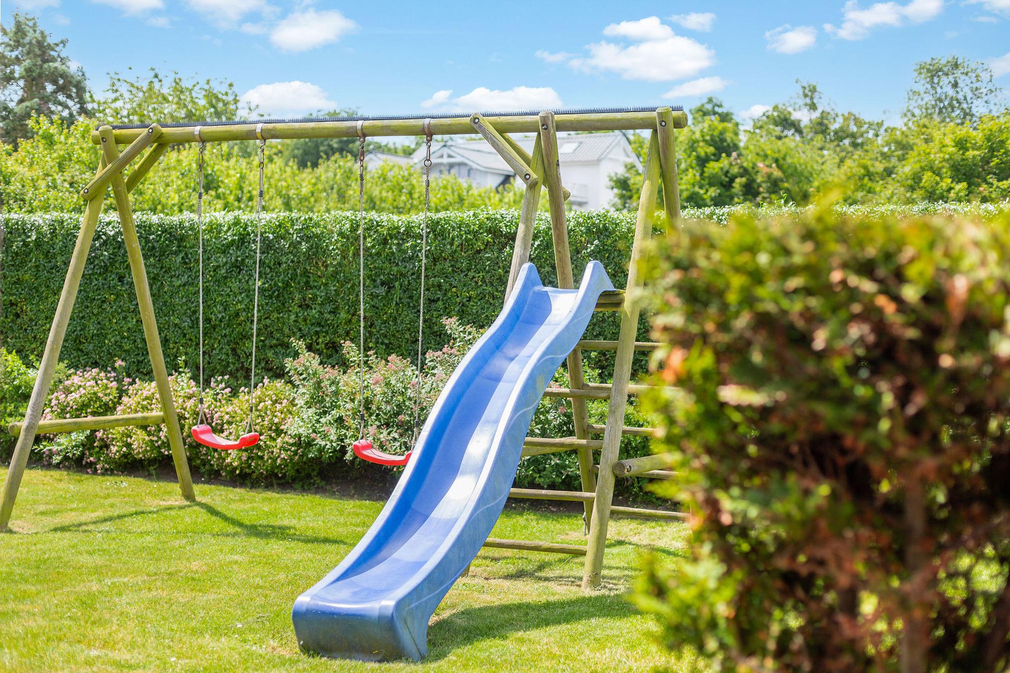 Auf der Terrasse befindet sich ein Strandkorb, im Garten eine Rutsche und Schaukel für die Kinder zur gemeinsamen Nutzung des kompletten Hauses.