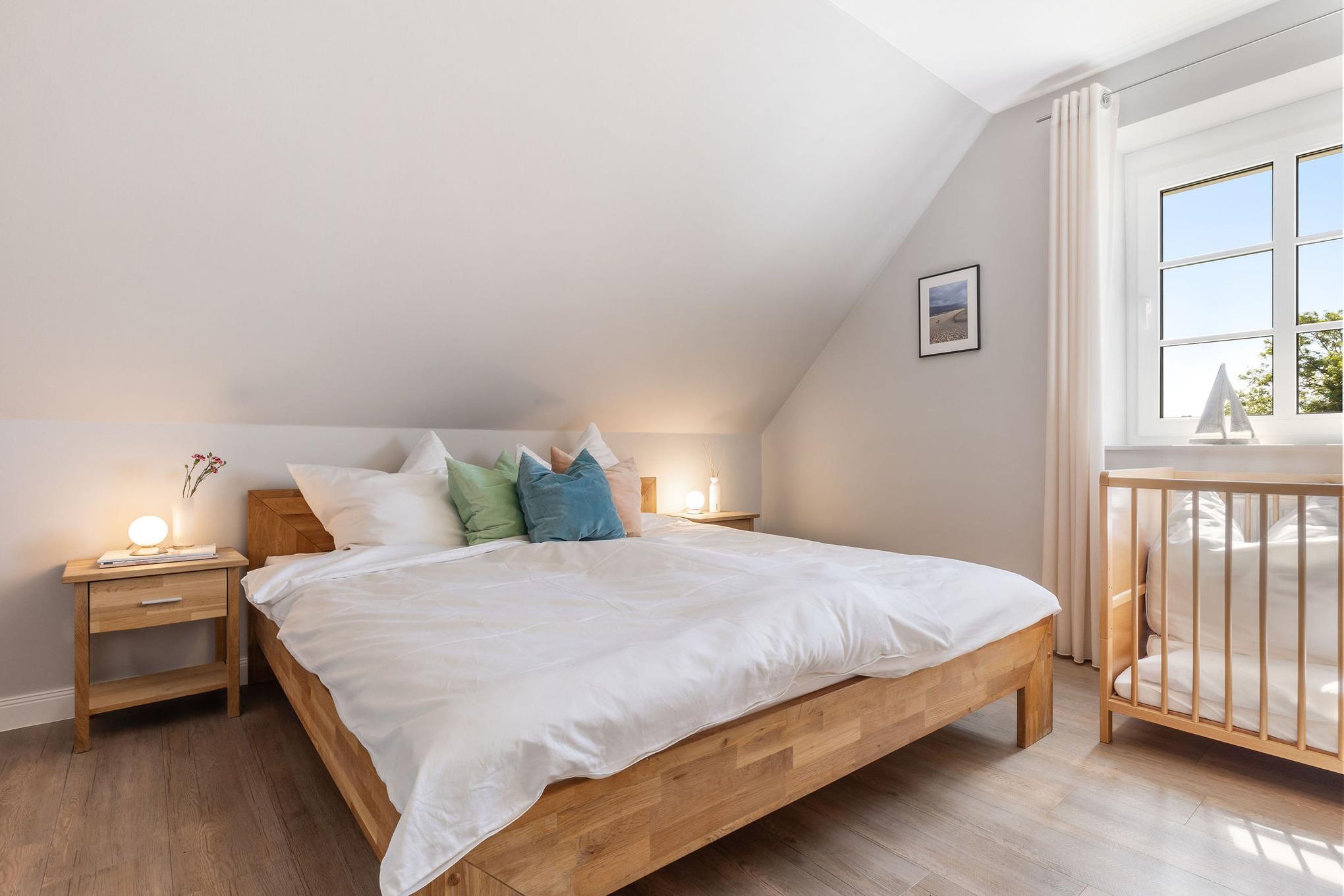 Die Doppelhaushälfte verfügt über insgesamt vier Schlafräume, davon befindet sich einer im Erdgeschoss.